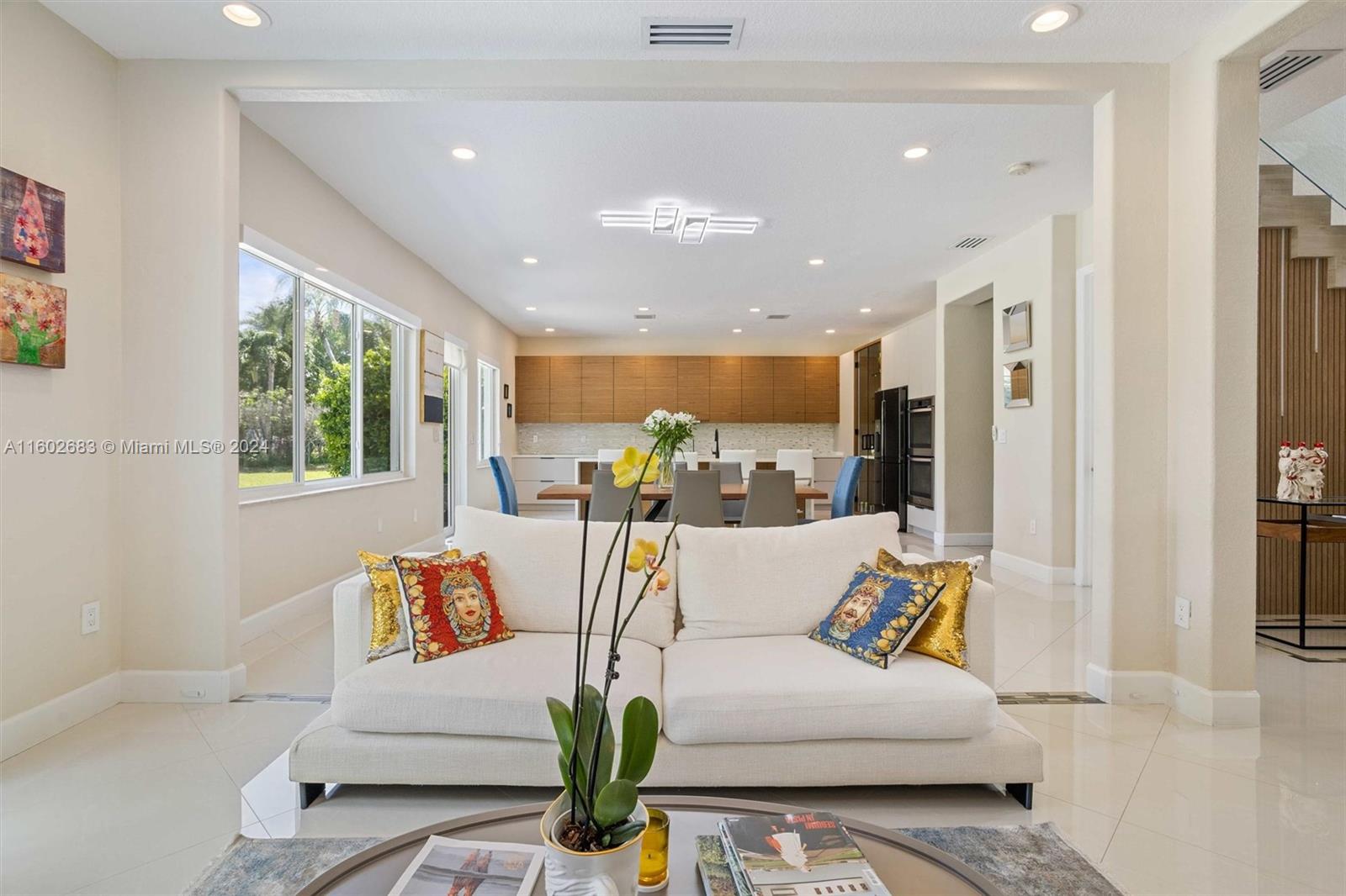 Luxury home in Doral Isles, 3,684 square feet that combines elegance and functionality. 6 bedrooms, including a maid's room, and 4.5 bathrooms, offering comfort and space for the entire family. The ground floor boasts a grand family room and a dining area, creating a perfect space for entertaining and daily living. The kitchen is a showstopper, modern and equipped with top-quality finishes and high-end appliances. Hurricane-resistant windows, Luxurious light fixtures will remain in the property. The master suite includes a large sitting area, extensive closets, and ample storage. The expansive backyard includes a heated saltwater pool and a jacuzzi. The garage accommodates two vehicles, with outdoor space for four additional vehicles, ensuring ample parking for guests and family alike.