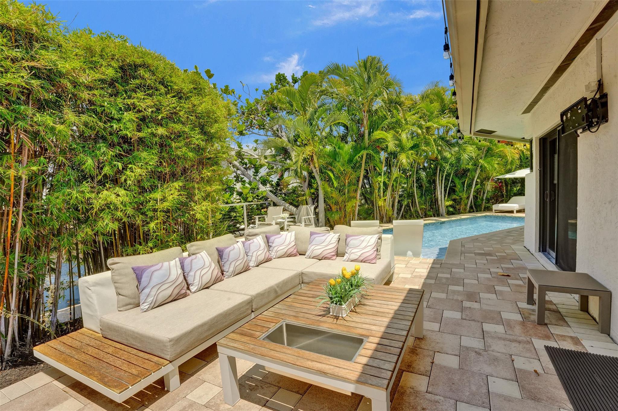 Completely remodeled 3 bedroom, 2 bath pool home on the water. Open floor plan with awesome natural light. All Impact windows and doors. Great master suite with large bath and walk in closet. Inside laundry and large 1 car garage. Beautiful modern pool with new equipment (heated & saltwater). Great mix of privacy while still feeling the connection to the water. Canal is right off the Middle River with 3 fixed bridges to Ocean. Located in the hidden gem neighborhood of Coral Shores- close to the beach, shopping and just West of Federal Hwy. Neighborhood has 2 entry/exit points and has a great tucked away and quiet feel. Recent updates include new appliances, new hot water heater, new deck and floating dock, new fence and new flat roof.