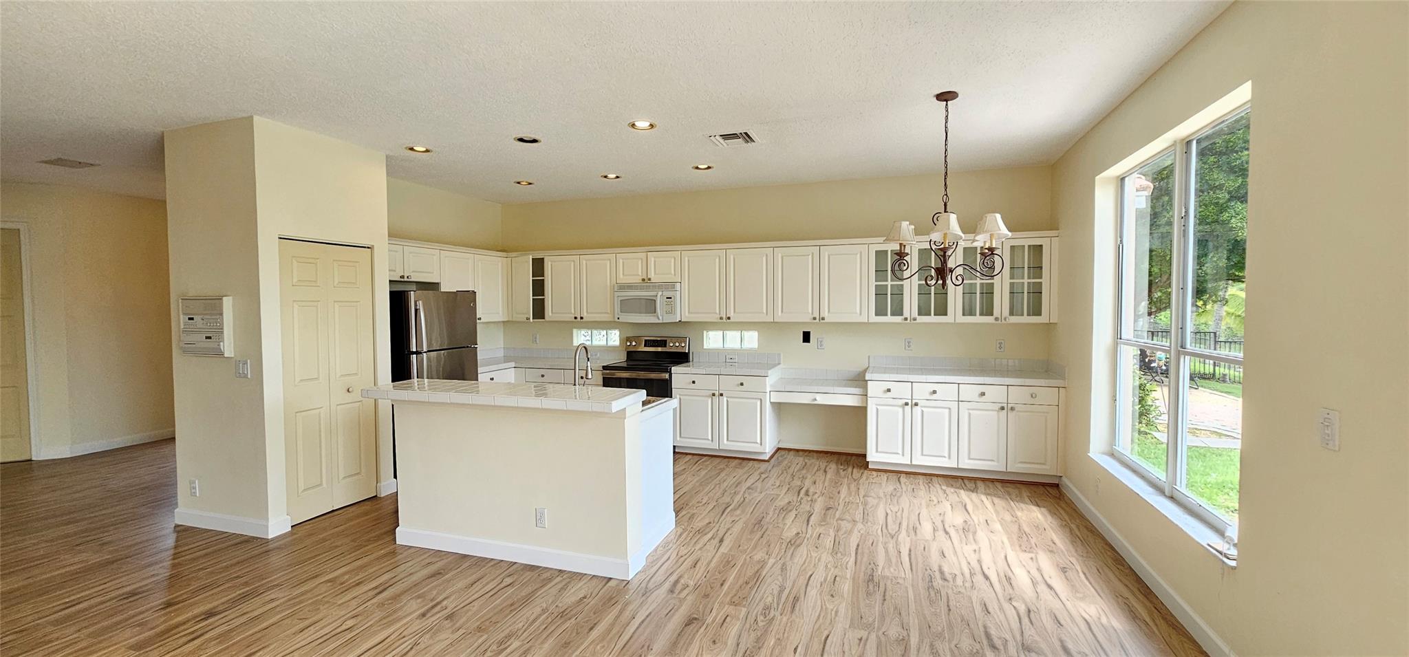 BRAND NEW 2024 TILED ROOF, LAKEFRONT LOCATION WITH A BEAUTIFUL VIEW, JUST RENOVATED AND PAINTED. The recent large price reduction aimed at a quick sale. This large 4BR/2.5 BA home in move-in condition. The home features a brand new high-durability waterproof laminate floor on the first level and clean laminate floors upstairs. The large master bedroom has two walk-in closets, a large en-suite bathroom with double sink, a beautiful tub and a walk-in shower. The other three bedrooms are in mint condition, sharing a full bathroom in the hallway. The irrigation system/sprinklers has just been serviced and a new two-zone timer installed. The house is located in Silver Lakes Sapphire Pointe, close to A-rated schools. The HOA includes basic cable and internet. The community pool is steps away.