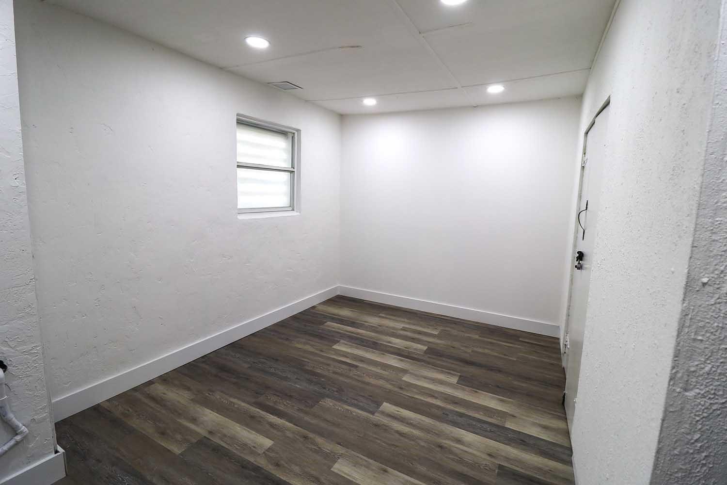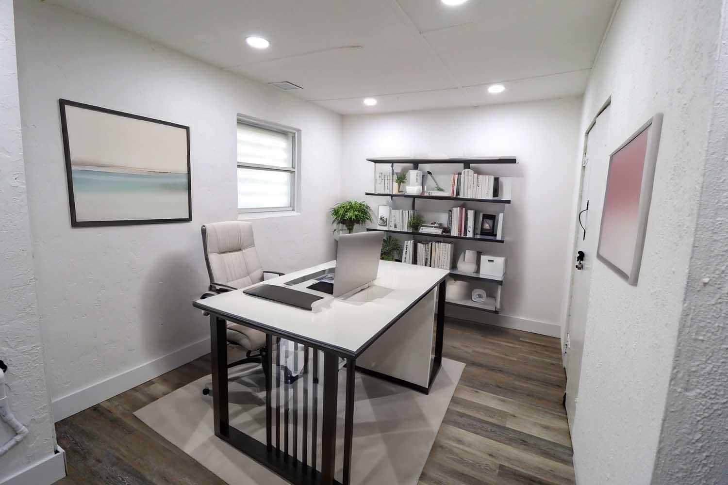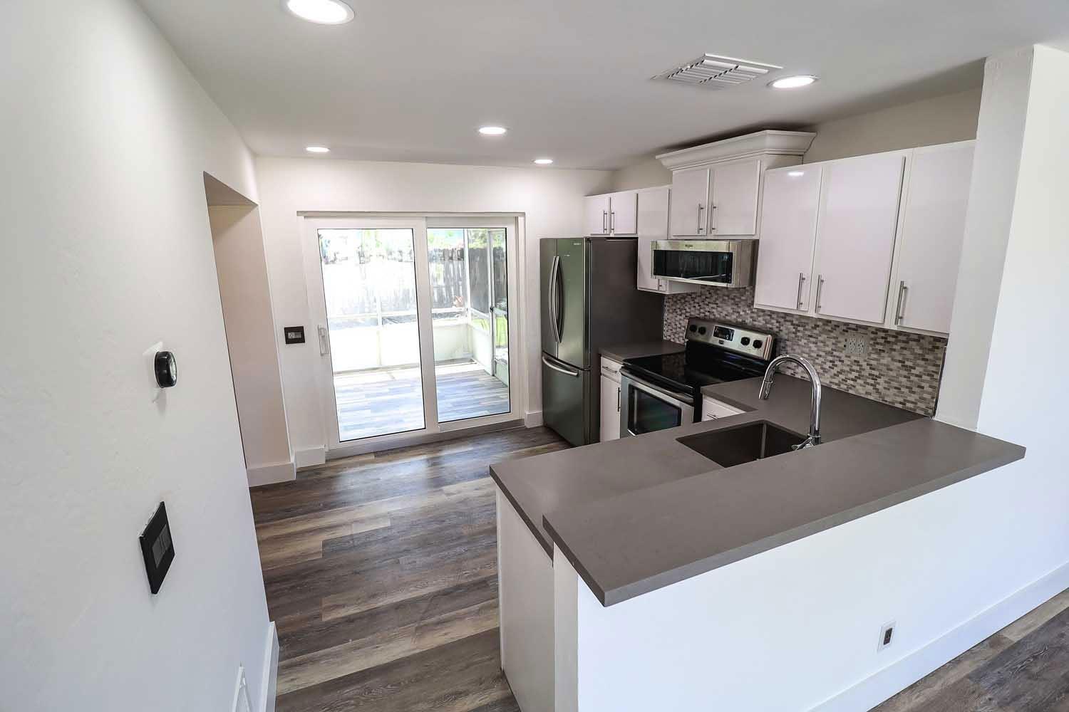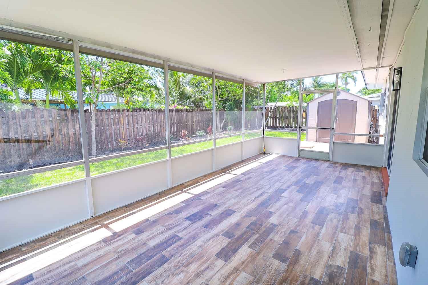 Discover this beautifully updated three-bedroom, one-bath CBS home, perfectly situated in a desirable Pompano Beach neighborhood. Step into the modern kitchen, featuring sleek white shaker cabinets, concrete countertops, and stainless steel appliances. The renovated bathroom boasts floor-to-ceiling designer tile and a luxurious soaking tub. The home is freshly painted inside and out, with recessed LED lighting throughout and central A/C. Impact doors and windows at the rear, and a new roof installed in 2013, provide peace of mind. Inside, you'll find two spacious bedrooms plus a converted legal garage that serves as a large third bedroom or office. This versatile space can easily revert to a garage if needed.