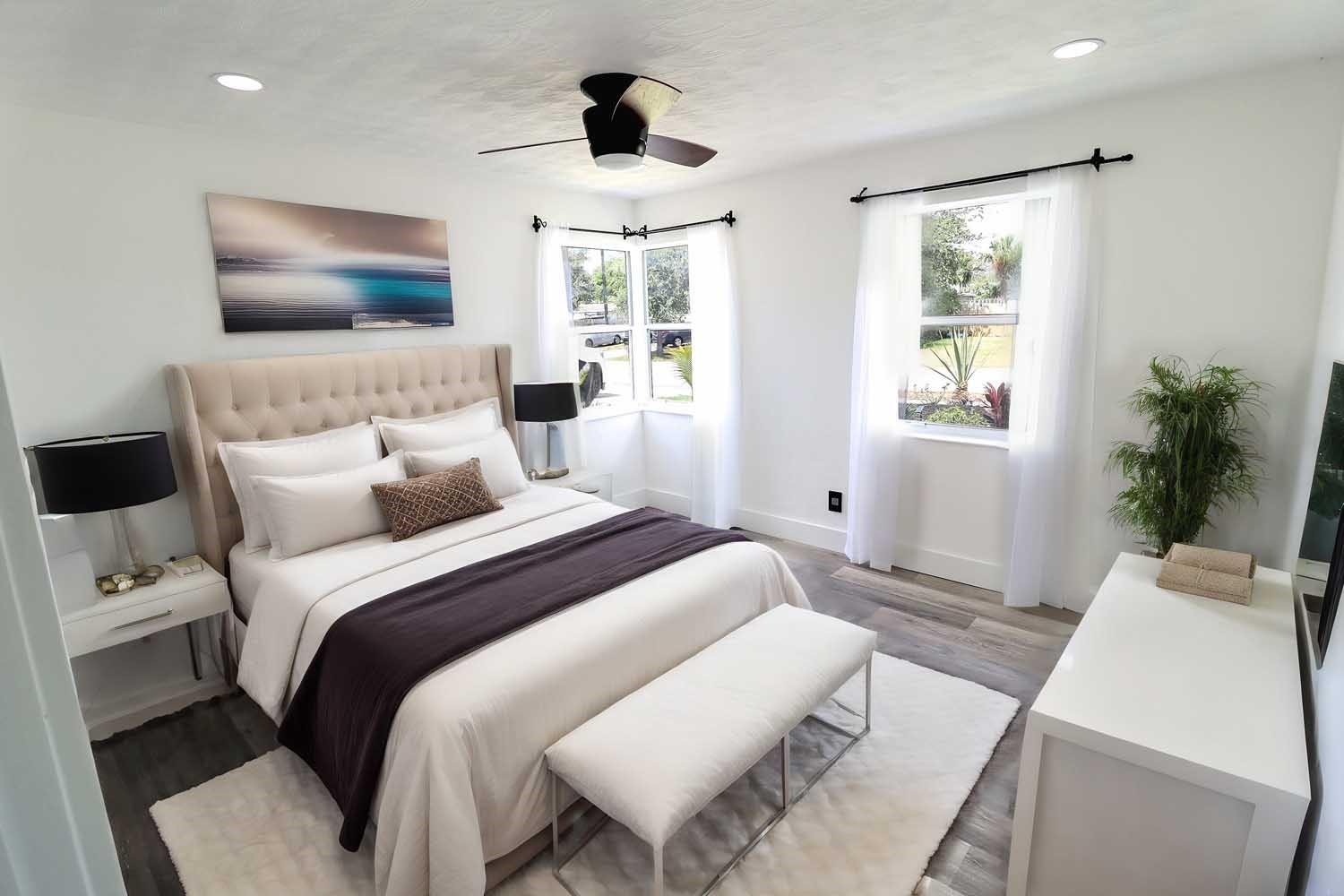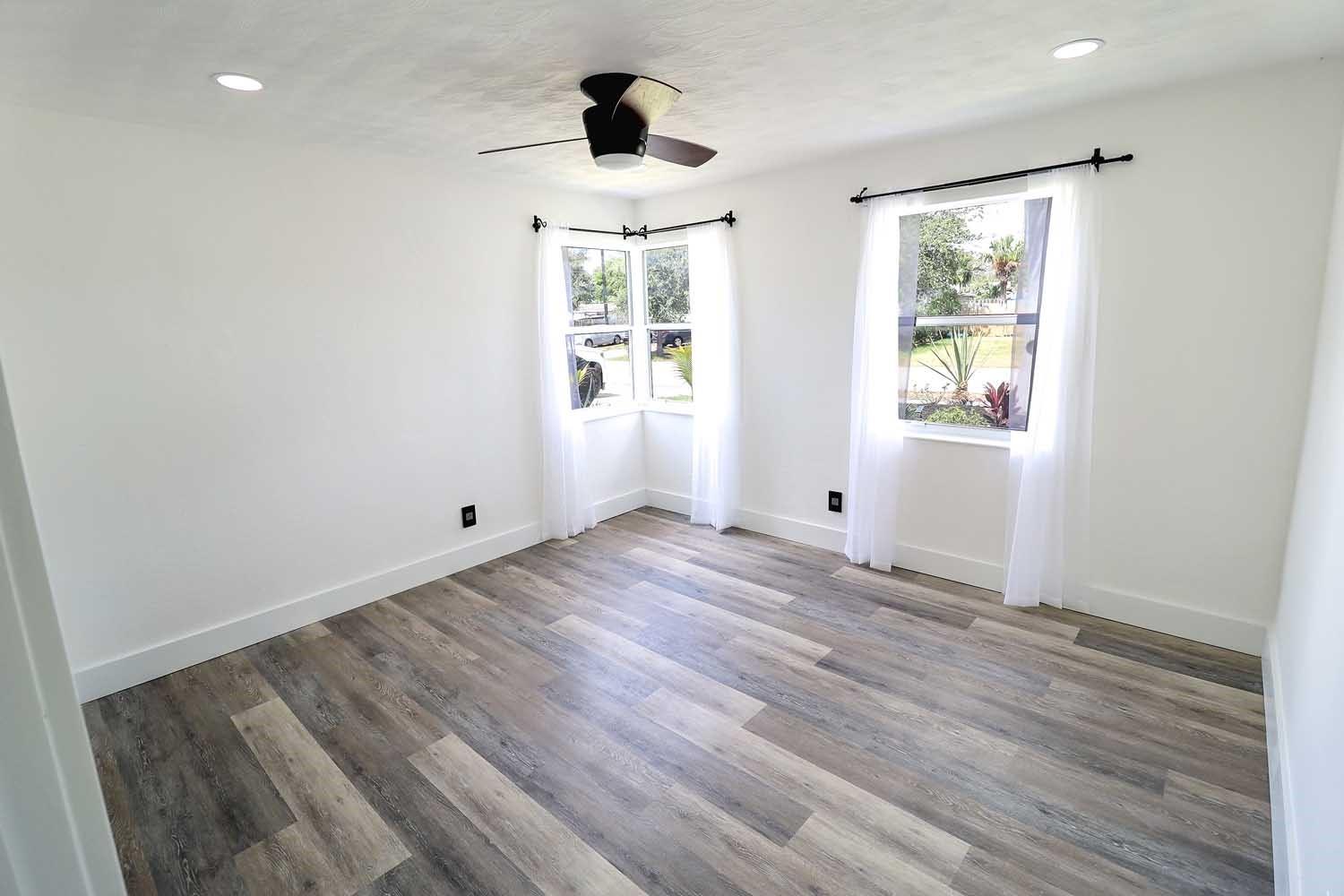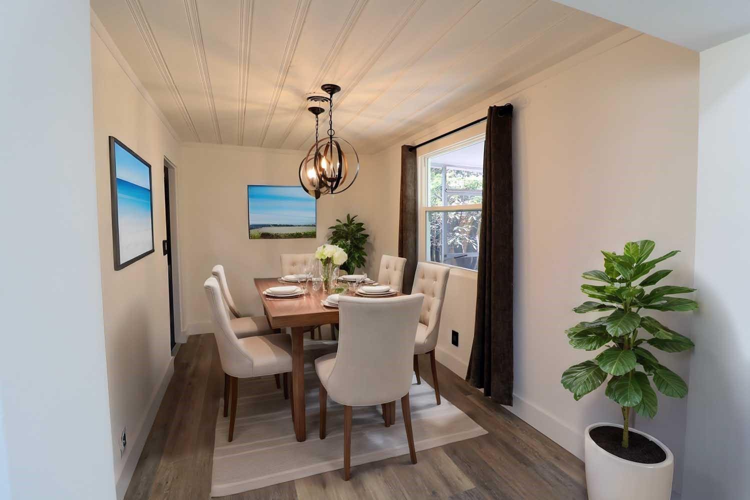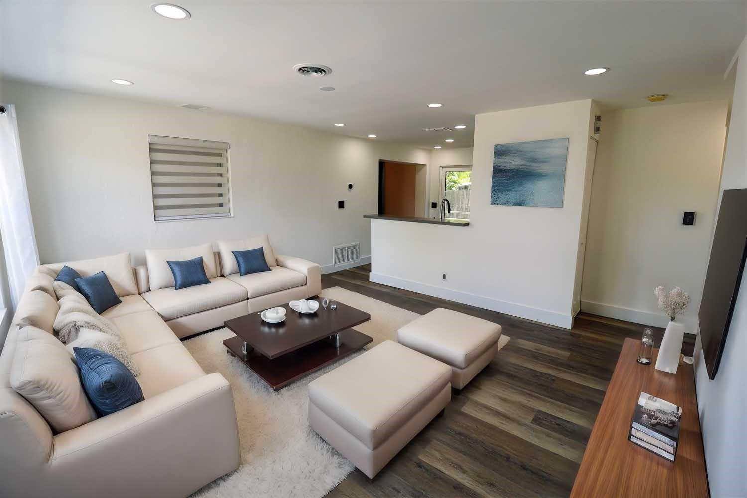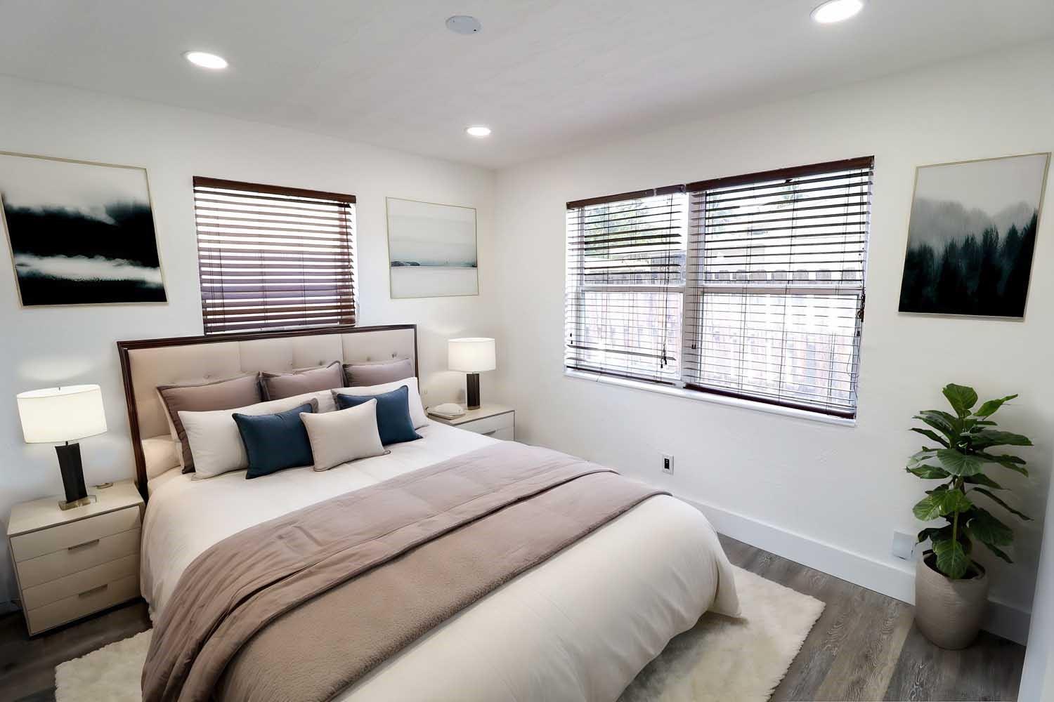 Discover this beautifully updated three-bedroom, one-bath CBS home, perfectly situated in a desirable Pompano Beach neighborhood. Step into the modern kitchen, featuring sleek white shaker cabinets, concrete countertops, and stainless steel appliances. The renovated bathroom boasts floor-to-ceiling designer tile and a luxurious soaking tub. The home is freshly painted inside and out, with recessed LED lighting throughout and central A/C. Impact doors and windows at the rear, and a new roof installed in 2013, provide peace of mind. Inside, you'll find two spacious bedrooms plus a converted legal garage that serves as a large third bedroom or office. This versatile space can easily revert to a garage if needed.