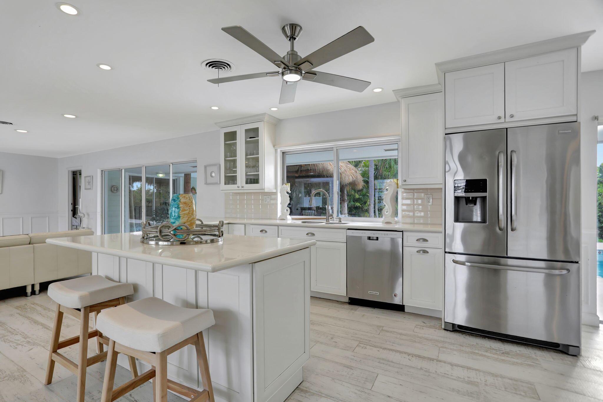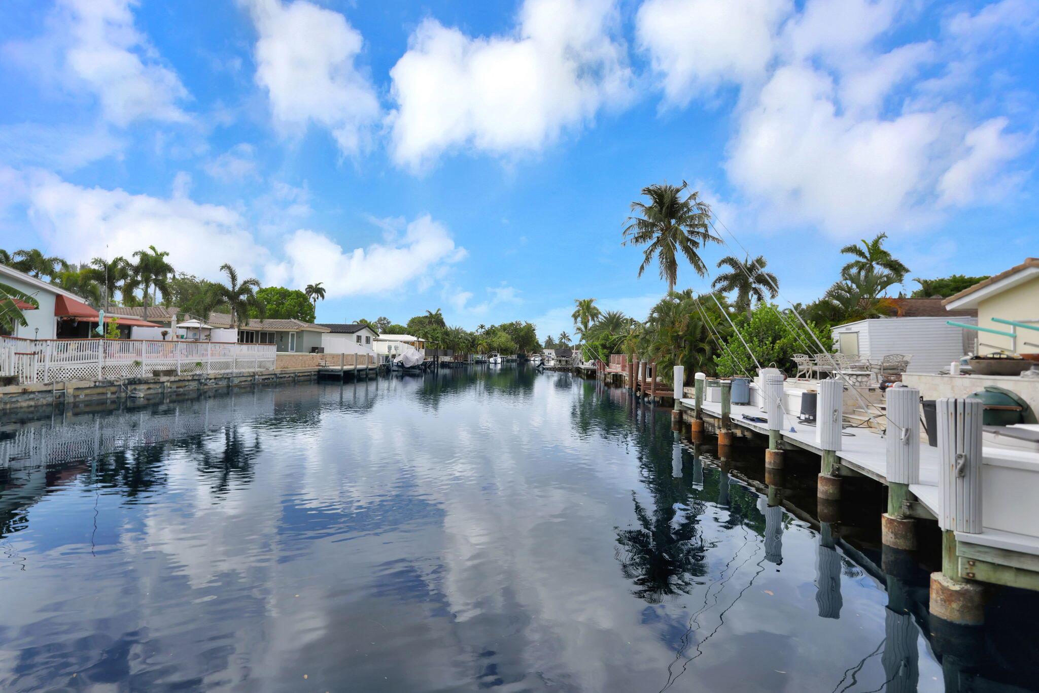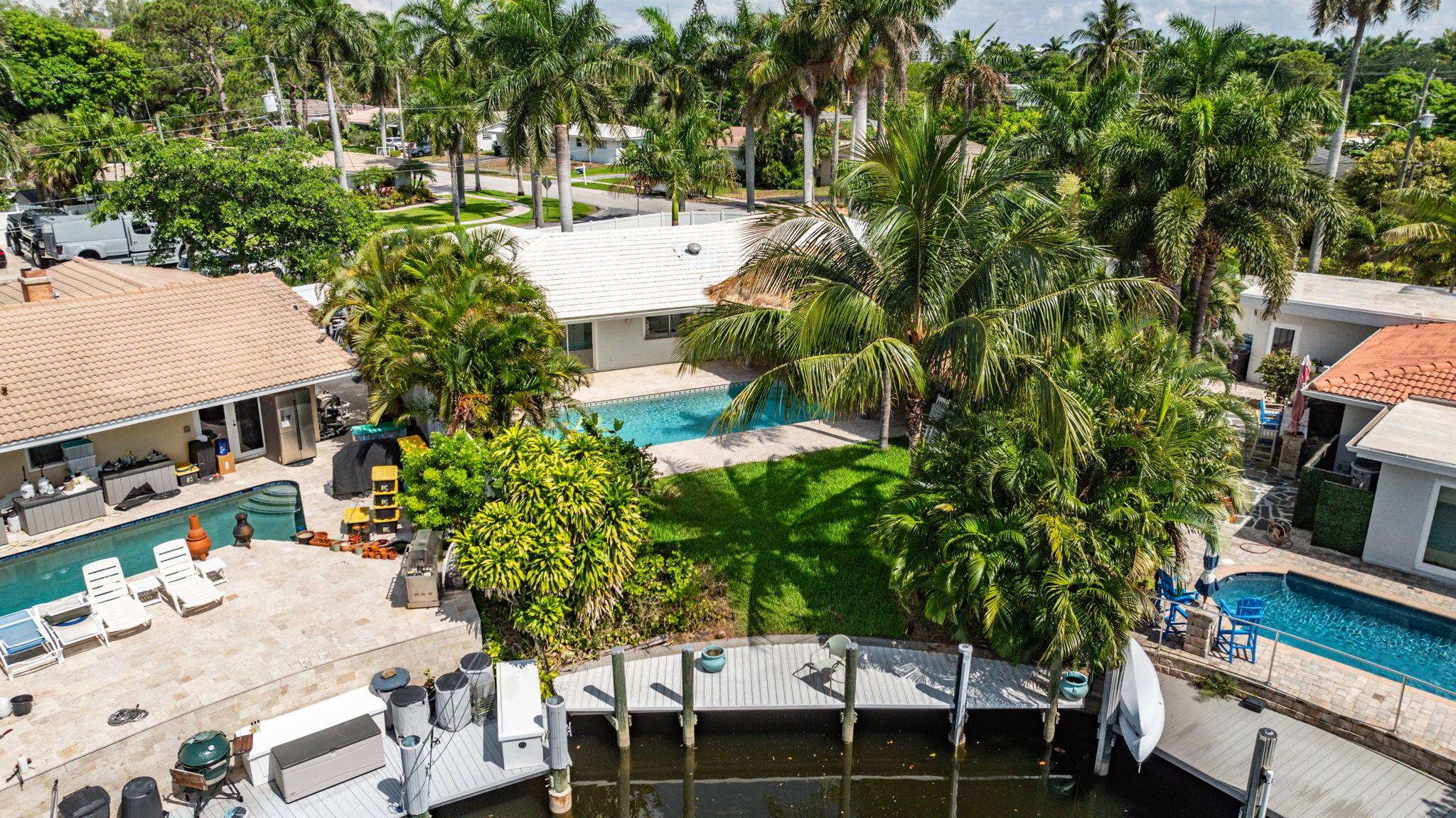Take advantage of the opportunity to make this remarkable 4 bedroom 3 bathroom waterfront property your new home. The large 2-car garage was converted into the 4th bedroom making this beautifully updated home a spacious and wide split floorplan with an expansive 2313 sq foot adjusted living space. The house sits on an oversized corner lot that offers plenty of private space completely fenced in. Unwind under the huge tiki hut overlooking the sparkling pool and canal with access to the intracoastal, which creates a stunning oasis of relaxation fun for entertaining guests or just enjoying the Florida lifestyle. Just minutes away from the beach, airport, restaurants, just a few blocks away from the prestigious Pinecrest school, and is nestled in the highly desirable Coral Ridge Isles.