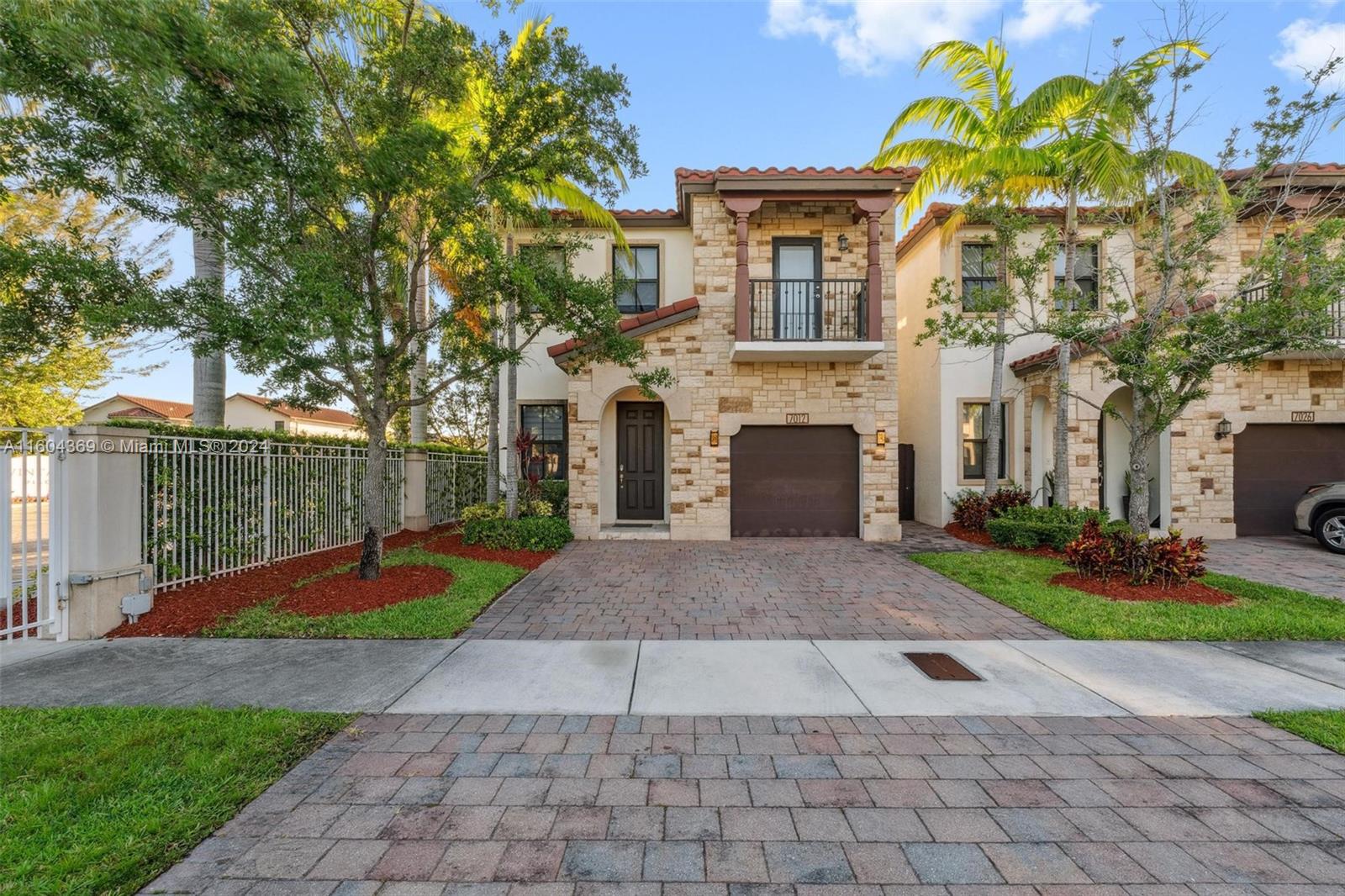 Beautiful remodeled 4 bedroom/3.5 bathroom 2 story home in the private & prestigious gated community of Vintage Place in the city of Doral. This home offers an excellent distribution with TWO suites. Modern open concept kitchen, quartz countertops, ceramic floor all throughout 1st floor, stainless steel glass stairs, impact windows, ZEBRA blinds, beautiful & large backyard w/ a custom aluminum pergola, perfect for having friends & family over. NEW A/C (replaced in 2022). There is a 1 garage & a driveway for 3 cars. The HOA fee includes cable, alarm, high-speed internet/fiber optics & a Clubhouse with pool, gym, sauna, game room, playground, & new BBQ area overlooking the lake. Excellent & quiet community. Near shopping centers, highways and excellent schools. Call for a private tour!