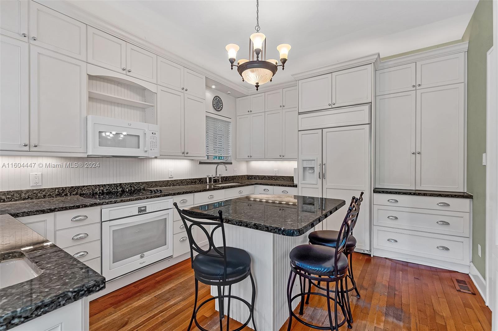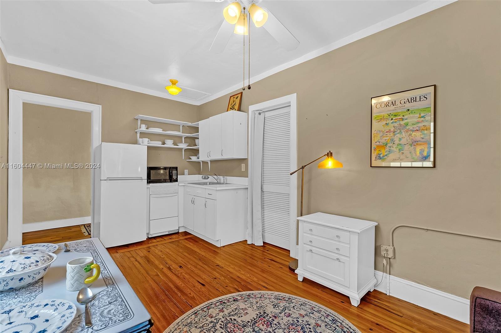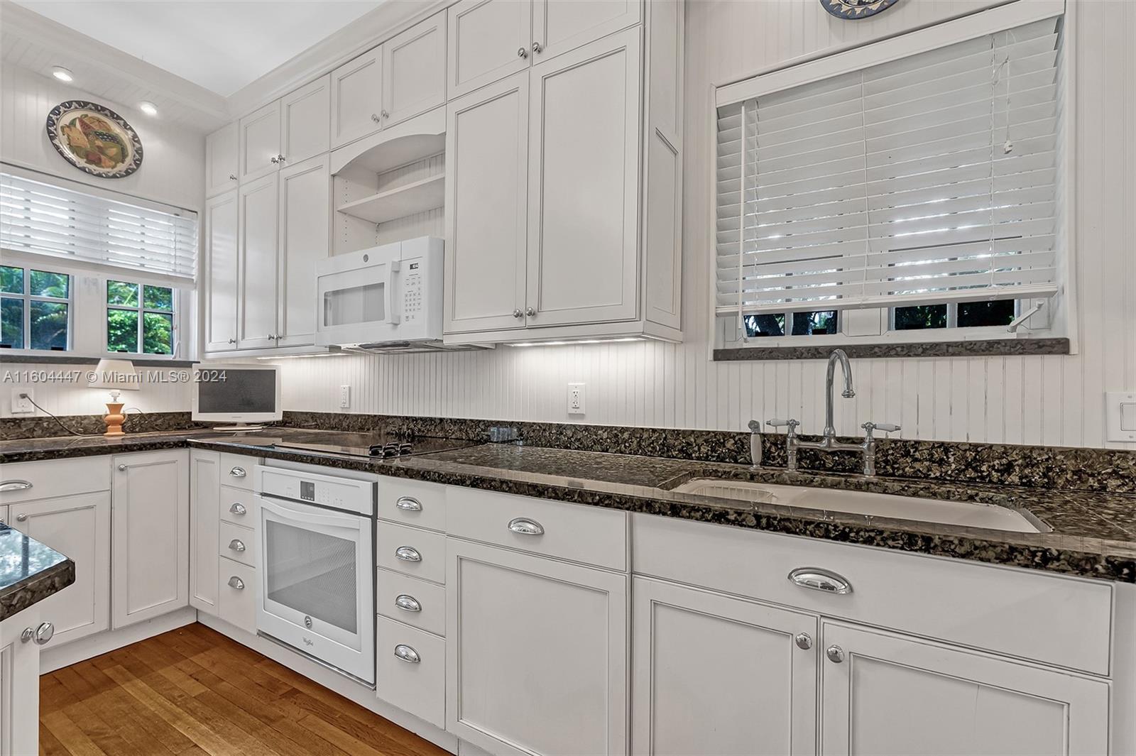 This classic Old Spanish is a true must see starting from roofed front porch entry! Gracious 36x15 ft living area with original fireplace opens to 20x13 ft dining room ideal for entertaining plus chef’s kitchen completely remodeled in 2009 with new expanded kitchen cabinets and island with granite counters. First floor includes 15x12 family room and 14x13 primary suite. Original oak floors. Second floor includes open area ideal for office/crafts/playroom, 2 large bedrooms and bath. Corner property has side street entry to 2 car garage building with upstairs 1/1 guest/in-law quarters. Just 3 blocks to Biltmore Hotel, golf and tennis, Youth Center and Venetian Pool. Short distance to Miracle Mile, Merrick Park and airport.