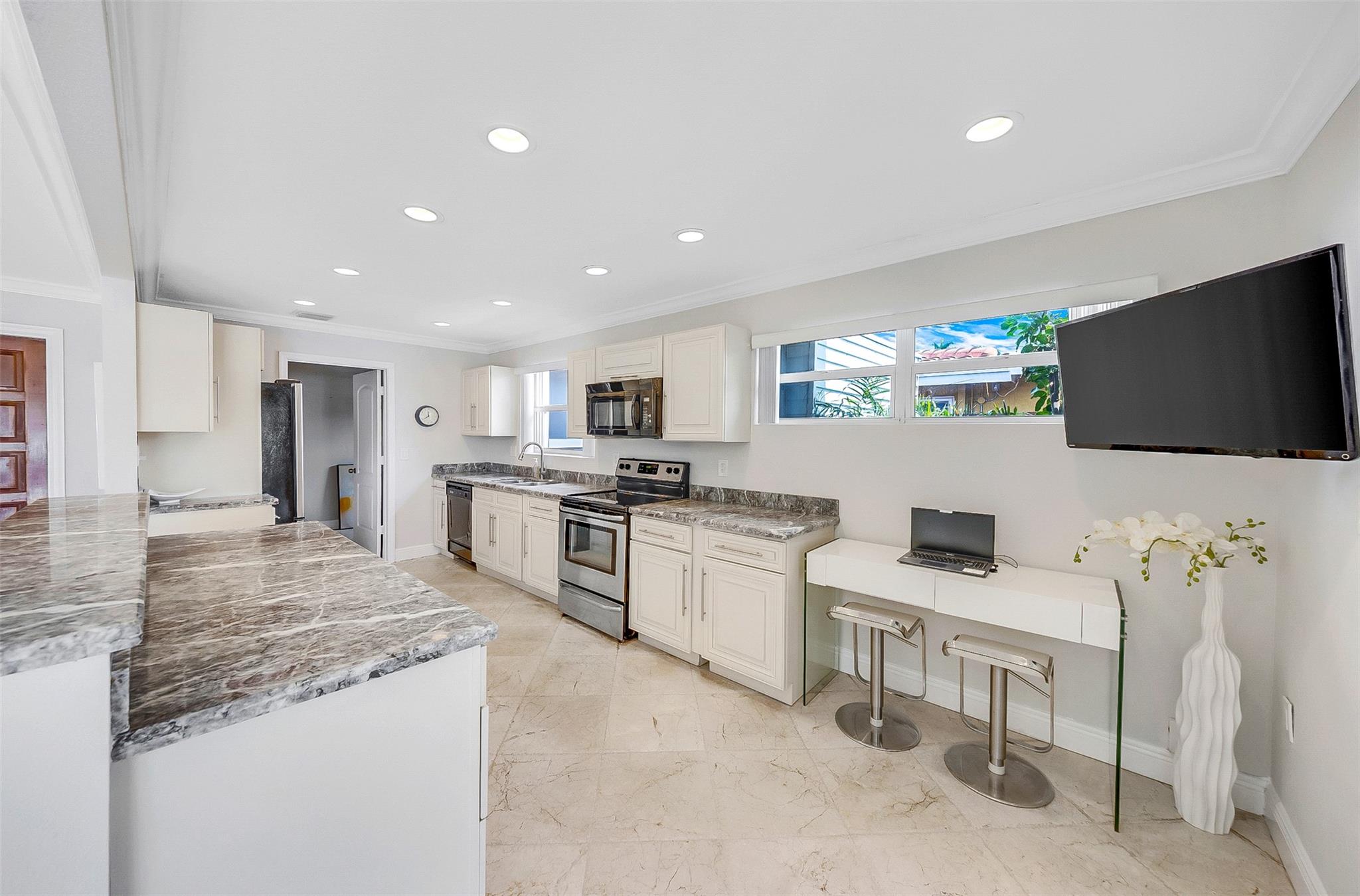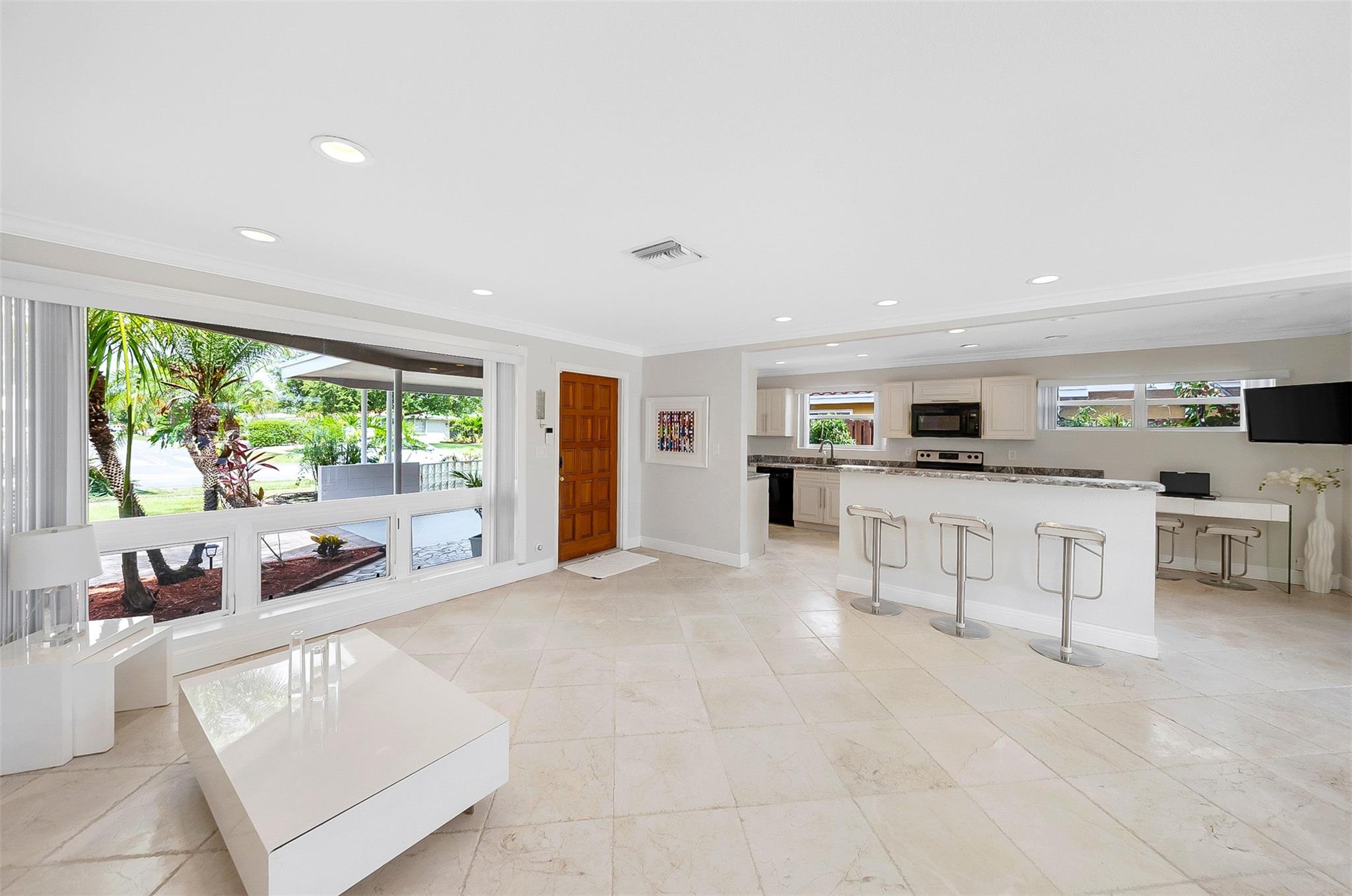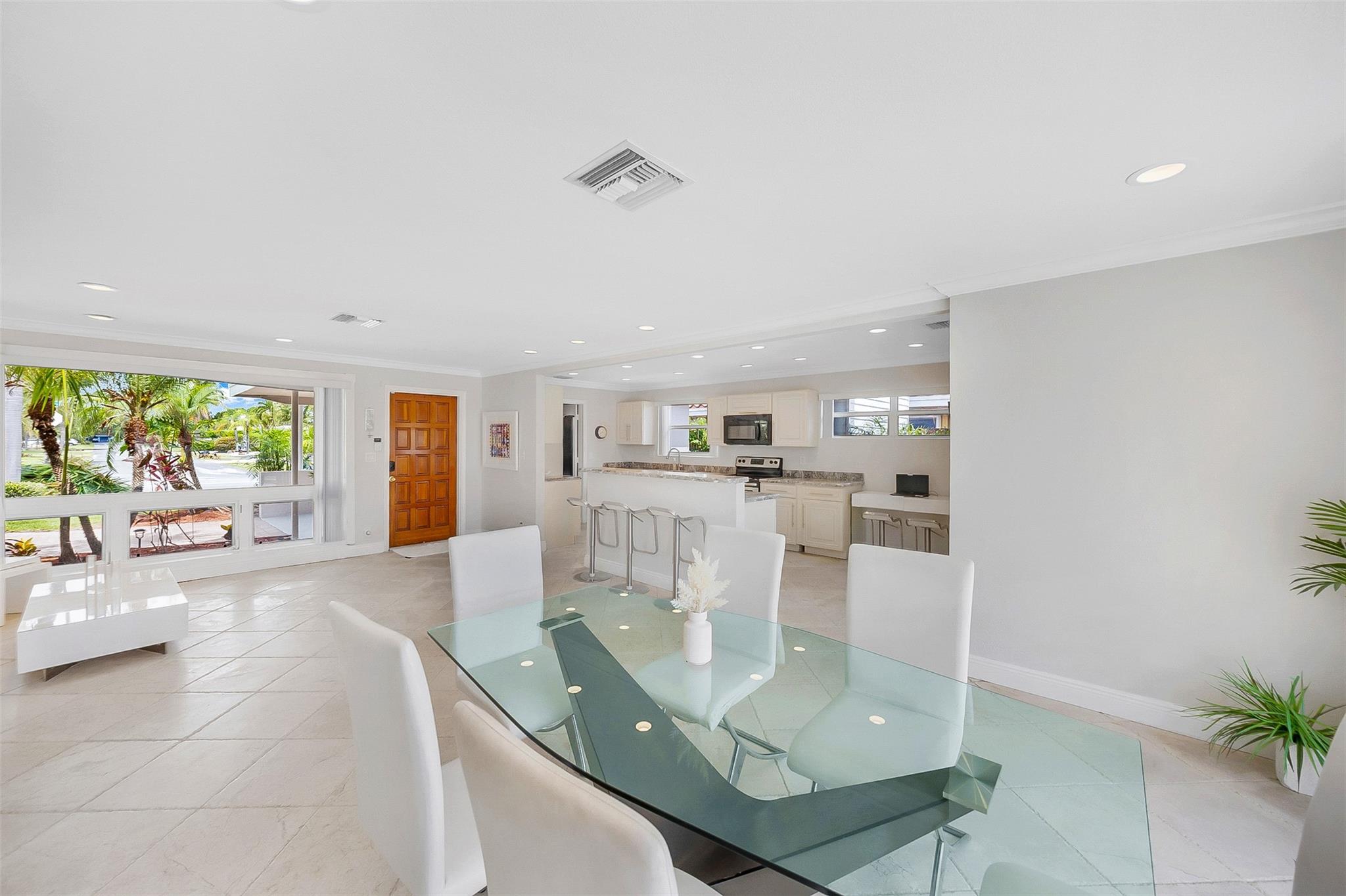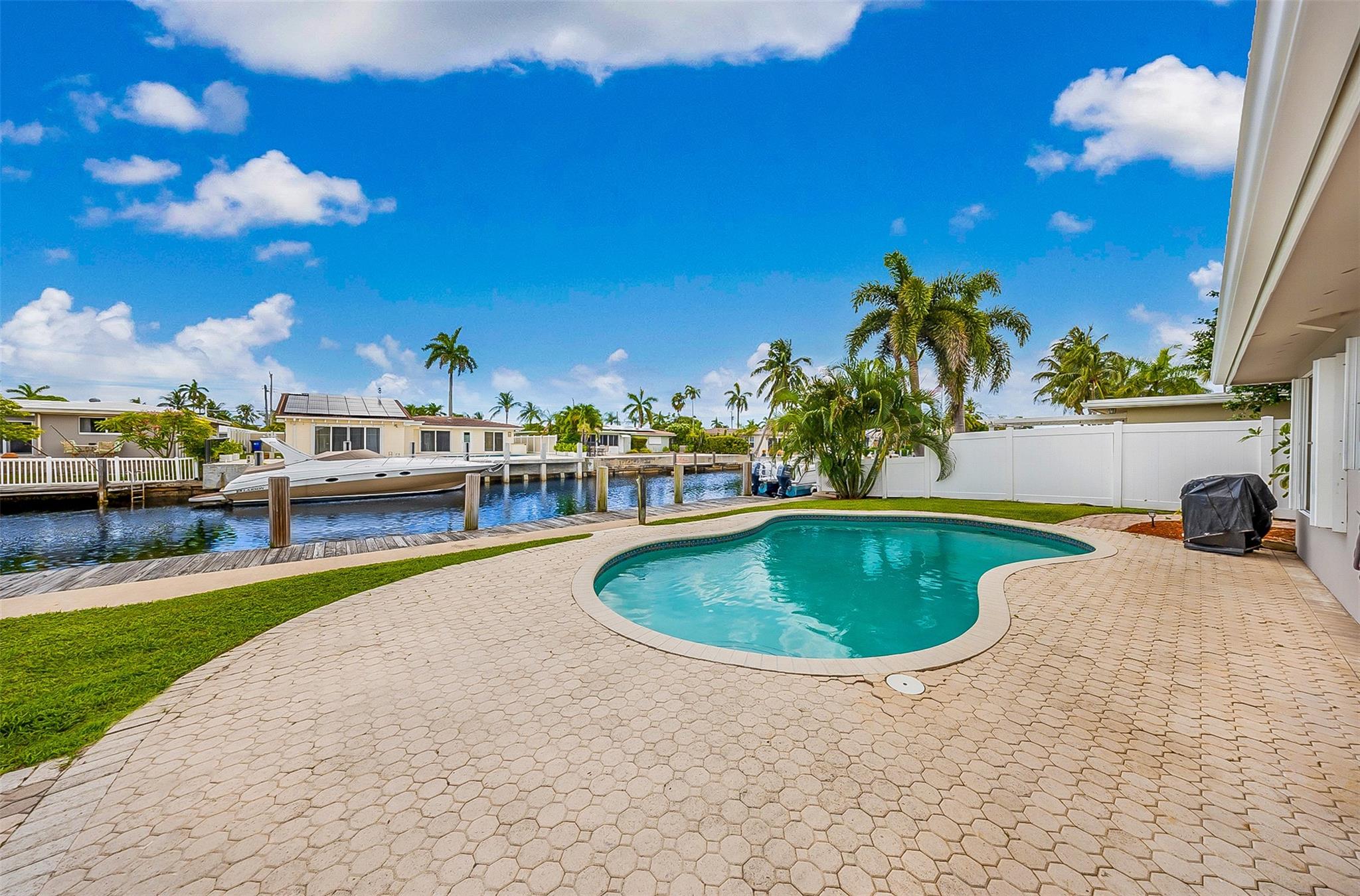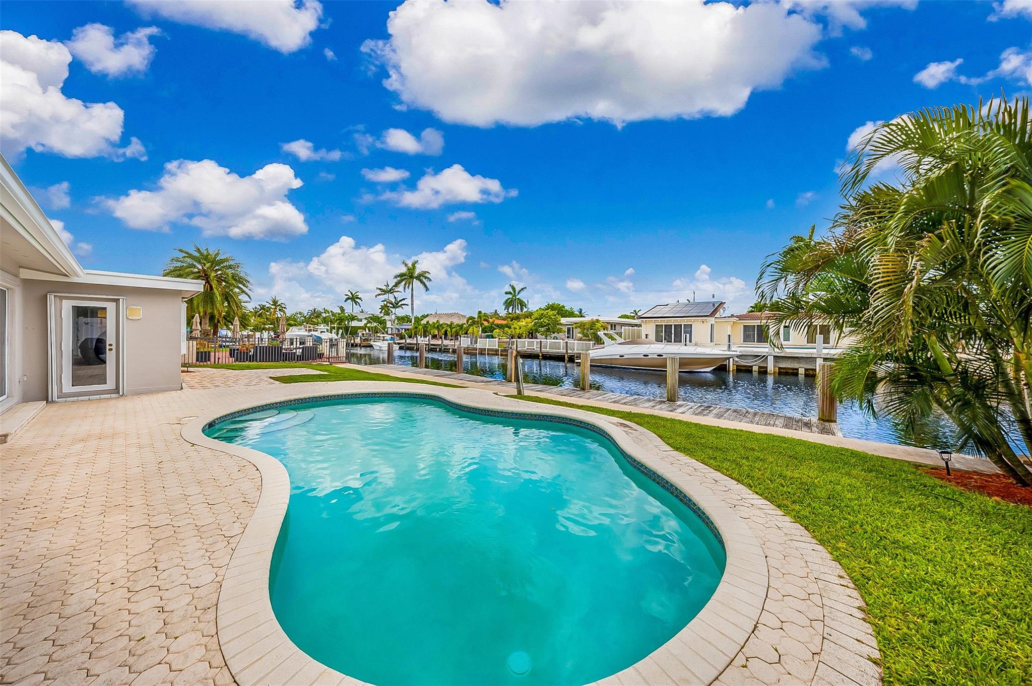 Boater's Paradise with 70' of Waterfront has easy Intracoastal and Ocean access and plenty of room for your boat. This three bedroom, two bath Waterfront Home has an extra Bonus Room/Den that could be used as a fourth Bedroom. Situated on a quiet street with tropical Landscape, relaxing Pool and Canal view. Flat roof is brand new, has newer A/C, tankless water heater, spacious open kitchen, laundry room, fresh paint, no HOA! Carport could be enclosed; Garden Shed offers extra storage. Restaurants and Shopping nearby.