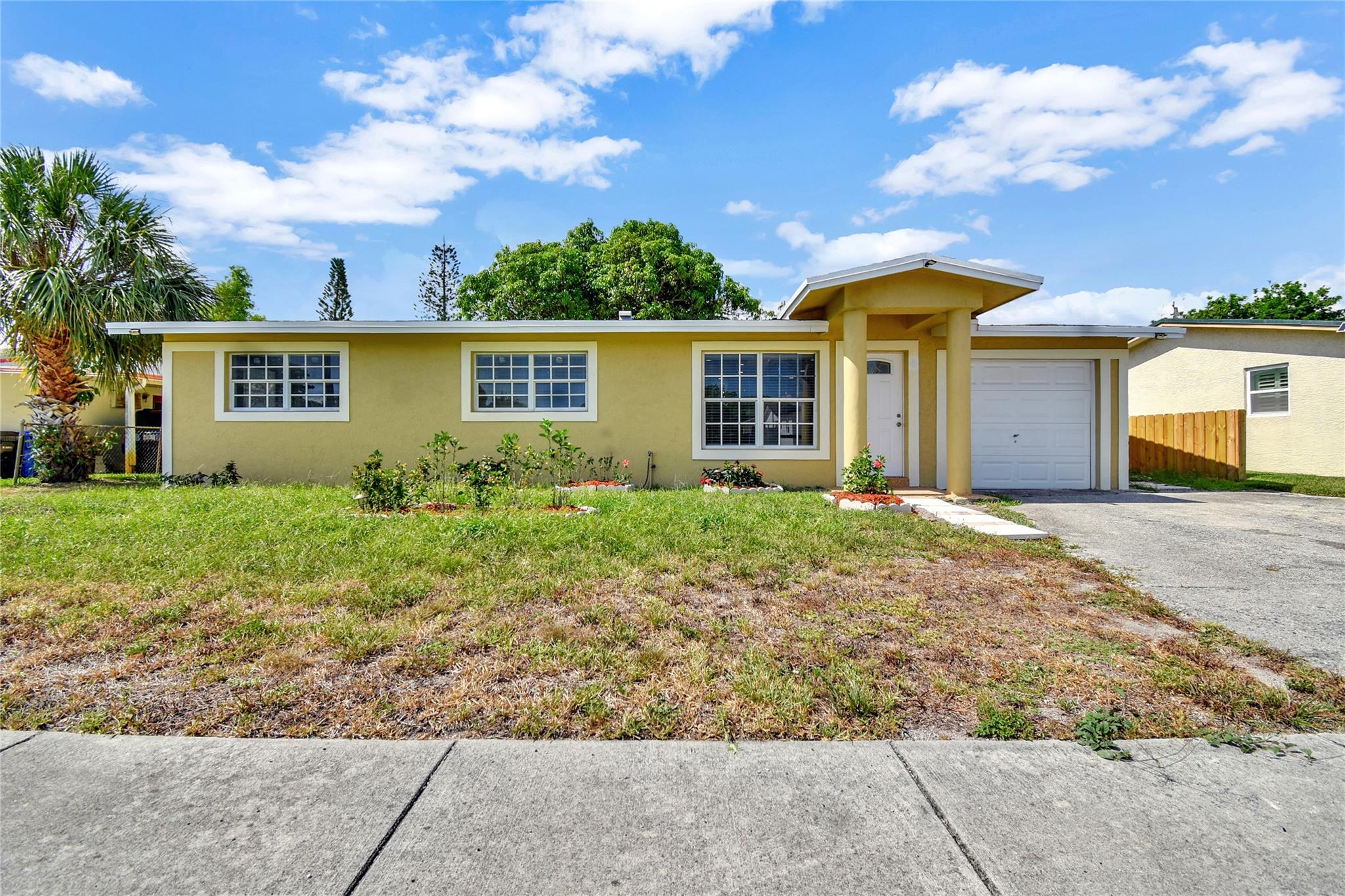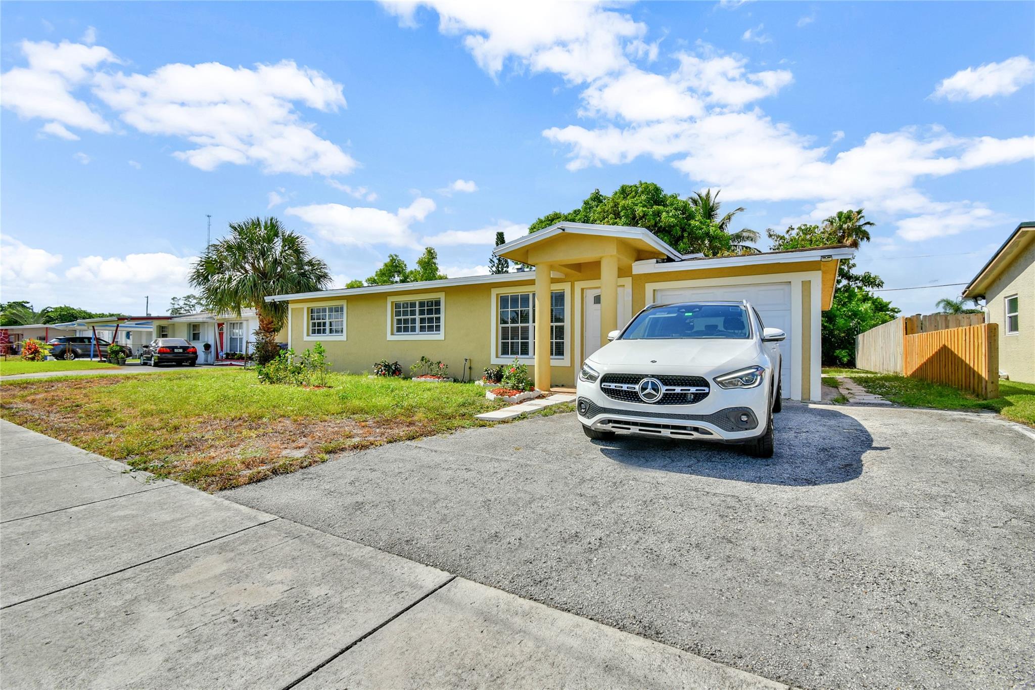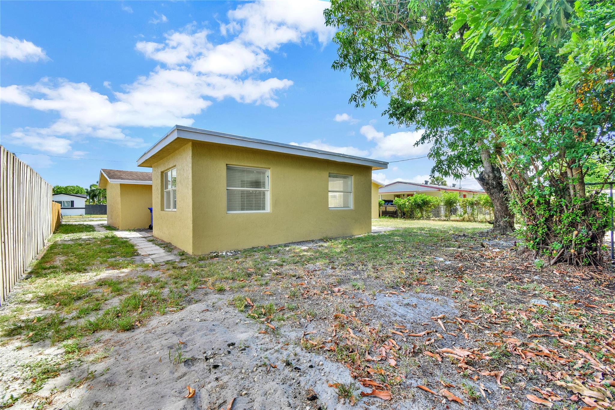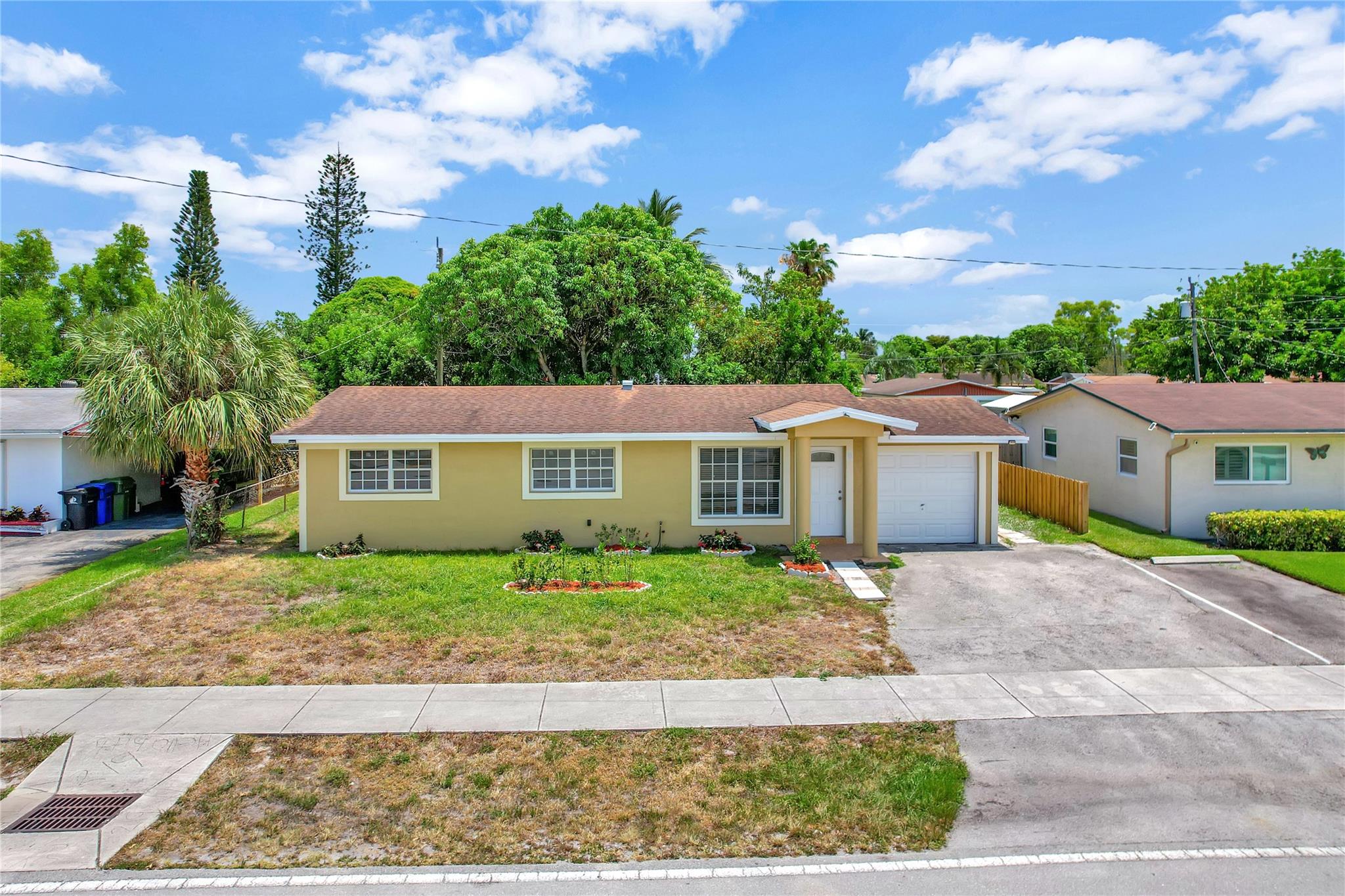Newly renovated 3-Bed, 2-Bath home + Den with separate entrance that can be converted into a studio for extra income! Conveniently located near I-95 & Turnpike, just 13 minutes from Las Olas & 15 minutes from the beach with NO HOA or rental restrictions. Situated on a 6,800-sq ft fenced lot, this property boasts a serene backyard w/mango trees, ideal for entertaining & a 1-car garage equipped w/cabinetry for ample storage. The living area is accentuated by recessed lighting & distinct grey vinyl flooring. The kitchen showcases custom cabinetry, granite countertops, & stainless steel appliances. Enjoy spacious bedrooms and a distinctive guest bathroom w/marble-style tiles & gold accents. The sizable master bedroom features a luxurious en-suite bathroom with dual sinks and mirrors.