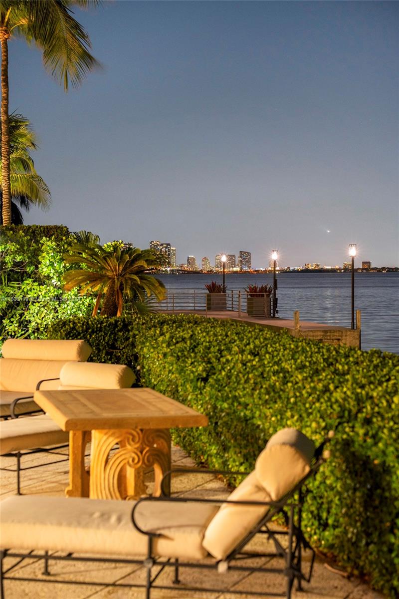 Located on prestigious North Bay Road this 2-story Mediterranean waterfront home sits on a private 20,100 square foot point corner lot in a cul-de-sac with open Biscayne Bay and Miami skyline views plus 230’+ of sparkling water frontage wrapping around to protected waterfront. Existing home features 6BR/5+1BA, a gated security entrance, Chicago brick driveway, and a serene interior courtyard with fountain. Outdoor highlights include mature lush, landscaped grounds and gardens, a large pool with natural coral deck, covered seating area with alfresco dining table. Location, Views, Land, Water frontage!!