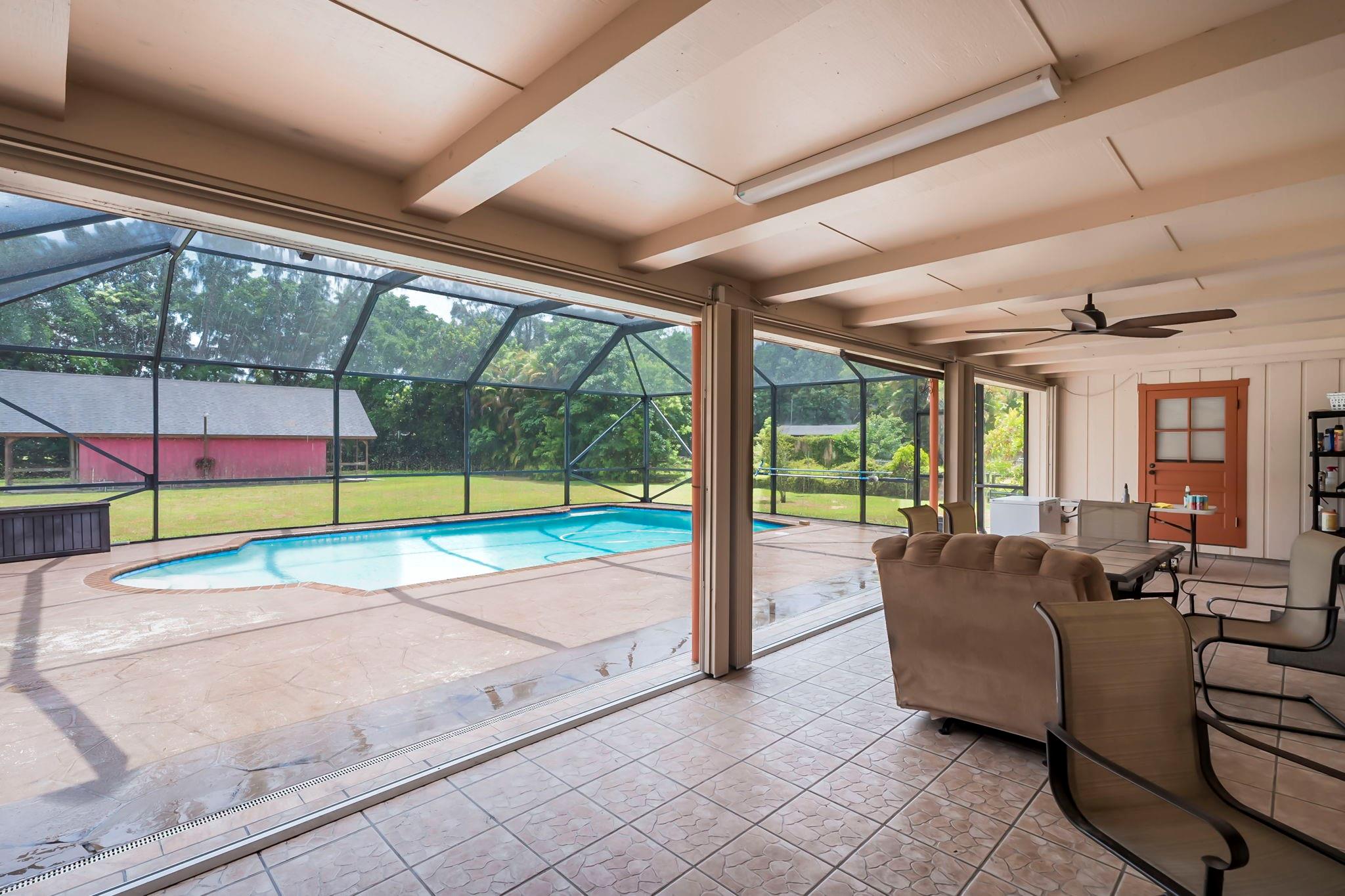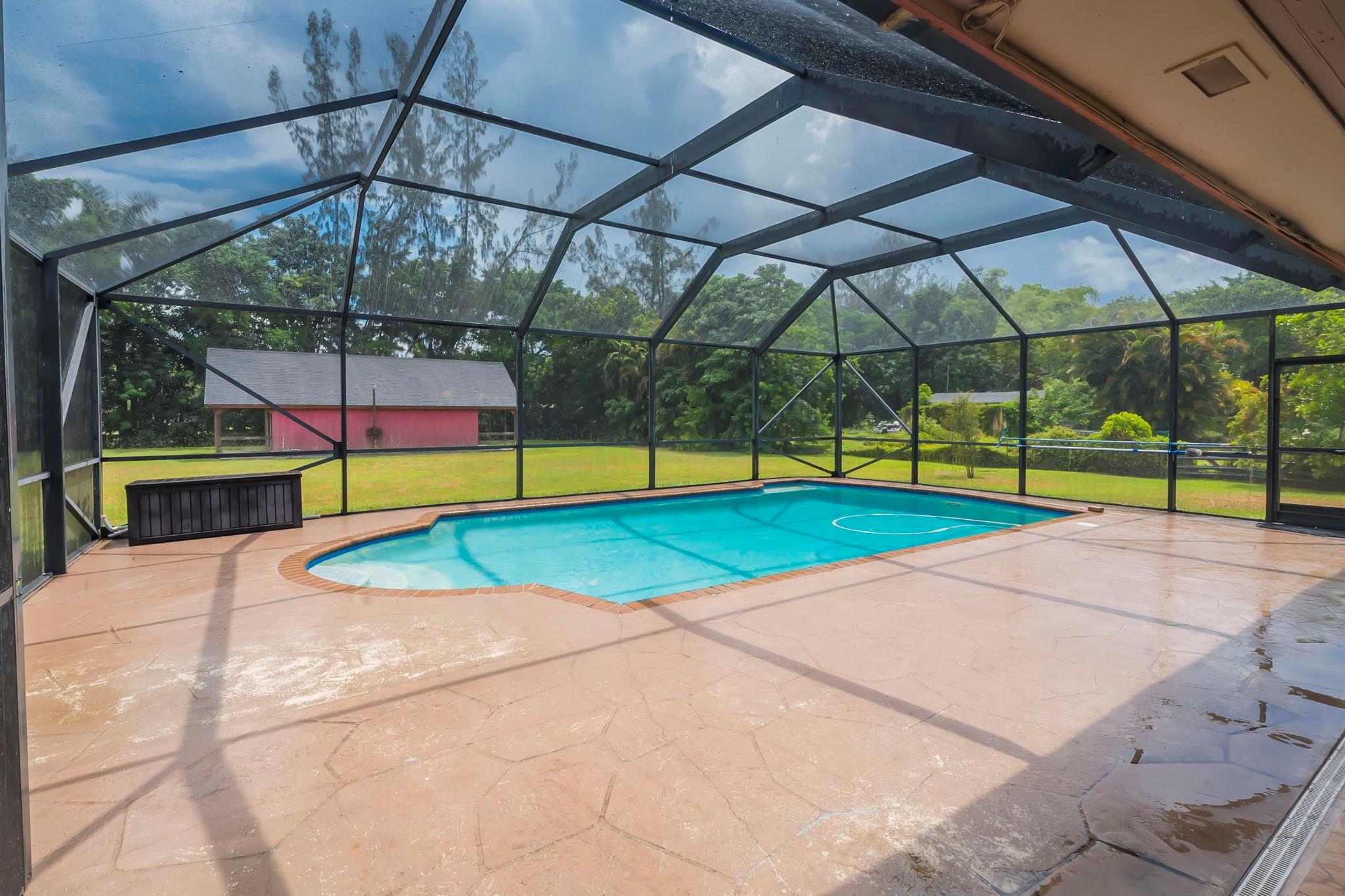 Country living with urban convenience! Nestled on an expansive lot of over 35,000 square feet, this property offers space and privacy in a vibrant community. Imagine relaxing by your screened-in pool, overlooking the lush backyard that stretches as far as the eye can see. This outdoor oasis is perfect for hosting, summer barbecues, or simply enjoying the tranquil surroundings. This home offers a versatile den or office space, a larger kitchen, and well-appointed bedrooms. The separate barn provides endless possibilities, from a workshop to an artist's studio or even a space for animals! This home combines the best of rural charm and urban convenience. Pack your bags and get ready to enjoy this slice of heaven close to it all!