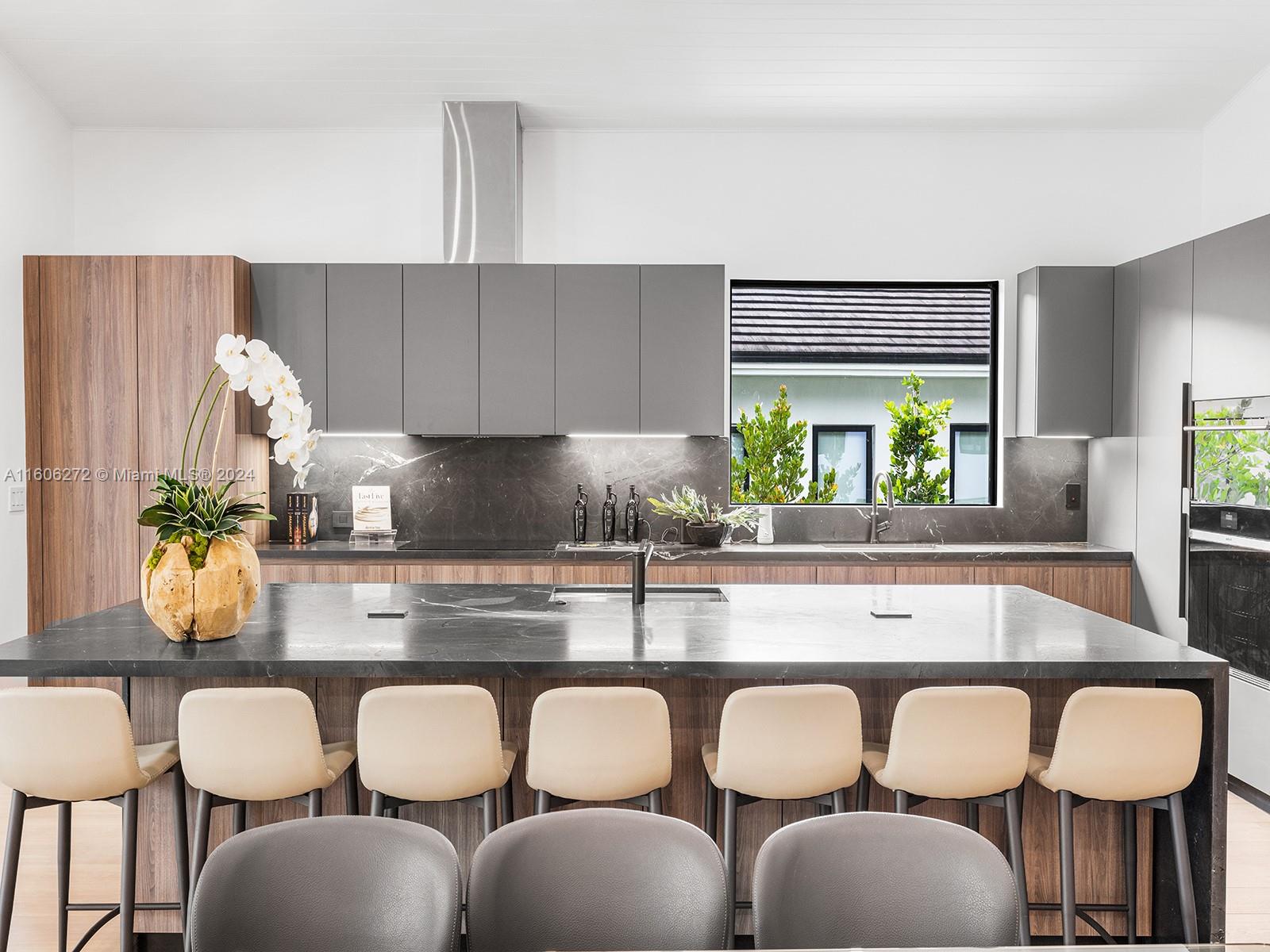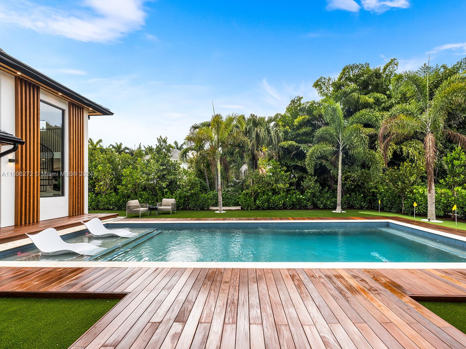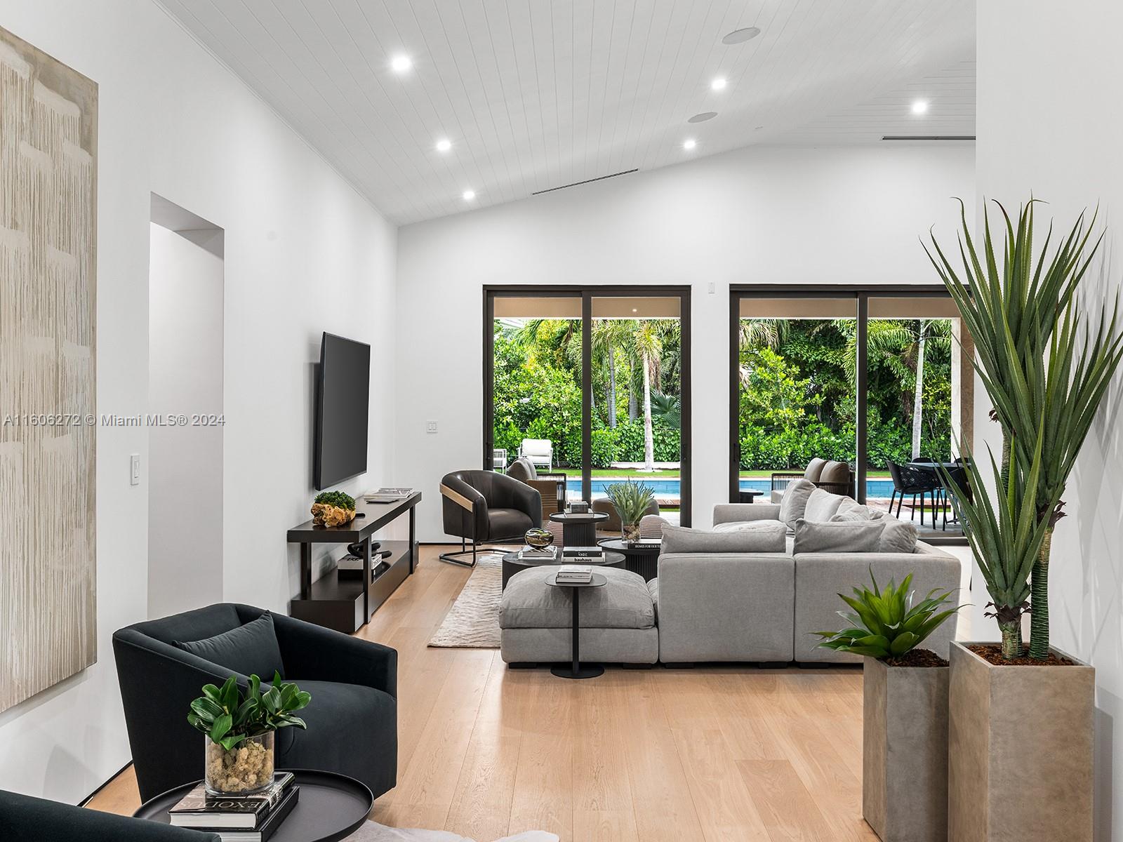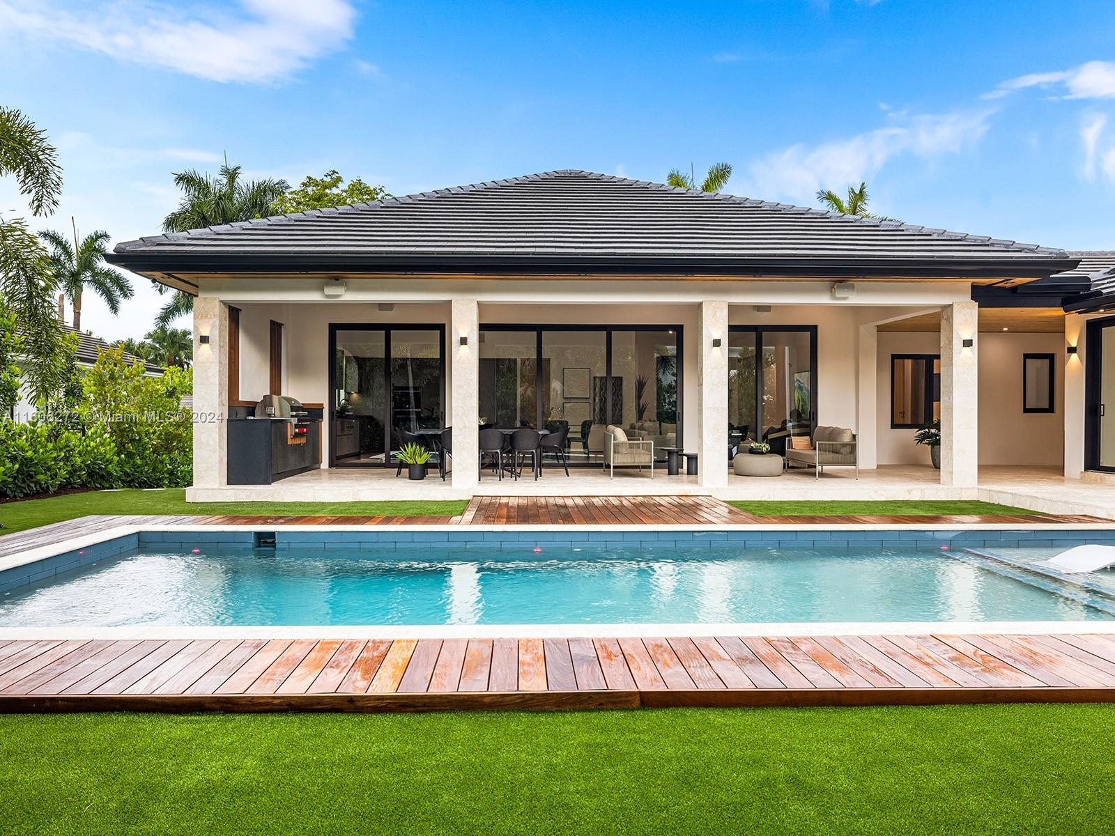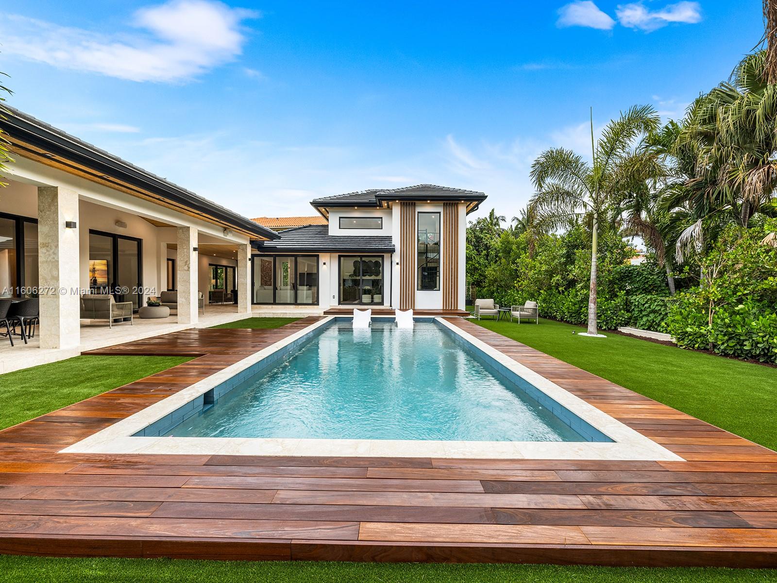 Welcome to this stunning, turnkey contemporary home in Cocoplum. Offering 5 bedrooms and 5.5 bathrooms across 5,391 sqft under AC, this home features high ceilings, recessed lighting, hardwood floors, and floor-to-ceiling windows. The Mia Cucina kitchen, with top-of-the-line appliances, an island, and a pantry, is a chef's delight. There is also a formal dining room, home office, library/den, or media/recreation room. The primary suite has a Mia Cucina walk-in closet and a luxurious marble bathroom with a soaking tub, double shower, and dual vanity. Other bedrooms have custom closets and ensuite bathrooms with elegant finishes. The private yard includes an expansive pool and a summer kitchen, ideal for entertaining. Don’t miss this masterpiece in one of Coral Gables' top neighborhoods!