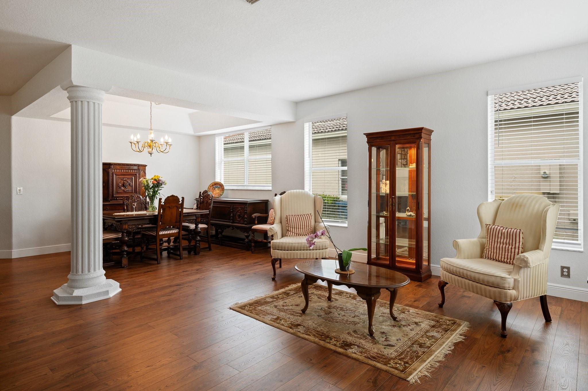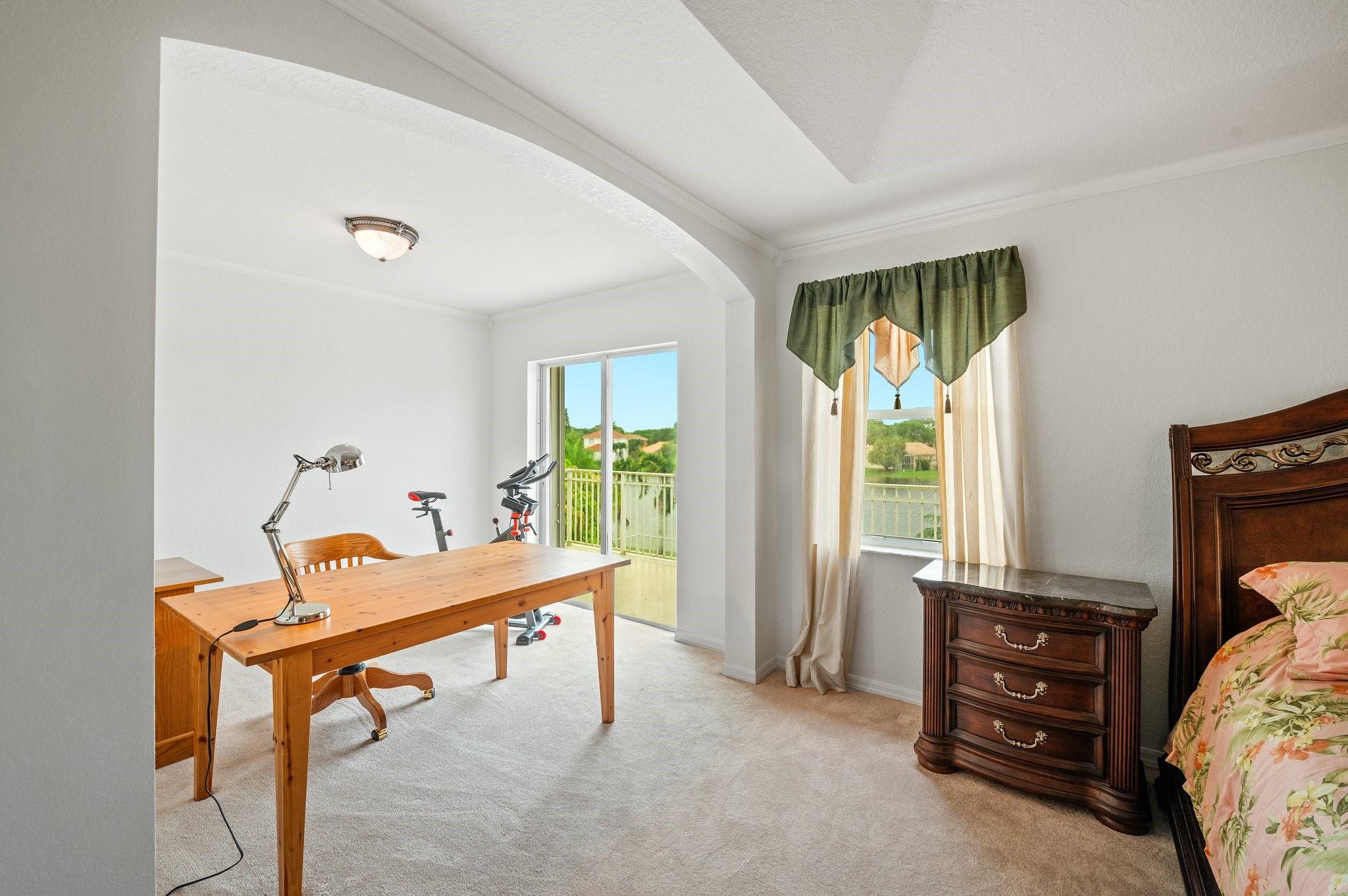This exquisite 4 bedroom, 3 bathroom home exudes charm & elegance. The updated kitchen features stainless appliances, farmhouse sink & quartz counters. Primary bdrm is a sanctuary itself, w/ private balcony overlooking the lake & additional sitting room can easily transform into an office or serve as a 5th bedroom. Additional bedrooms are spacious w/ great closet space. Boasting a refreshing pool & screened in patio, it's ideal for entertaining. Recently painted exterior & new exterior lights enhance its curb appeal, while the aluminum fence surrounding the backyard provides both security & style. W/ a spacious 3 car garage providing ample storage space, this home combines luxury, functionality, and breathtaking views, promising a lifestyle of comfort & relaxation.