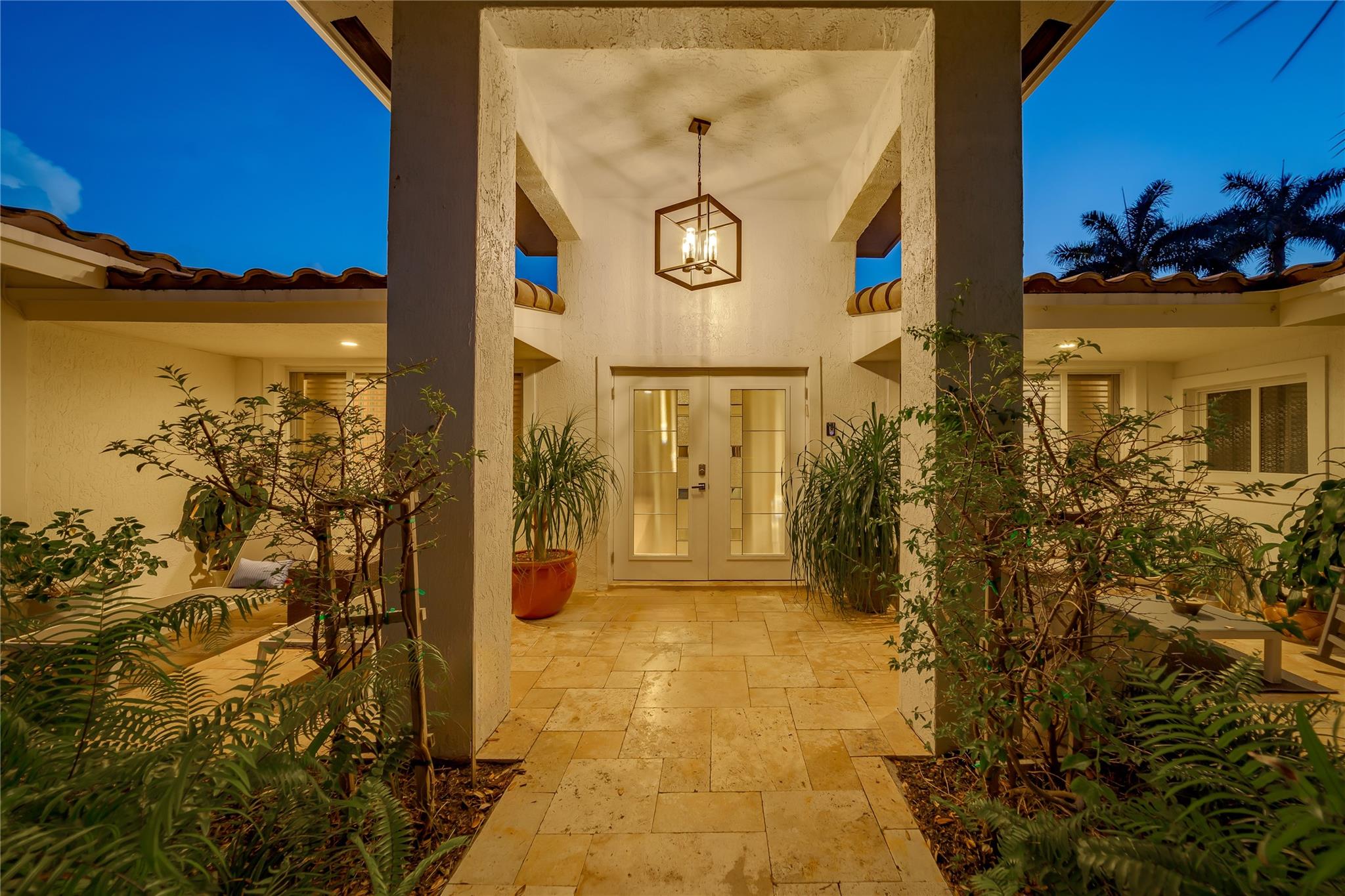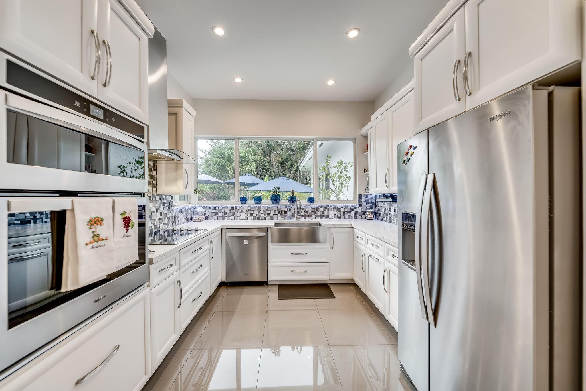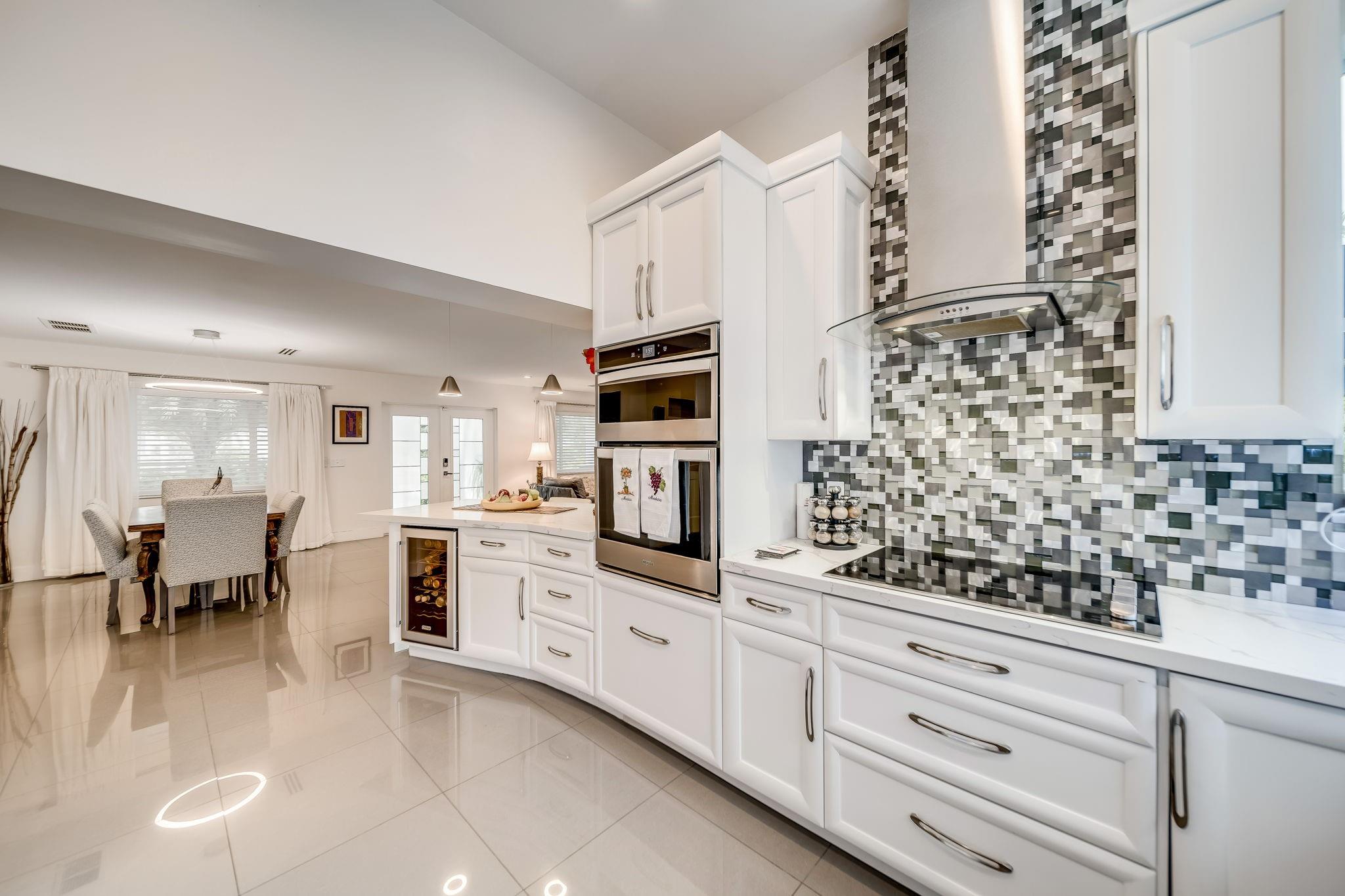 Tastefully updated 4/3 home on an oversized 11,473 sq ft lot. Open split bedroom floorplan. Large primary suite (27x15) has 10 ft ceilings, walk-in closet and seating area overlooking the pool. Updated kitchen with stainless steel appliances, quartz counter tops, and white shaker cabinetry. Impact windows and doors, roof 2018, sewer lines and pipes under home replaced, porcelain flooring throughout & linear air ducts. Secured custom made front fence with keypad entry, Extra-large salt chlorinated pool with heater/chiller and travertine pavers. Professionally landscaped front and back including outdoor lighting. House completely gutted and new wing/addition added in 2018/19 along with new electric wiring, plumbing and flooring. Garage is ready for you to plug in your electric vehicle.