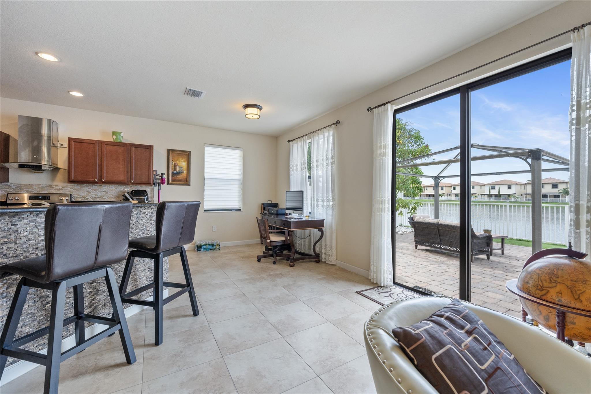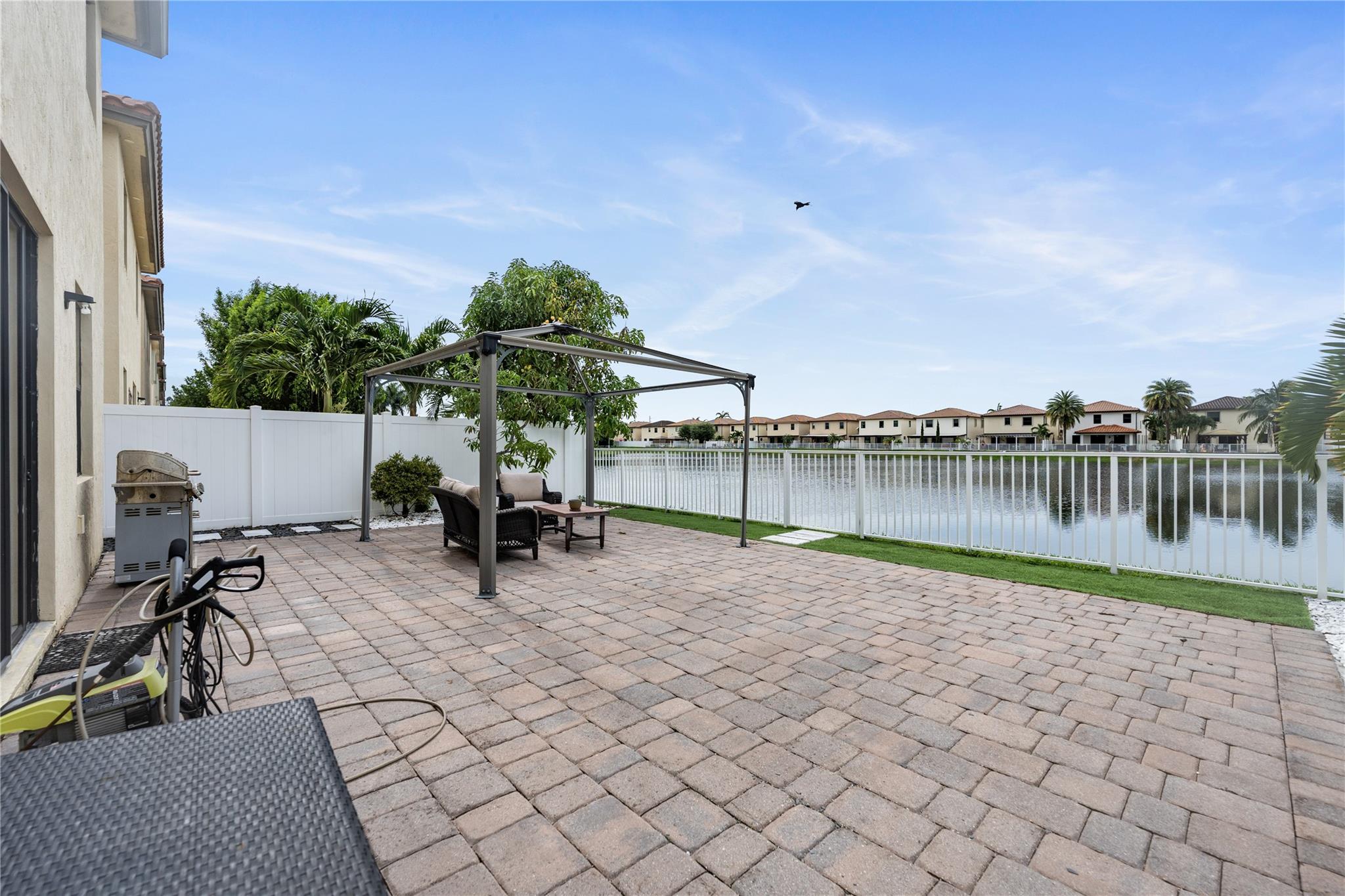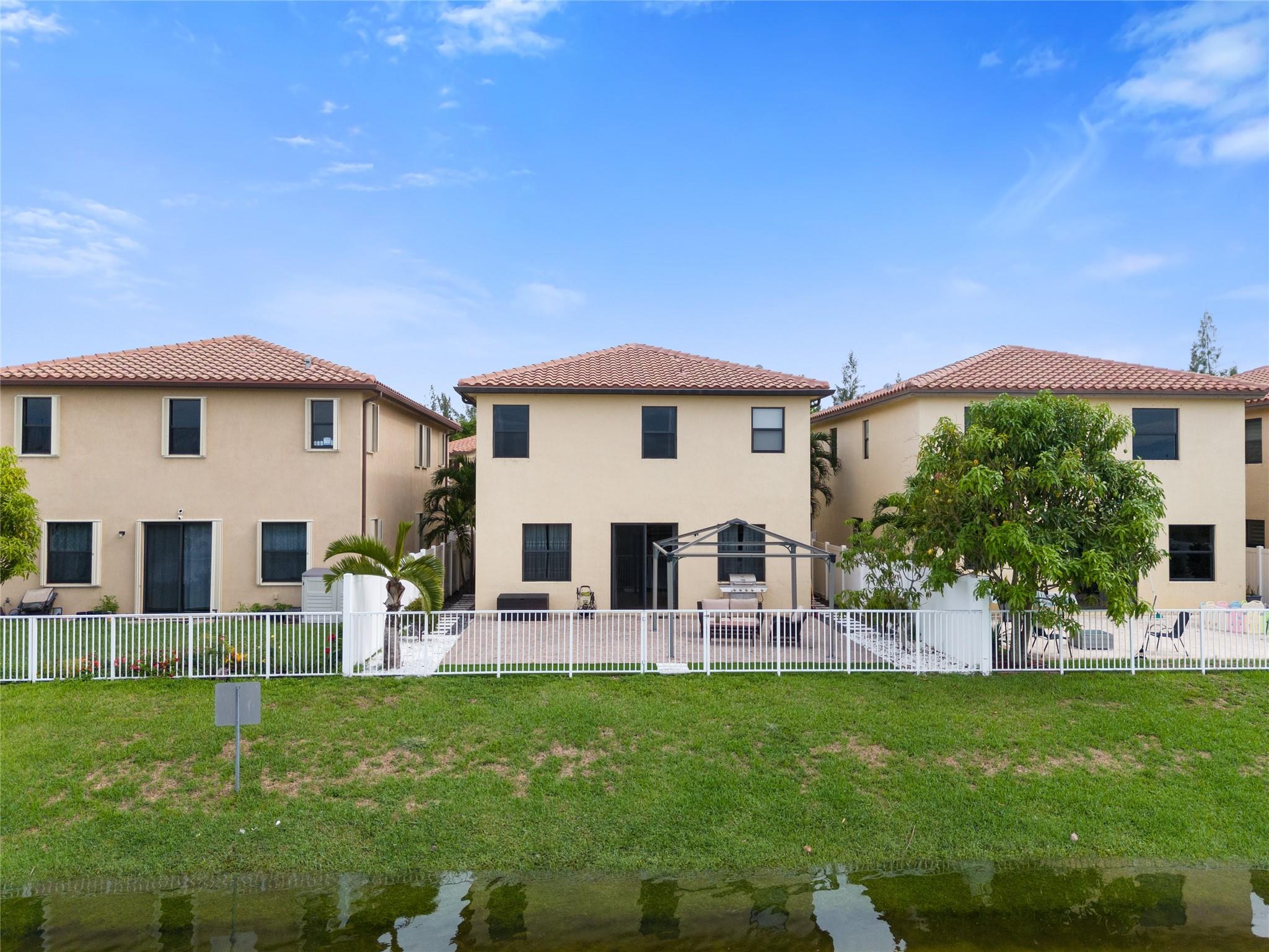 Gorgeous two story Largest Model Lakefront Home in the Gated community of Aragon, tile throughout the first level leading you to a breathtaking fenced, tropical backyard on a wide lake, complemented by a living room area and Kitchen overlooking the serene lake views, with stainless steel appliances and granite countertops and snack breakfast counter with plenty of room for the family & guests. Explore this practical design with 4 spacious bedrooms, 3 and a half bathrooms, and a 2-car garage with a huge paved driveway. Enjoy waterviews from your secluded patio with plenty of space and privacy for outdoor entertainment with family and friends—a fully maintained community with low HOA fees. The seller will credit up to 3% to the buyer as a closing cost. THE BEST LAKEVIEW IN THE COMMUNITY.