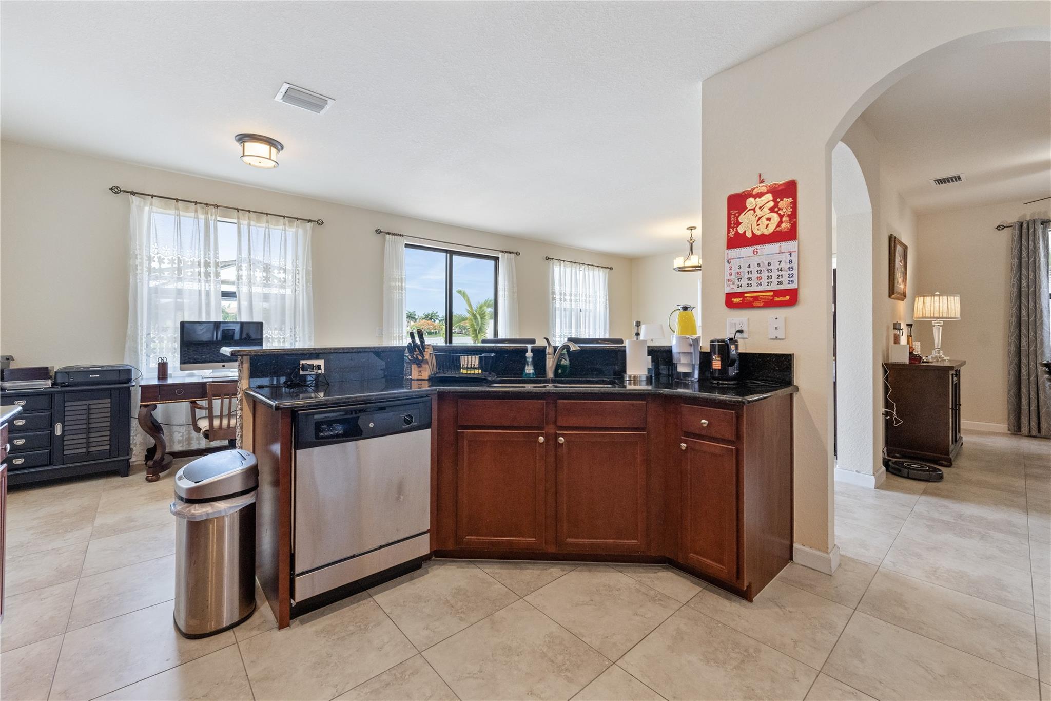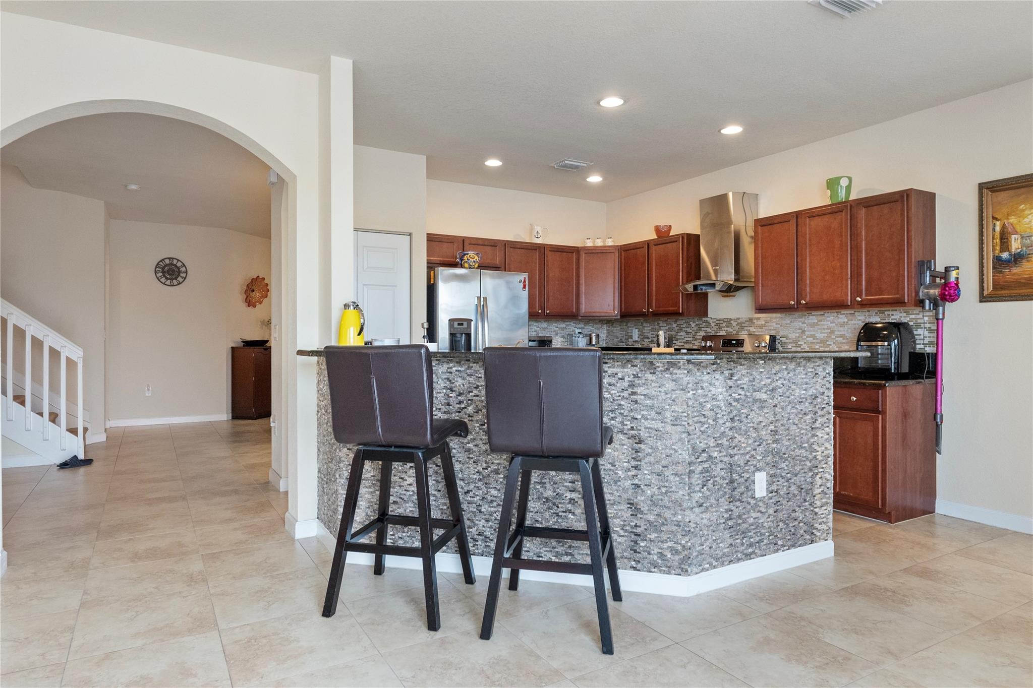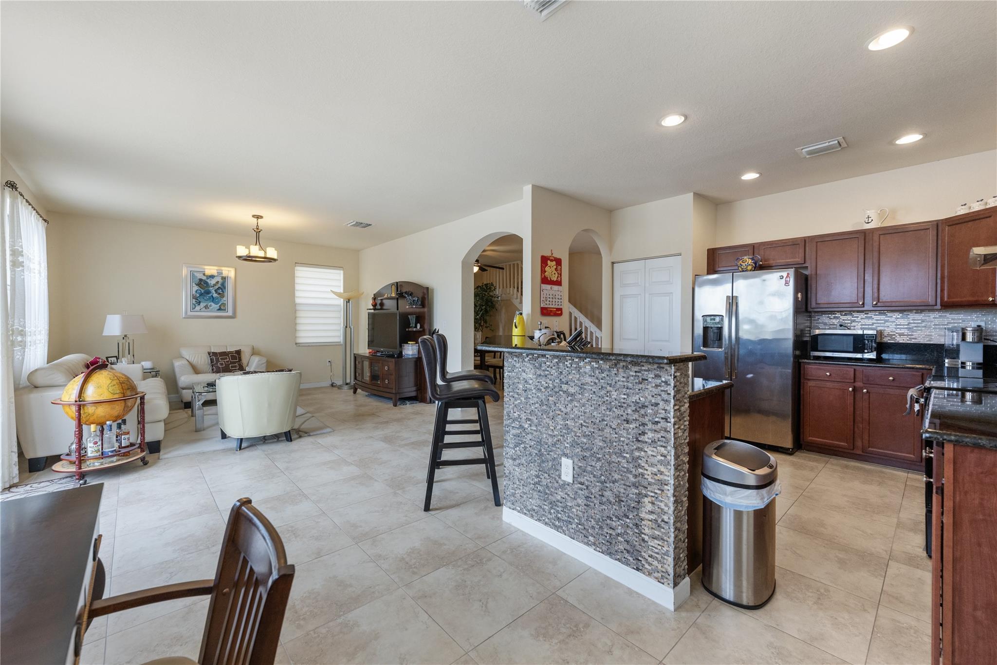 Gorgeous two story Largest Model Lakefront Home in the Gated community of Aragon, tile throughout the first level leading you to a breathtaking fenced, tropical backyard on a wide lake, complemented by a living room area and Kitchen overlooking the serene lake views, with stainless steel appliances and granite countertops and snack breakfast counter with plenty of room for the family & guests. Explore this practical design with 4 spacious bedrooms, 3 and a half bathrooms, and a 2-car garage with a huge paved driveway. Enjoy waterviews from your secluded patio with plenty of space and privacy for outdoor entertainment with family and friends—a fully maintained community with low HOA fees. The seller will credit up to 3% to the buyer as a closing cost. THE BEST LAKEVIEW IN THE COMMUNITY.