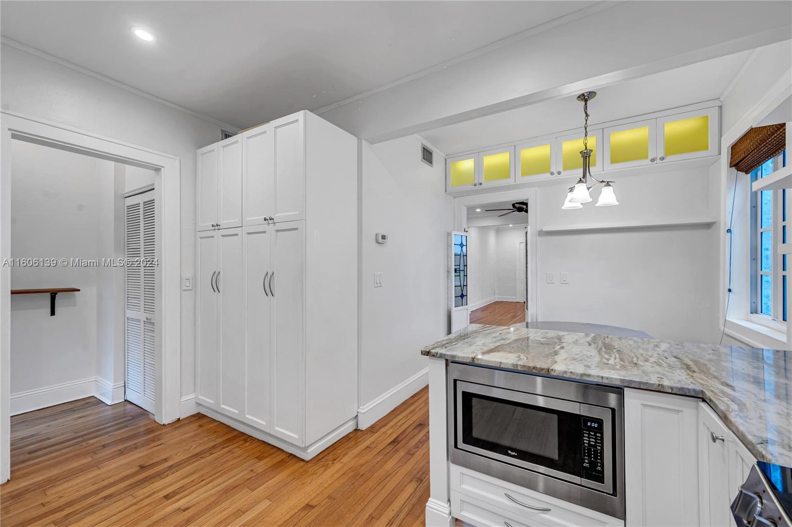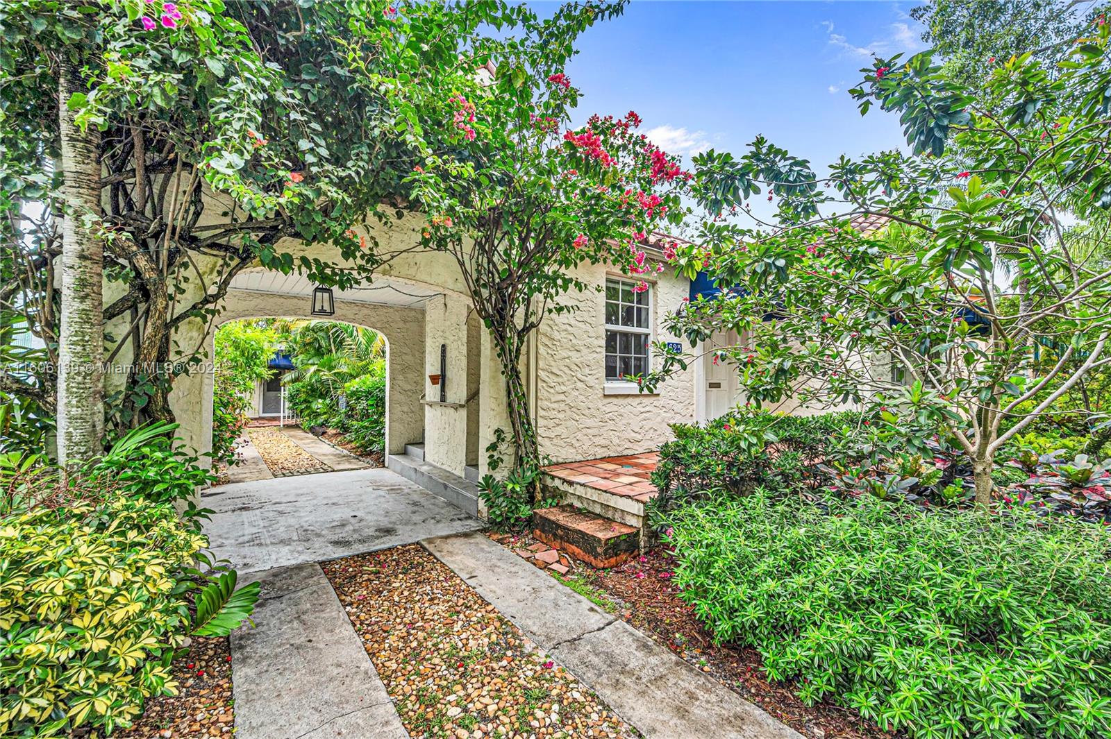 Welcome to this quintessential 1925 Old Spanish gem nestled on a tree-lined street in Coral Gables. This beautiful home seamlessly blends timeless charm w/ modern updates. Full of character w/ an original fireplace, hardwood floors & abundant natural light. The main house offers 2 spacious bedrooms & 2 full baths. Detached 1/1 cottage serves as perfect home office or guest quarters. Enjoy a renovated kitchen w/ ample storage & breakfast nook. Primary suite w/ walk-in closet & large bathroom. Tropical backyard oasis w/ deck, private patio & lush landscaping, ideal for relaxation & entertaining. Upgrades include impact windows, recessed lighting & new water heater. A carport ensures convenient parking. Ideal location just 2 blocks from Granada Golf Course & walking distance to Miracle Mile.