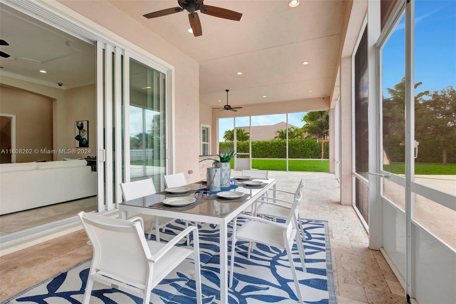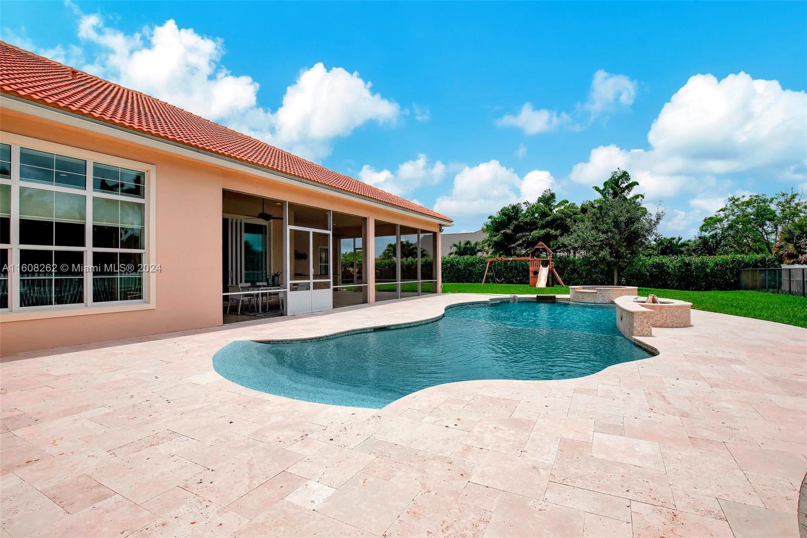 Experience luxury living in this magnificent Hawthorne model home on sprawling .80-acre lot 5 bedroom, one is used as office, 4.5 bath with flex space, this residence offers spacious and adaptable living. Culinary enthusiasts will revel in chef's kitchen, complete with granite countertops and top-of-the-line GE Monogram appliances. True oasis awaits with beach-entry saltwater heated pool and raised spa, all surrounded by travertine. Screened patio, featuring an outdoor kitchen, is perfect for year-round enjoyment. This home is equipped with impact windows and power outlet for generator. HOA fee covers lawn cutting and tree trimming. Living in Sterling Ranch combines luxury and convenience with prime location near major highways and attractions.