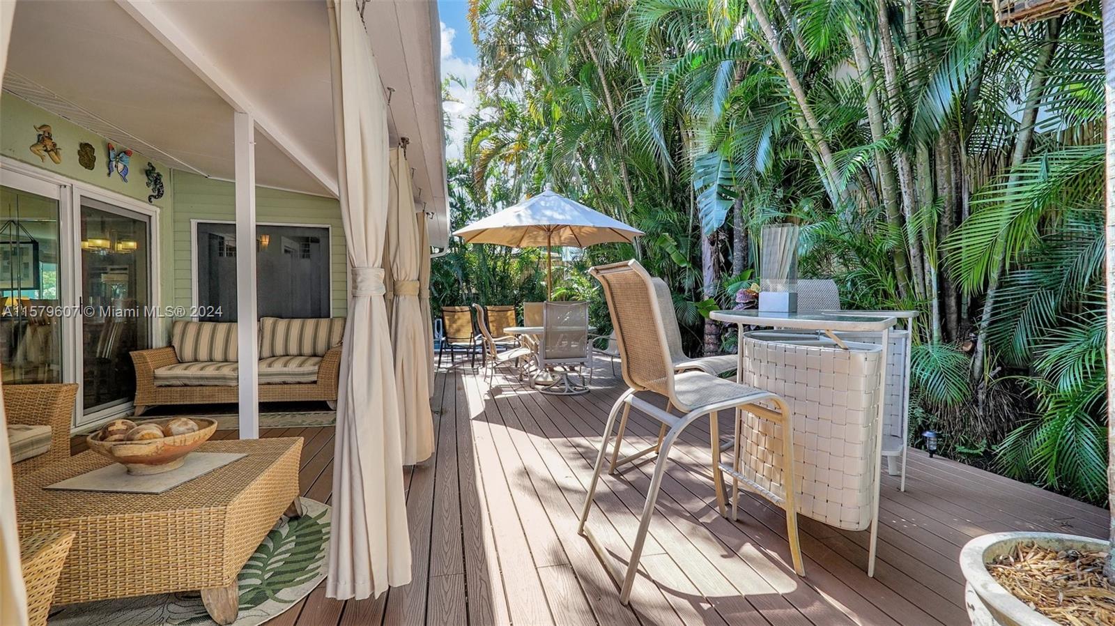RE-PRICED. SELLER SAYS BRING OFFERS! Its Good to be Home! Great property east of Federal highway. Backyard has a large deck with a sweet, circular pool to keep you cool. Surrounded by lush tropical landscaping. All the big ticket items have been updated including new roof, tented 2023 & guaranteed for 5 years, stack WD., shed, mostly PVC pipes as per seller. Updated electric, new panel outside, updated bathrooms, guest bath is a huge spa like bath. Open kitchen, lots of counter space, permitted garage conversion. Furnishings are negotiable. close to 2 golf courses, minutes to beach, shopping, airport, public marina, (Holland park).Close to downtown. Strong civic association. Walking, biking friendly neighborhood, not a thru street to US 1. Quiet area.