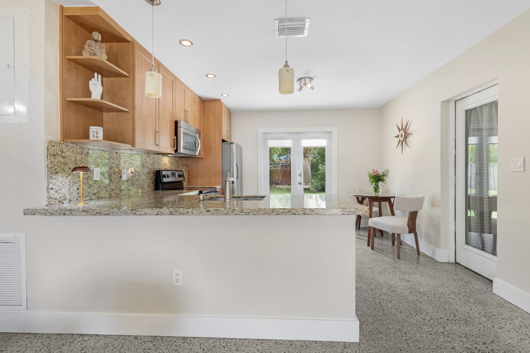 Beautifully renovated 2 bedroom/2 bathroom (plus small den/office/storage) private SFH residence in Middle River Terrace! This lovely home is walking distance to the restaurants, bars and shops of Wilton Manors, and the 13th Street redevelopment (Milk Money, Gulf Stream Brewing Co, shops, etc)! This exceptional home features a fully updated interior, eat-in kitchen, newer central a/c, lifetime metal roof, impact windows/doors, new custom privacy blinds, restored terrazzo floors, and indoor laundry. Large, private back yard with patio and plenty of room for your dream pool. Well-water irrigation system and LED landscape lighting.