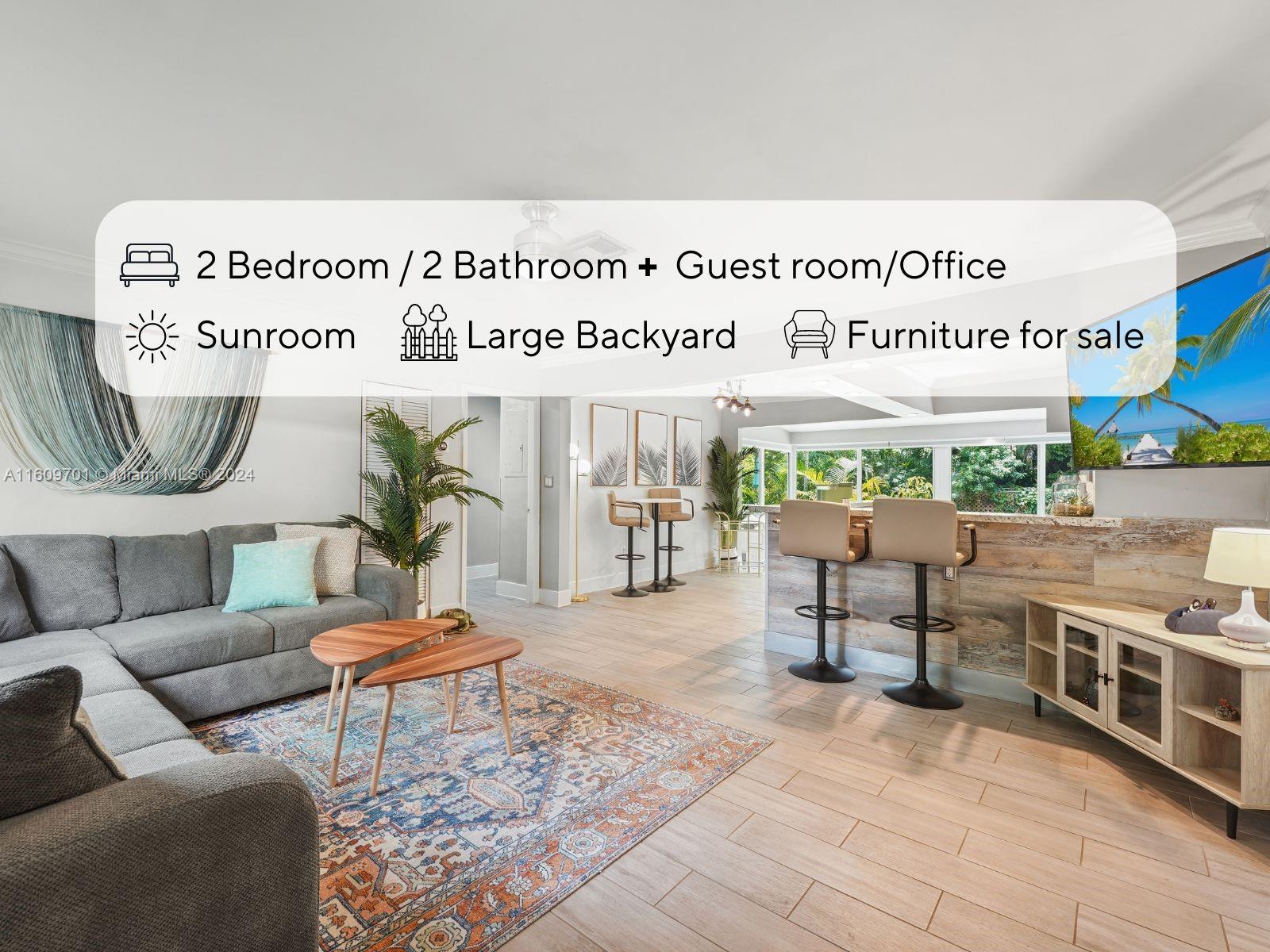 **Charming Green Oaks home with tons of potential!!** 2 Bedroom / 2 Bath + Guest room/Office. Impact windows, 3 yr-old AC, Large backyard fully fenced with access gates to accommodate cars, RV and boat with a back alley. Plenty of space for a pool. Separate laundry shed and outdoor storage shed. Amazing location near Biscayne. Furniture is negotiable. SELLER IS MOTIVATED!!