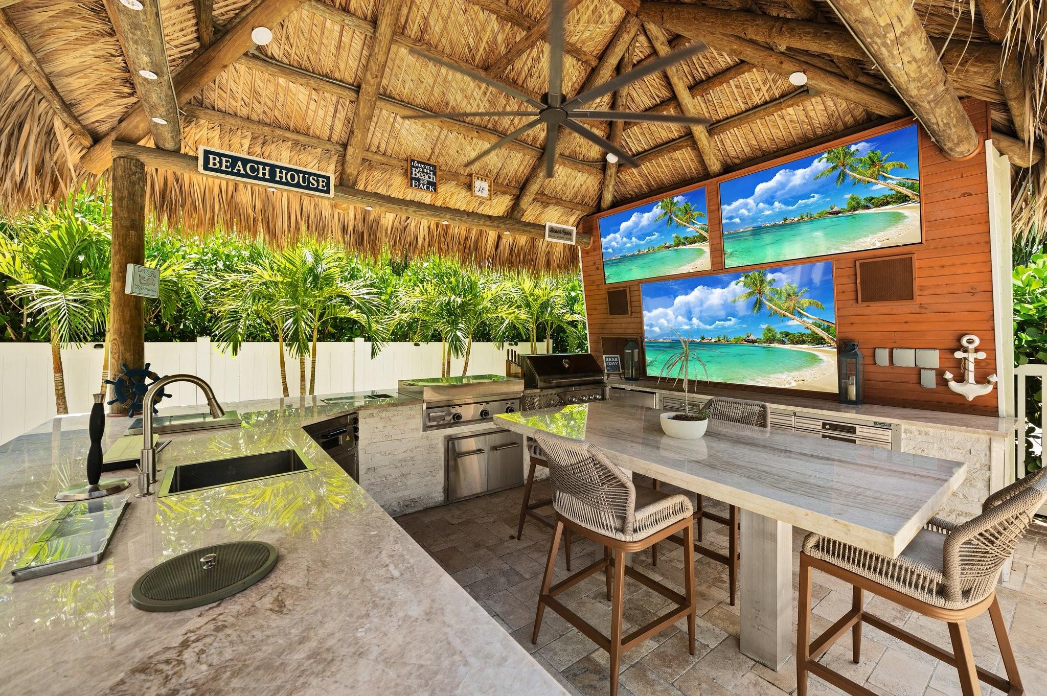 This stunning 2008 Coastal Key West home has been transformed with modern flair and impeccable taste. The 2021 magazine quality pool and patio with tiki hut, extraordinary summer kitchen and multiple big screens is an entertainers dream. The 2020 kitchen is a chefs delight and a focal point of the home . It offers great storage, custom cabinetry, quartz counters, huge pantry, bar, island and modern appliances. The spacious 2nd floor primary suite has 2 huge closets, balcony and new luxurious spa like bathroom. Other features inc: pool heater/chiller, gas generator, high elevation, PVC plumbing, vaulted ceilings, designer staircase, quality window treatments, surround sound, new AC units etc. Walk to marina/waterfront dining. Short drive to Las Olas, I95, airport, beach, private schools.