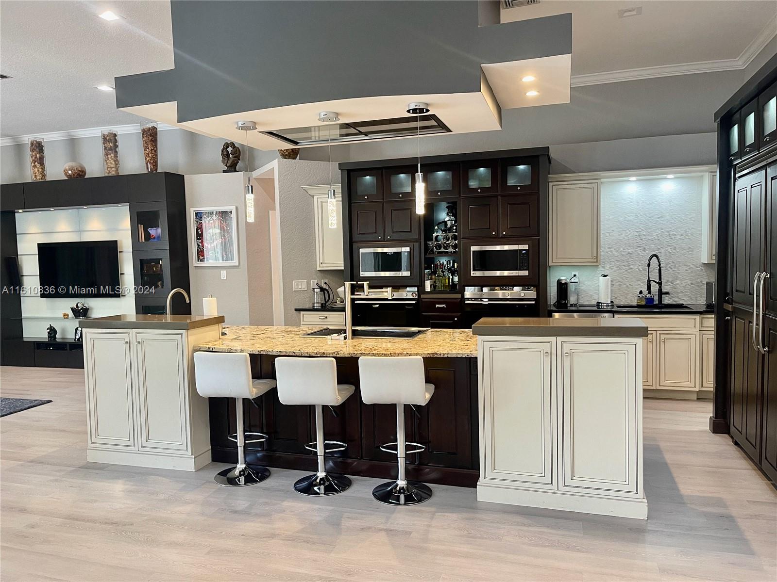 A GEM . Emerald Springs . Updated 6 Bedroom . 4 Bath . 3 Car Garage . Home includes 3,688 SF (Living Area) Impact Windows & Doors throughout. Builder's Acre Lot (35,100 SF) in upscale Gated Community in Davie. Property includes Custom In-Ground (22' x 30') Swimming Pool with Custom Lighting, Waterfalls, Shallow Deck, Outdoor features include Grill / Entertainment Area / Travertine Deck, Basketball / Pickleball Court. Foyer Entry transitions to Open Floor Plan connecting the Dining Room, Living Room, Den and Gourmet Kitchen. Kitchen features includes Custom Cabinetry, Stone Countertops, Huge Island, Double Sinks, Double Ovens, Full Height Double Door Fridge / Freezer, separate Pantry, custom lighting and Additional Storage Cabinetry. Also included is additional Media / Entertainment Room