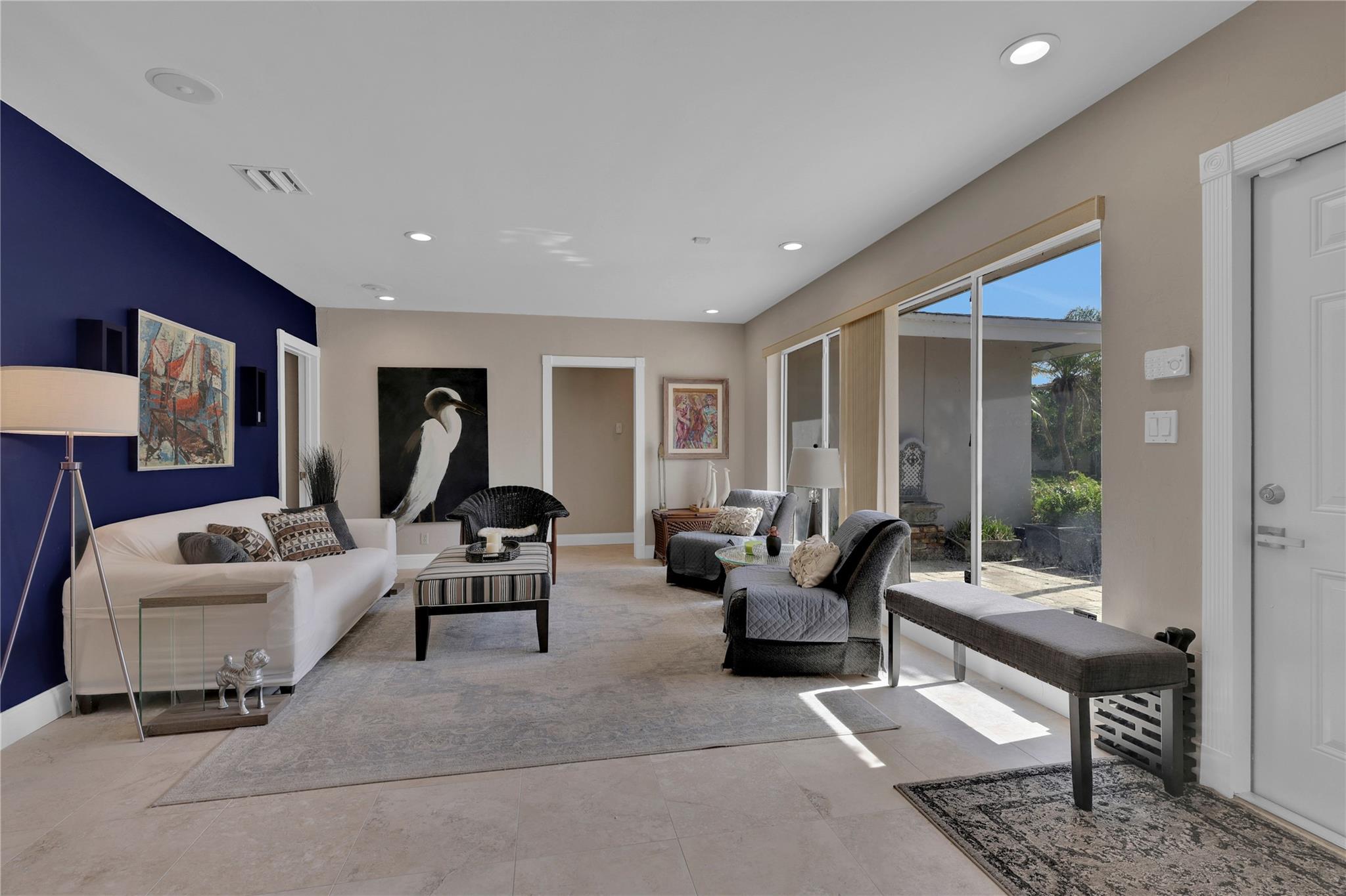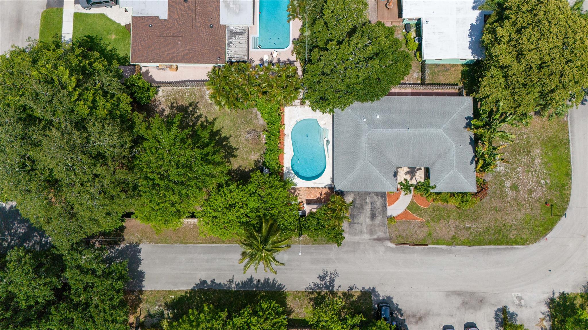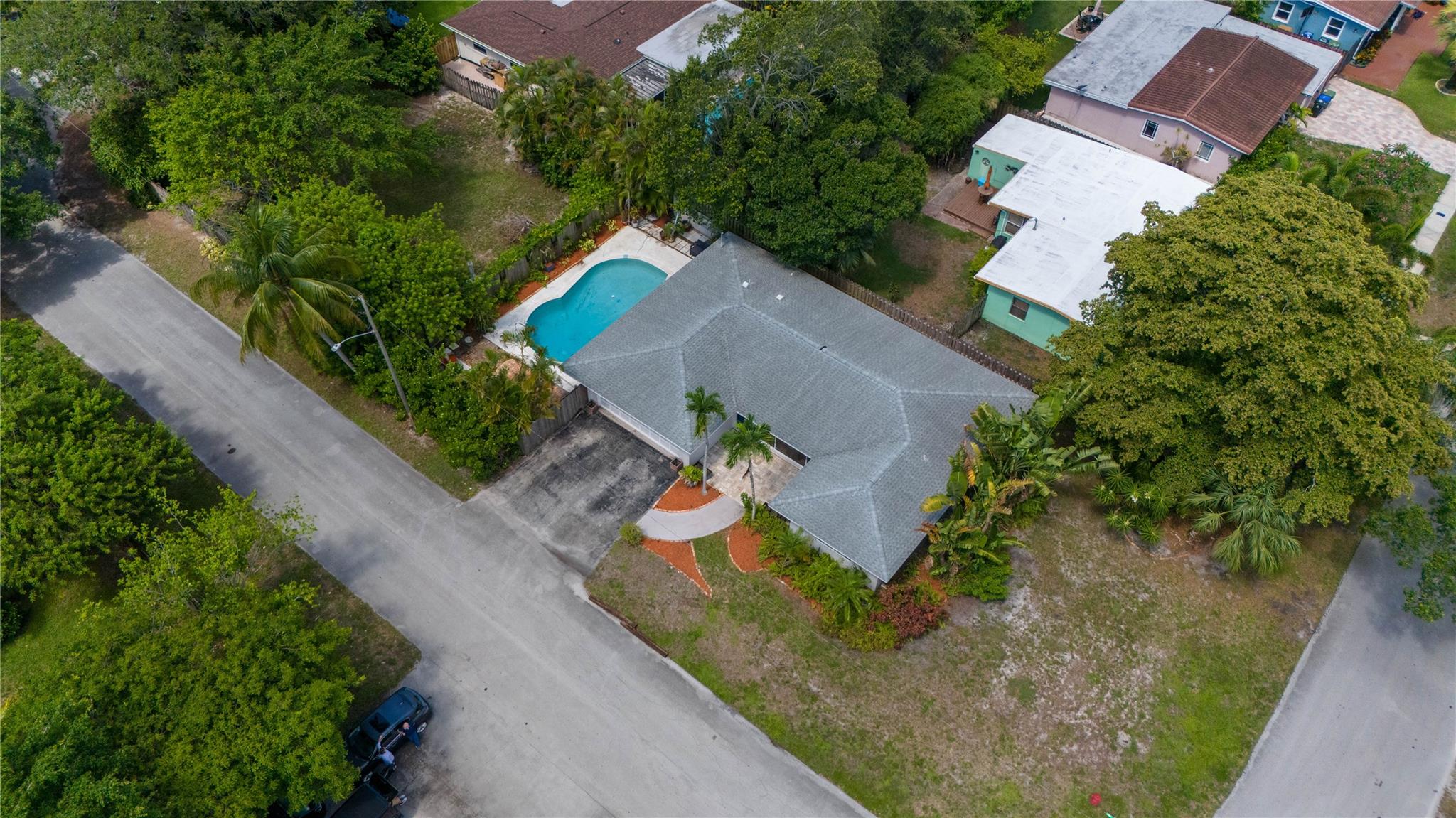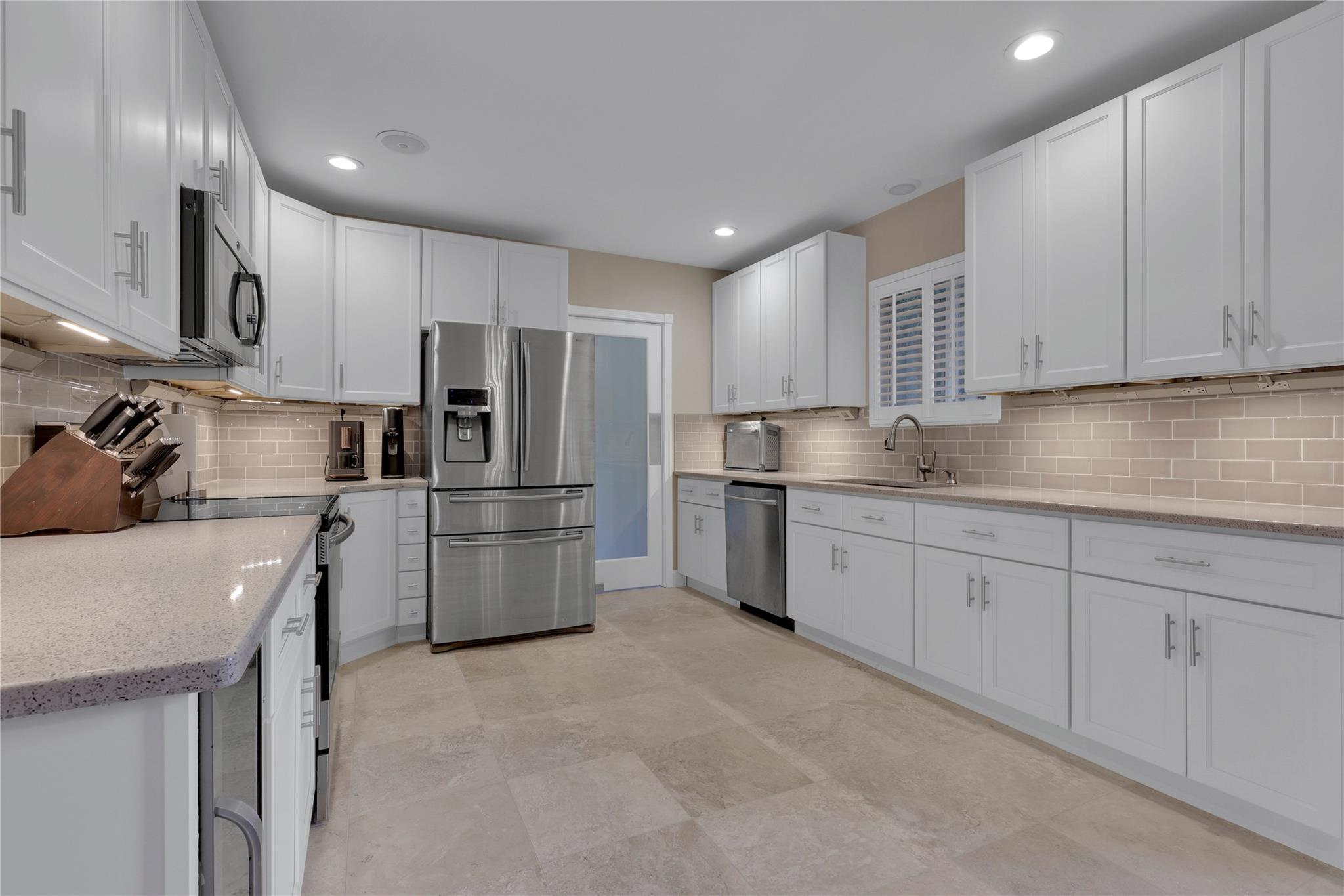 Spacious east of I-95 home. BONUS:TWO Folio #s! Build & sell another home! One lot 7700sf has 3/2 pool home. BRAND-NEW Modern luxury kitchen. Tall white cabinets, quartz counters, plantation shutters, recessed lighting, stainless steel appliances, travertine floors. Newly painted beautiful flowing living & dining room. 2017 Roof w/25-year warranty (50 on materials). 2017 3-ton Carrier & new duct system. Large Laundry room w/front loaders; tons of storage space. Corner primary bedroom w/ensuite bathroom & barn door! Second bedroom is just as large, connects to third bedroom or office. Hallway bathroom updated. Huge under-air family room (transformed from garage) has wall of closets and French doors leading to private pool and enchanting garden. Walk thru arch into 6300+ backyard (2nd lot).