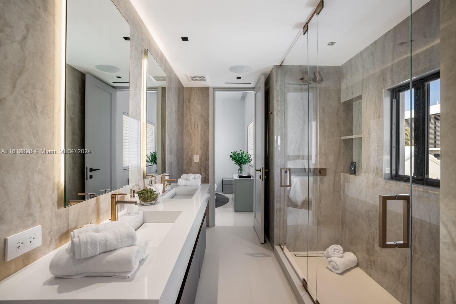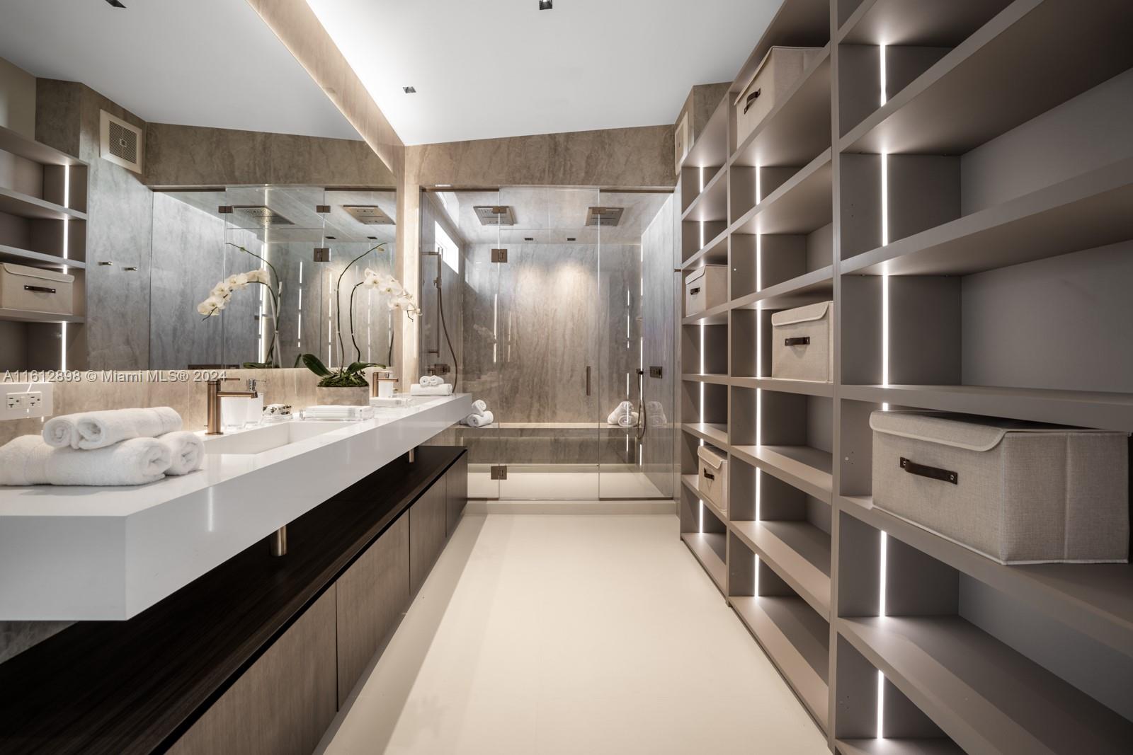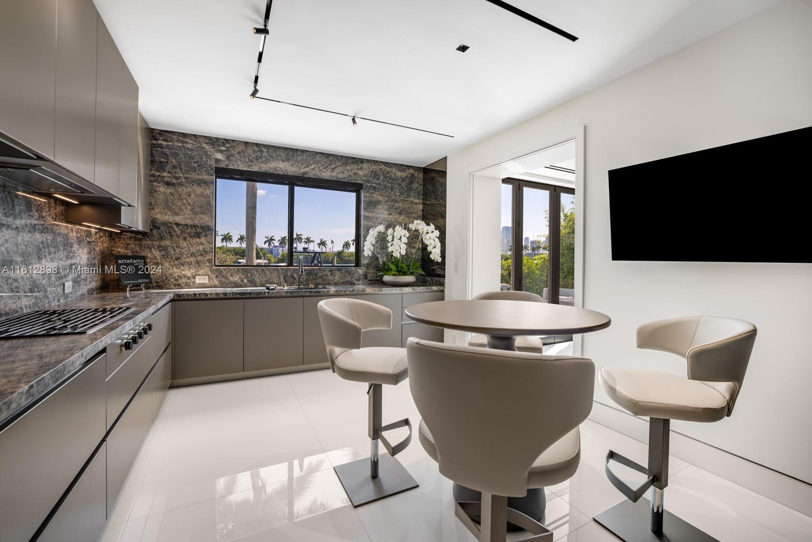 Welcome to Villa Bianca, a completely renovated waterfront residence thoughtfully curated by Artefacto. Located in the prestigious community of Palm Island, this turnkey, modern home is delivered with furniture and interior design by Fabio Morozini and Artefacto. The gourmet Italkraft kitchen features Wolf and Subzero appliances and Bronze Crystallo Countertops. Meticulously designed with a focus on modern aesthetics, this home has sleek lines, floor-to-ceiling windows, and an open floor plan with Nana sliding glass doors that invite you to the exterior. The backyard features an entertaining deck, saltwater negative-edge pool, two vessel dock on 50 ft of waterfrontage, and picturesque views of Downtown Miami.