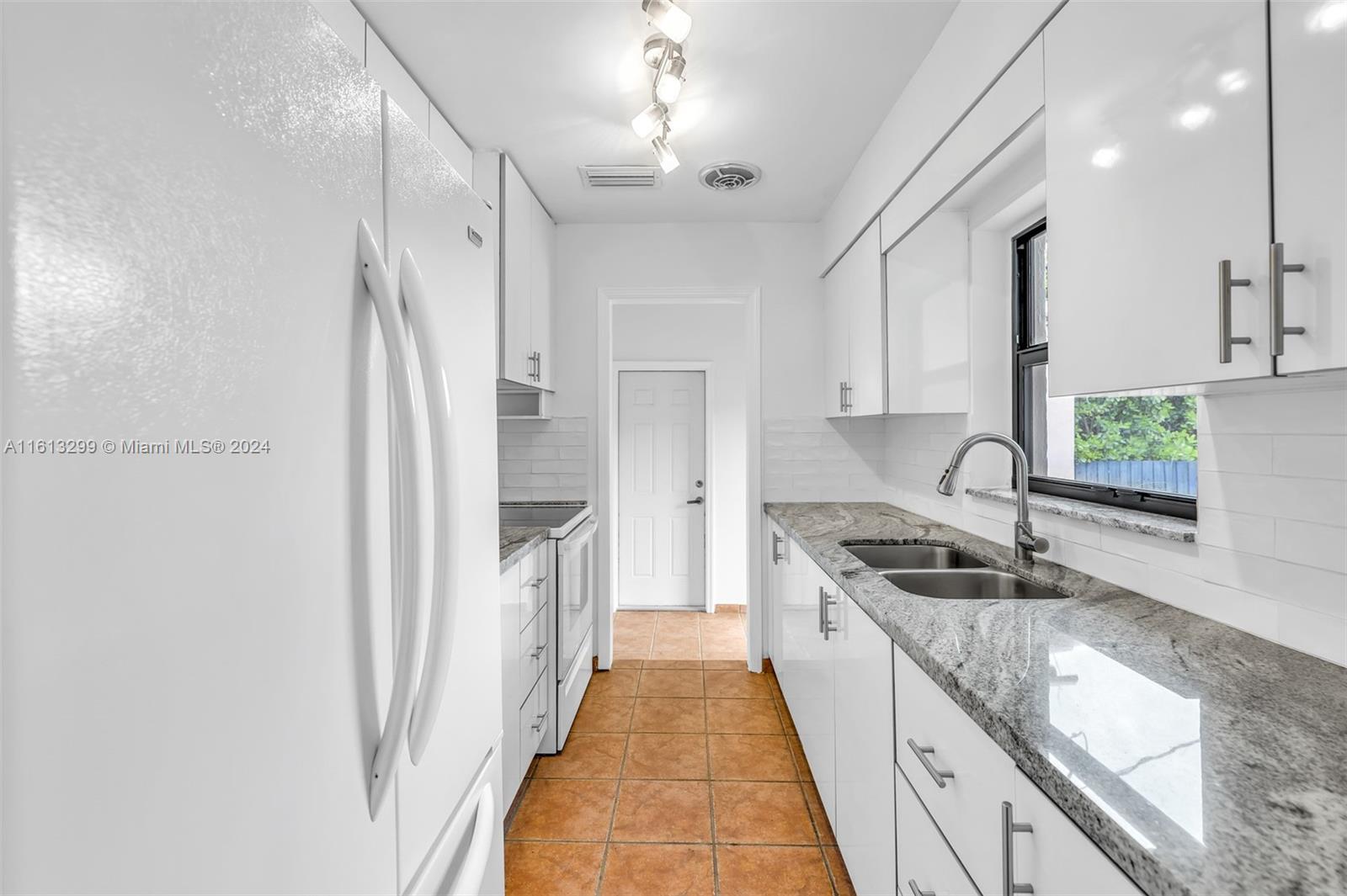 A true 1950's Miami Shores Mid Century Modern home that's been completely updated. Courtyard-front porch entrance brings you into an open concept space with windows on every wall that brightens the living room, dining room combination. Gleaming hardwood flooring throughout. The large Florida room has terrazzo floors and more windows that show off your impressive 10,200 square foot lushly landscaped yard. The modern kitchen has granite counter tops and white tile backsplash with shiny European cabinetry. The shared bathroom has an expanded shower, gorgeous tiles and a double vanity. There is a full bath in the garage, which could easily become a large primary bedroom. All updates have been made; electrical, HVAC, roof, plumbing, impact windows and doors. Walkable to downtown Miami Shores.