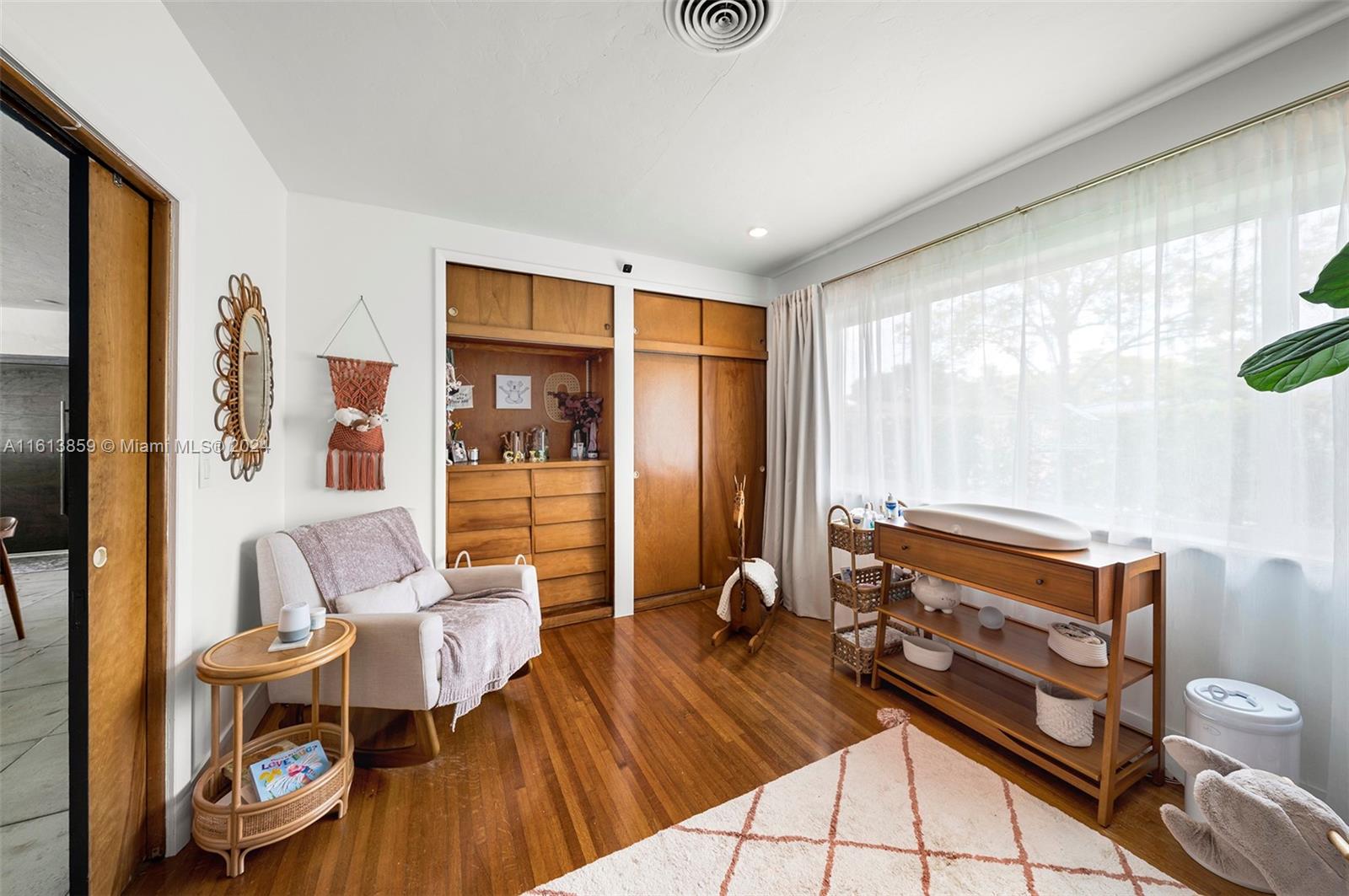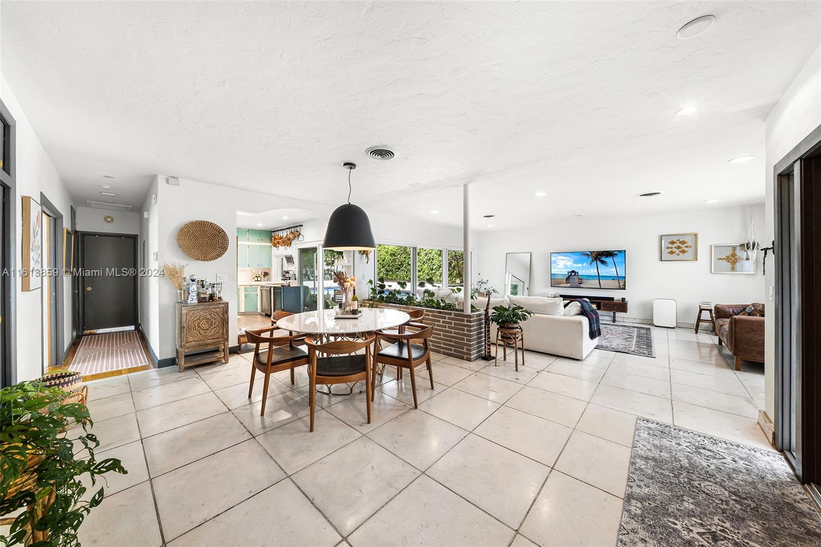 This charming three-bedroom, two-bathroom home is situated in the heart of North Miami. Its spacious layout offers inviting views of the pool and tropical landscape right from the front door. The living areas feature a blend of wood and tile flooring. The open kitchen is equipped with stainless steel appliances and a wine fridge, perfect for entertaining. This home is conveniently located near highways, public parks, Bal Harbour Shops, schools, Aventura Mall, and the Brightline station.