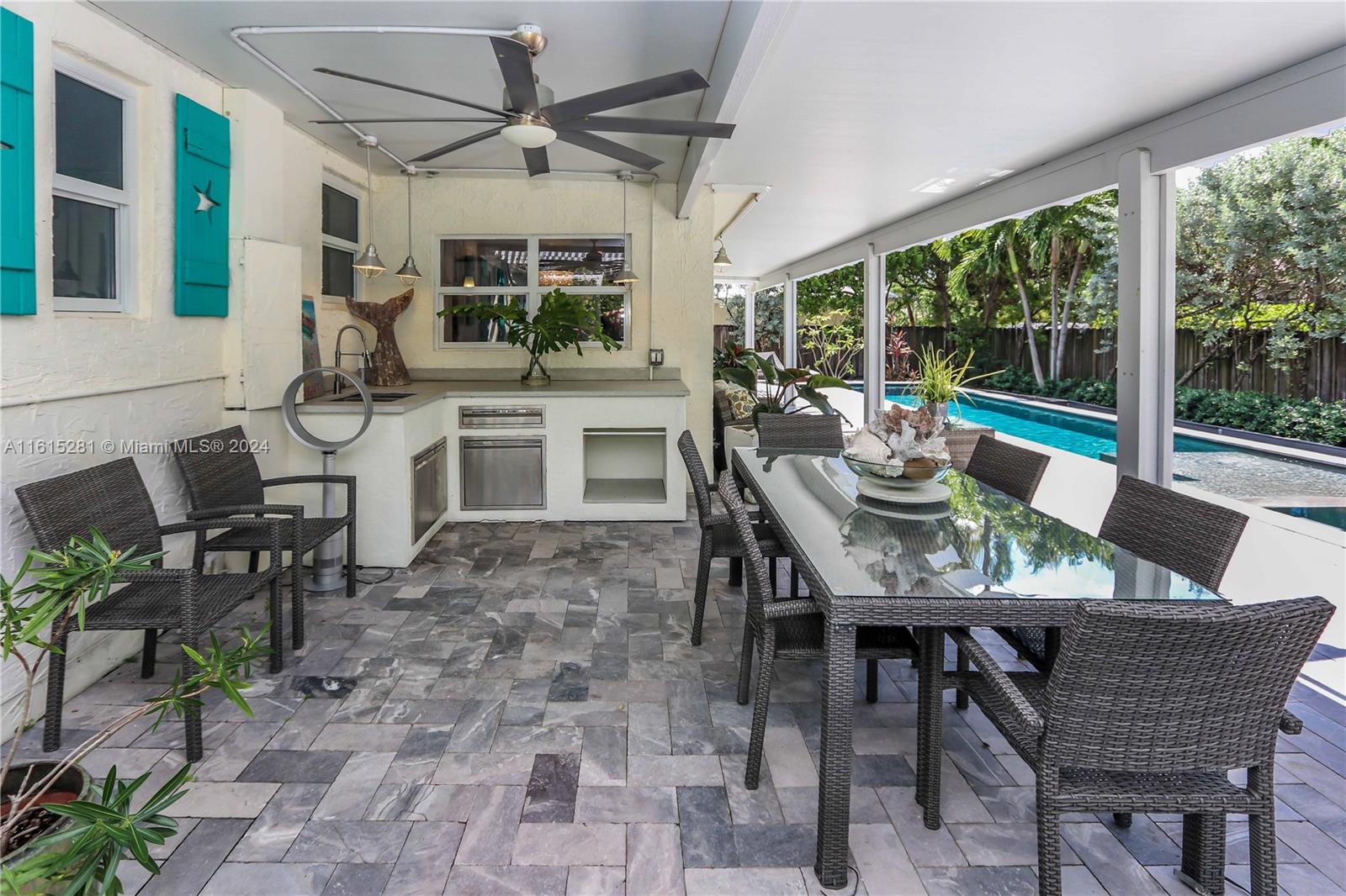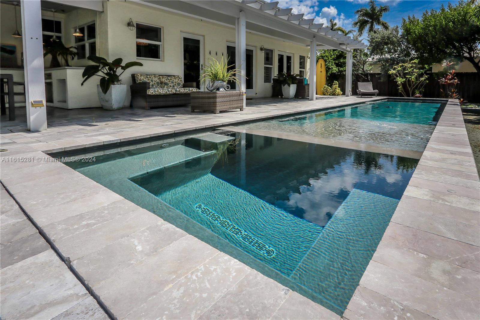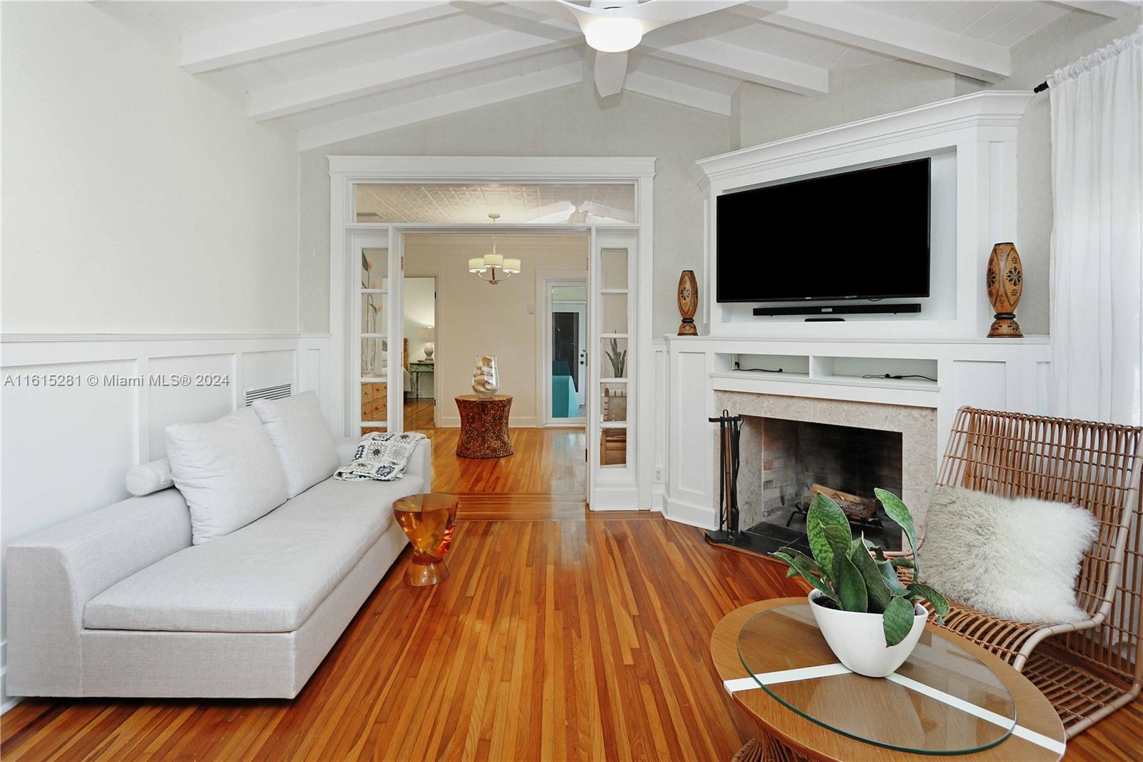Welcome to Sunshine Cottage in Hollywood Lakes!One of the most exclusive locations in Hollywood Lakes with wide streets, royal palms, and antique lighting.This home has an open-concept kitchen, lots of cabinet space, a big cooking Island with a farmer's sink, breakfast area, stainless steel appliances, a gas stove, a custom-made eating area, and a beautiful view of the pool through double doors.Vaulted ceilings, exposed wood beams, and fireplace. The primary bedroom features an open space together with a bath featuring a double sink, lots of storage cabinets, and a spacious shower with a frameless glass door. Impact windows and doors throughout! Beautiful saltwater pool, Spa, and outside shower. Cover Patio Features dining and seating area w/ outside kitchen to enjoy the outdoors living!