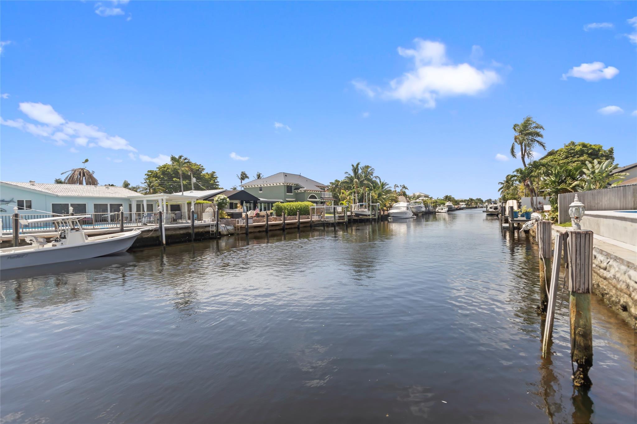 Here’s your opportunity to put your personal stamp on this waterfront home. With 4 bedrooms, 3 bathrooms, a pool, and a 2-car garage, it’s the perfect canvas for your creativity, this property offers endless possibilities. Bring your boat and enjoy easy access to the Intracoastal Waterway, navigating just one fixed bridge (Federal Highway). The fully fenced yard ensures privacy, while upstairs, the master suite, features dual walk-in closets among 2 spacious bedrooms and 1 downstairs. The kitchen is equipped with newer appliances including a dishwasher and gas stove, plus a new countertop installed just one year ago. A bonus room adjacent to the kitchen and garage provides flexible space. This home awaits your vision in a desirable and convenient location.
