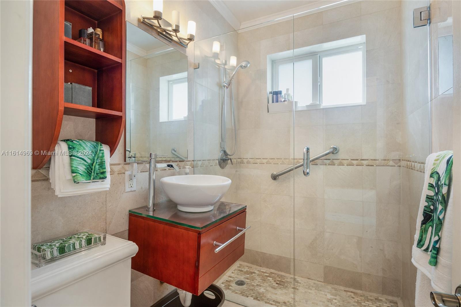 Nestled in the desirable Town of Surfside, this elegant home offers a warm welcome with inviting curb appeal. The home exudes a perfect mix of sophistication and charm and features 2 bedrooms, 2 bathrooms & a 1-car garage. The updated kitchen has wood cabinetry and stainless steel appliances and both bathrooms have been renovated. There are gleaming terrazzo floors throughout the home and tile in the kitchen and bathrooms. The hurricane impact windows provide an abundance of natural light. Step outside to the back patio and unwind in the peaceful setting of the private backyard with room for a pool. Furniture is negotiable. Walk to the beach, Surfside community center/pool, Bal Harbour Shops, the Four Seasons Surf Club & fine dining. Zoned for A-rated Bay Harbor schools. Priced to sell!