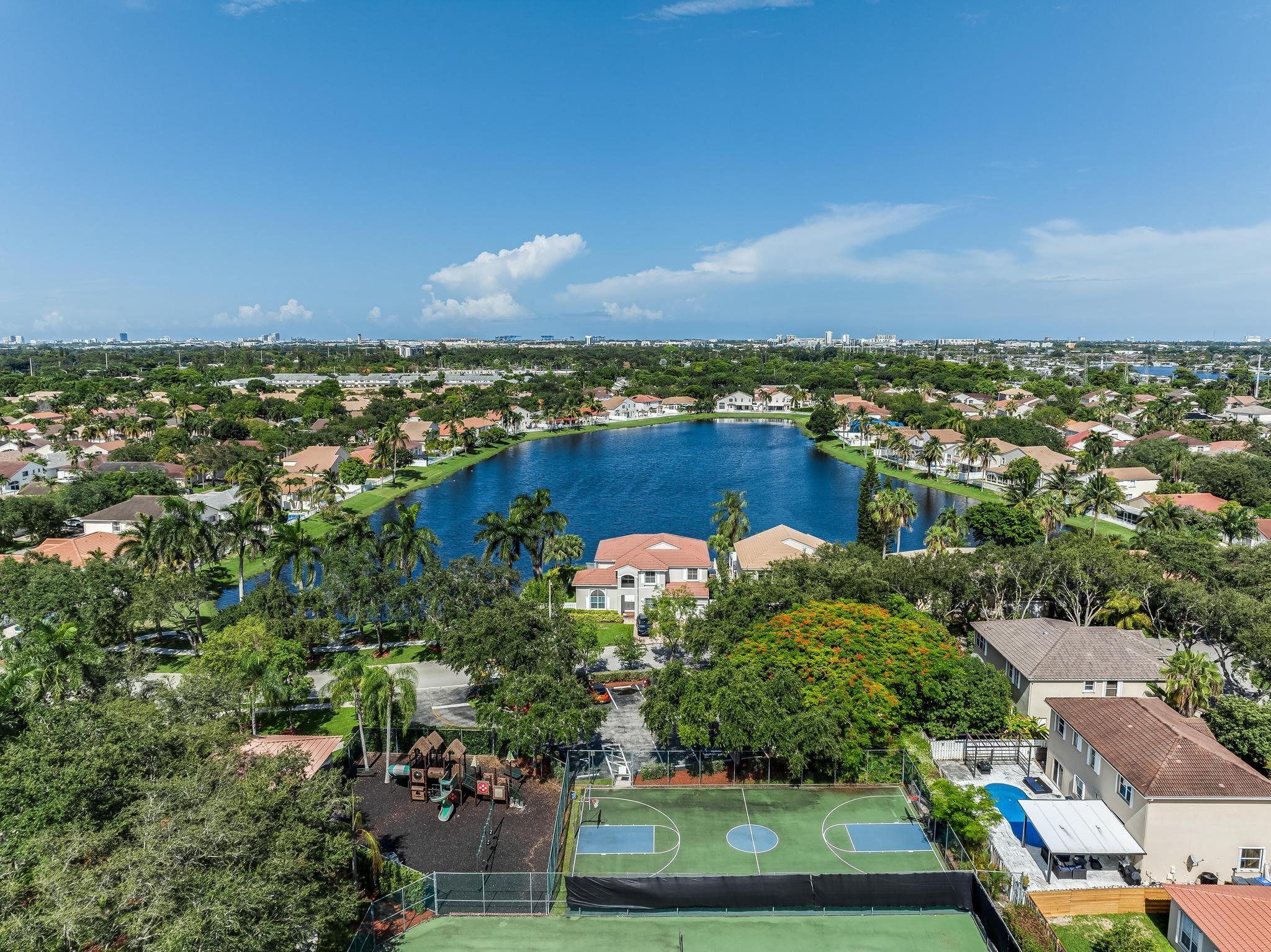 Elegant 3/2 home with 2-car garage in the desirable guard-gated community of Oakridge. Spacious layout spanning 1853 square feet with gorgeous tile and plantation shutters throughout. Step outside to discover a private back yard with patio and gorgeous PVC white fencing, offering a serene retreat for outdoor relaxation. Open kitchen with luxury stainless steel smart appliances, granite countertops, & luxurious finishes. The primary bedroom features a walk-in closet & en-suite bathroom with jacuzzi-tub & walk in shower. Centrally located community with trails, serene lake views, tennis & basketball courts, kids playground, gazebo, & parks nearby. Conveniently close to shopping, FLL Airport, beaches, Hard Rock Casino, places of worship, restaurants, major roadways, and Dania Pointe.