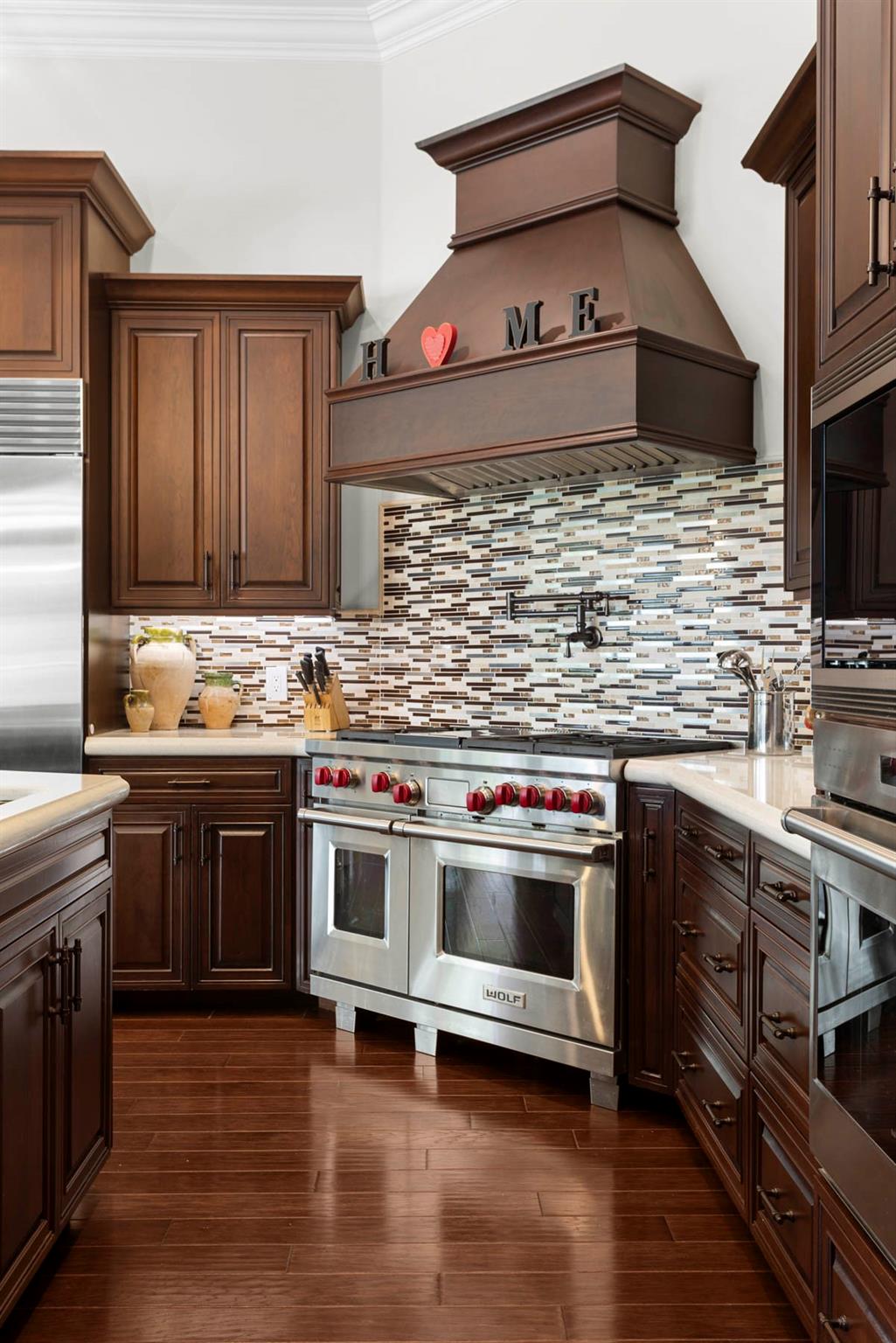 This highly sought-after home in the elegant Camelot Estates, boasting only 19 custom homes, offers over 5,600 sqft of sophistication. The interior features refined finishes, including a gourmet kitchen w butler’s pantry, 147-bottle Sub-Zero wine fridge, & an oversized island perfect for gatherings. A full wet bar complements the formal dining & living rooms. Each of the 4 bedrooms has an en suite bathroom, & additional amenities include a gym, soundproof theater room, & dedicated office. The home also offers the convenience of a 6-car garage, ideal for car enthusiasts to store collectible cars w room for a lift. Other features include 2 washer/dryer sets gazebo & summer kitchen. Custom saltwater pool overlooks a gorgeous lake. 1,000-gallon underground propane tank & much more!