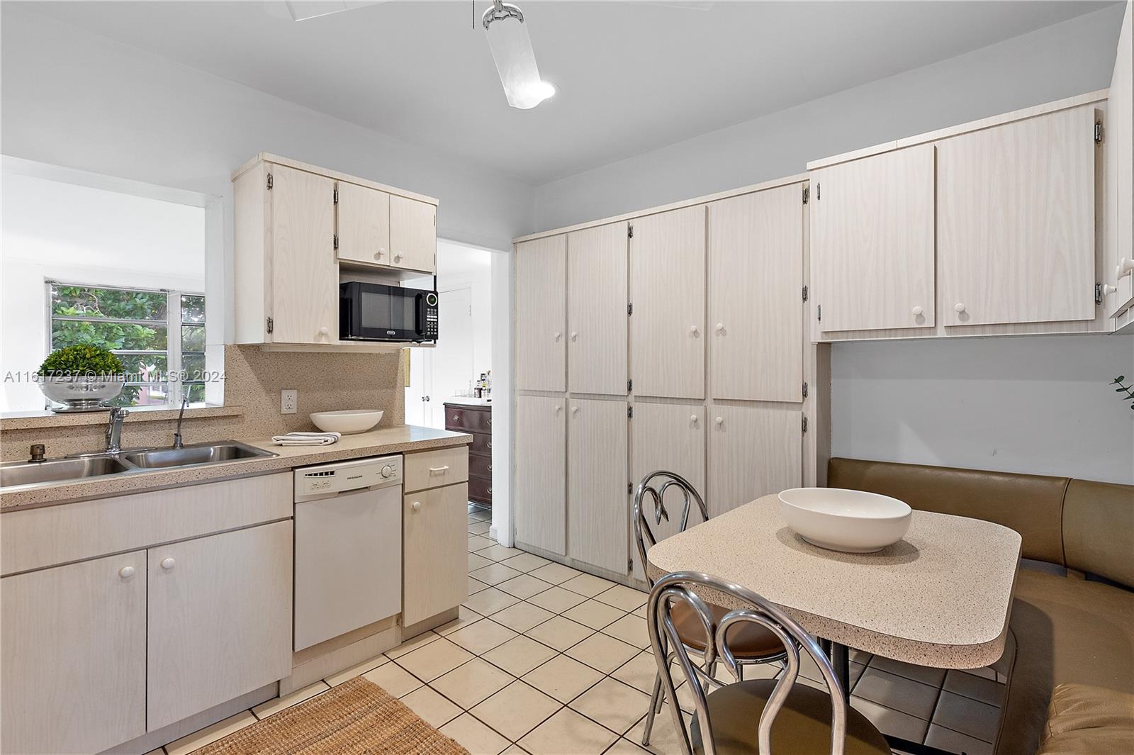 This beautiful and well maintained home, located on one of the quietest streets in hialeah, is back on the market with a price improvement! This centrally located home offers 3 bedrooms with 2 full bathrooms, living room, dining room, a true 1950s eat-in kitchen with banquet, ample Florida room, 1 car garage with overhead storage, and and additional utility/storage room. The current owners have preserved authentic midcentury details such as the original wood flooring and baseboards while enhancing the true South Florida nature of this property with an upgraded barrel tile roof and mature (50+ year old) fruit barring trees, to include mango and avocado. Includes, central heating and air, bluetooth smart lighting in all the bedrooms, accordion storm shutters, and has been freshly painted.