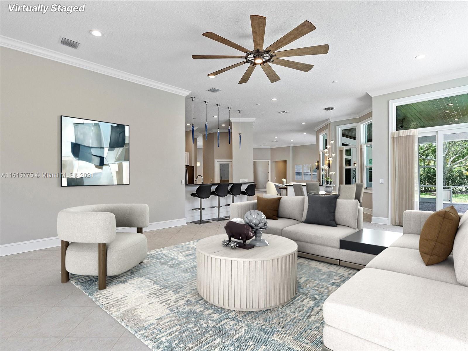 Stunning 1-story waterfront home in desirable gated community of Imagination Farms in Davie. The single-family with 5 beds/4 baths and pool, offers the perfect blend of contemporary urban living and timeless elegance. The moment you open the front door, you'll be captivated by the open floor plan, high ceilings and abundant natural light. Open kitchen with SS appliances, granite countertops & center island. Large family room and custom built-in bar with wine cooler, perfect space to entertain! Built-in closets. Tile flooring throughout living areas and carpet in bedrooms. Oversized lake front lot, screened patio with covered area and heated pool. 3-Car Garage. Impact windows & doors. ROOF & GUTTERS 2023, AC 2023, 24KW Generator. Top rated school district. Close to I75, shopping & dining.