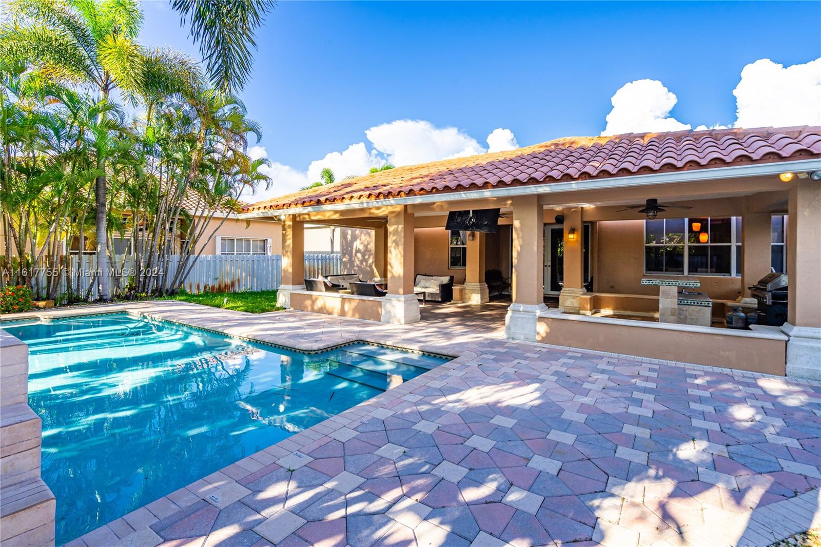 Gorgeous 5-bed, 3-bath single-story pool home situated in the exclusive Tahiti Isle Estate Homes within prestigious Nautica. Built in 1999, this Marquesas model provides 2,842 sq ft of living space on a 9,246 sq ft lot. The property includes a breathtaking pool, inviting patio, high ceilings, a 3-car garage, and ample parking. Filled with natural light, the home features an open, spacious layout. Located in one of Miramar's premier gated communities offering 24hr security, a clubhouse, gym, resort-style pool, tennis/basketball courts, and top-rated schools. The expansive backyard is perfect for outdoor activities with covered area and BBQ. Best price in the area. See broker remarks.