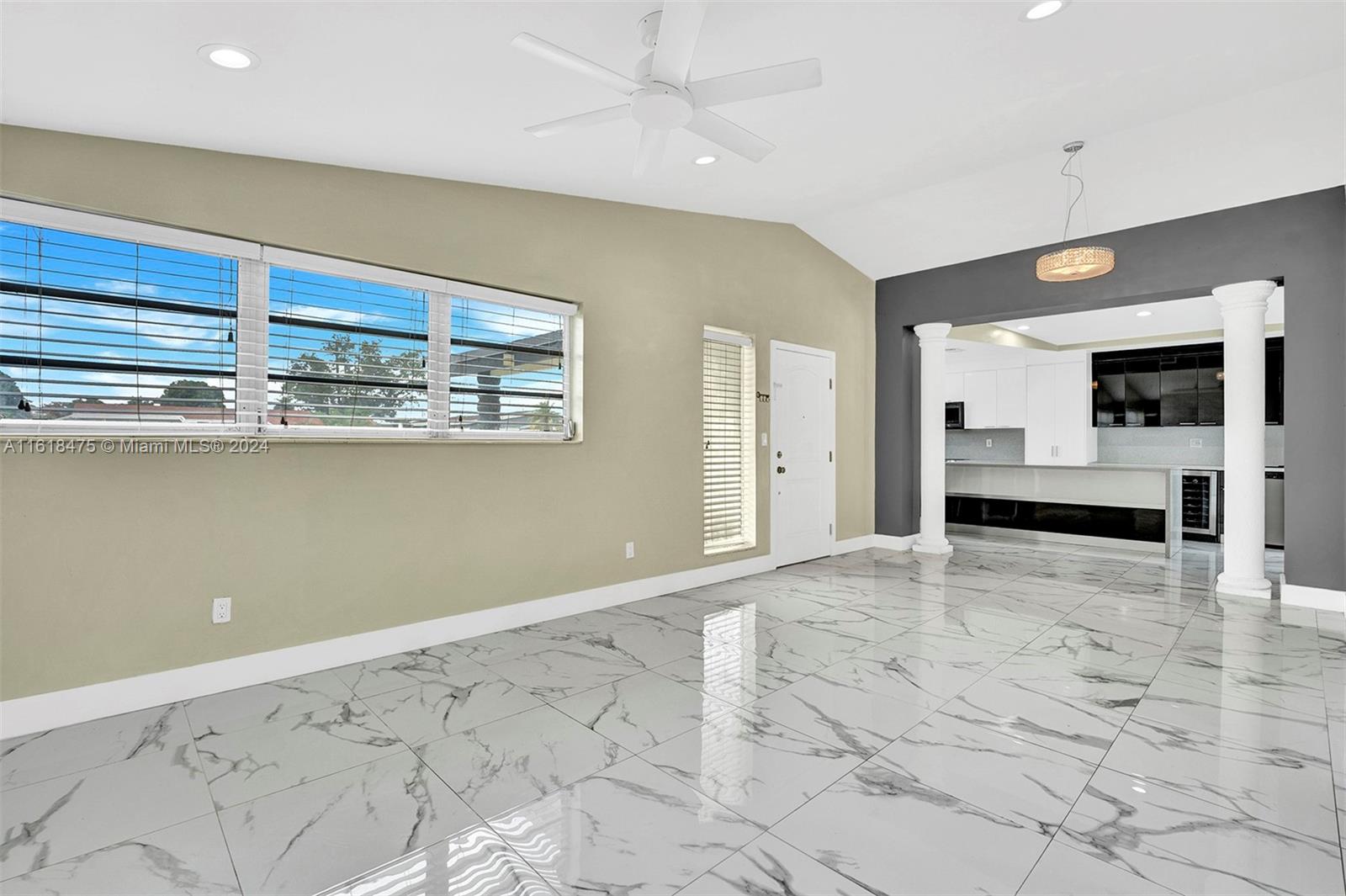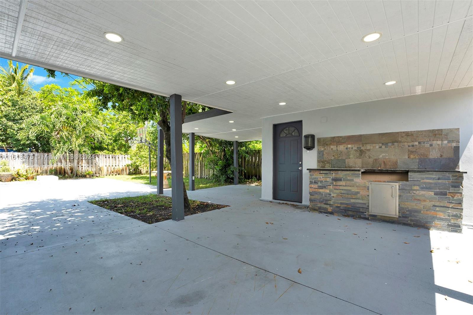 Stunning Pool Home in a desirable family -friendly neighborhood. 3 Br 2 BR- Completely updated throughout in the last few years. plus 1/1 studio that is rented for additional income. Kitchen has a Huge Quartz counter tops, custom cabinets and black stainless-steel appliances with a tap Kegerator. Both bathrooms are tastefully updated. Master bathroom has a cabana door for easy access to the pool. The master closet has a built-in cabinets. Calacatta tile floors throughout. Freshly painted, Stylish rock wall in living room & master bathroom. High vaulted ceilings, Washer & dryer inside the property. The property has hurricane shutters for protection. Large, covered patio, New roof, new AC, Pool was re-done in last 5 yrs, Large shed-for storage. Fruit trees