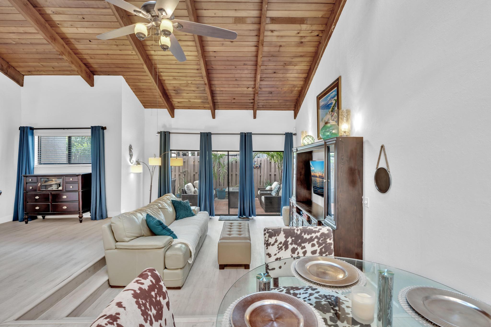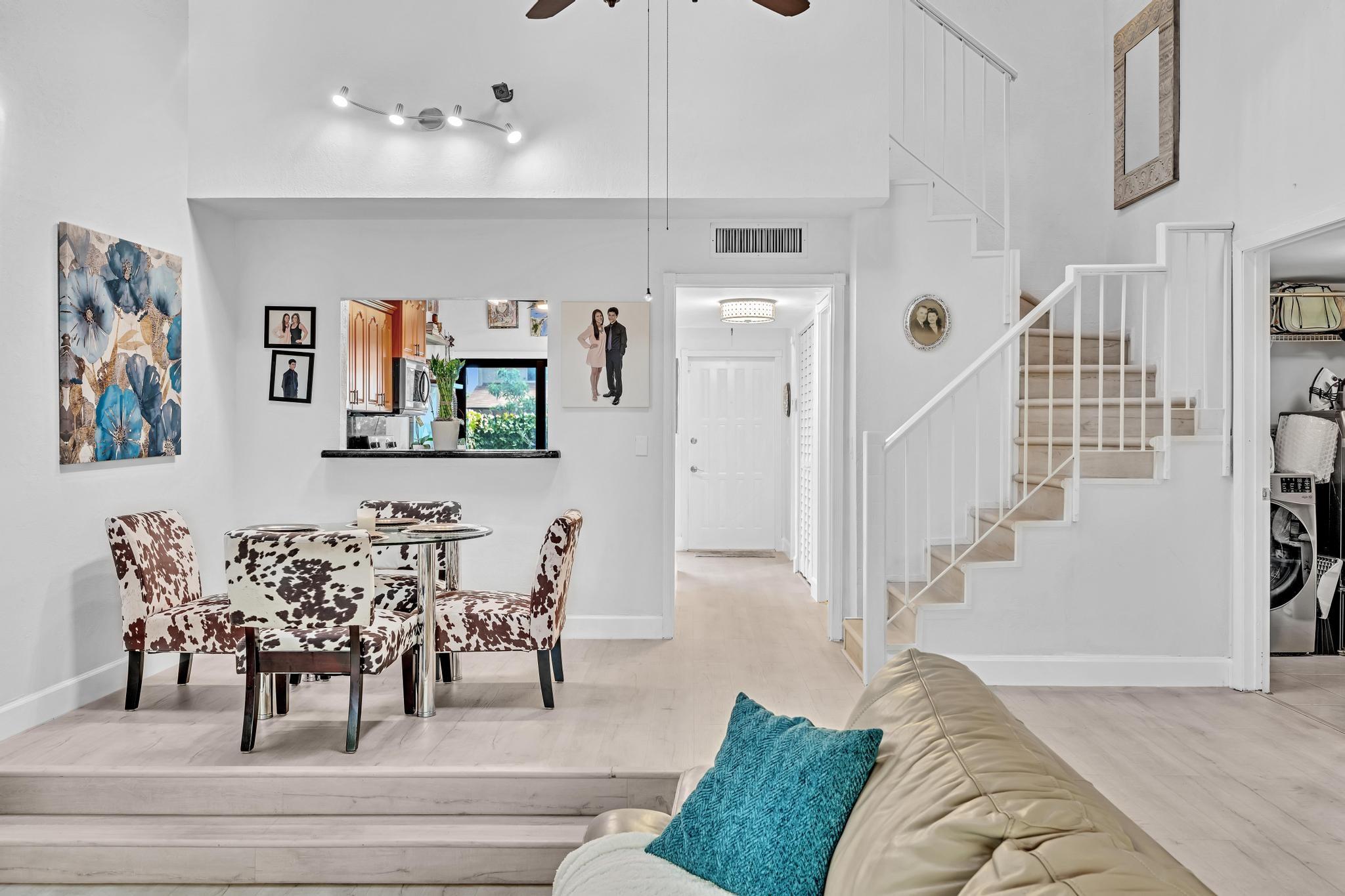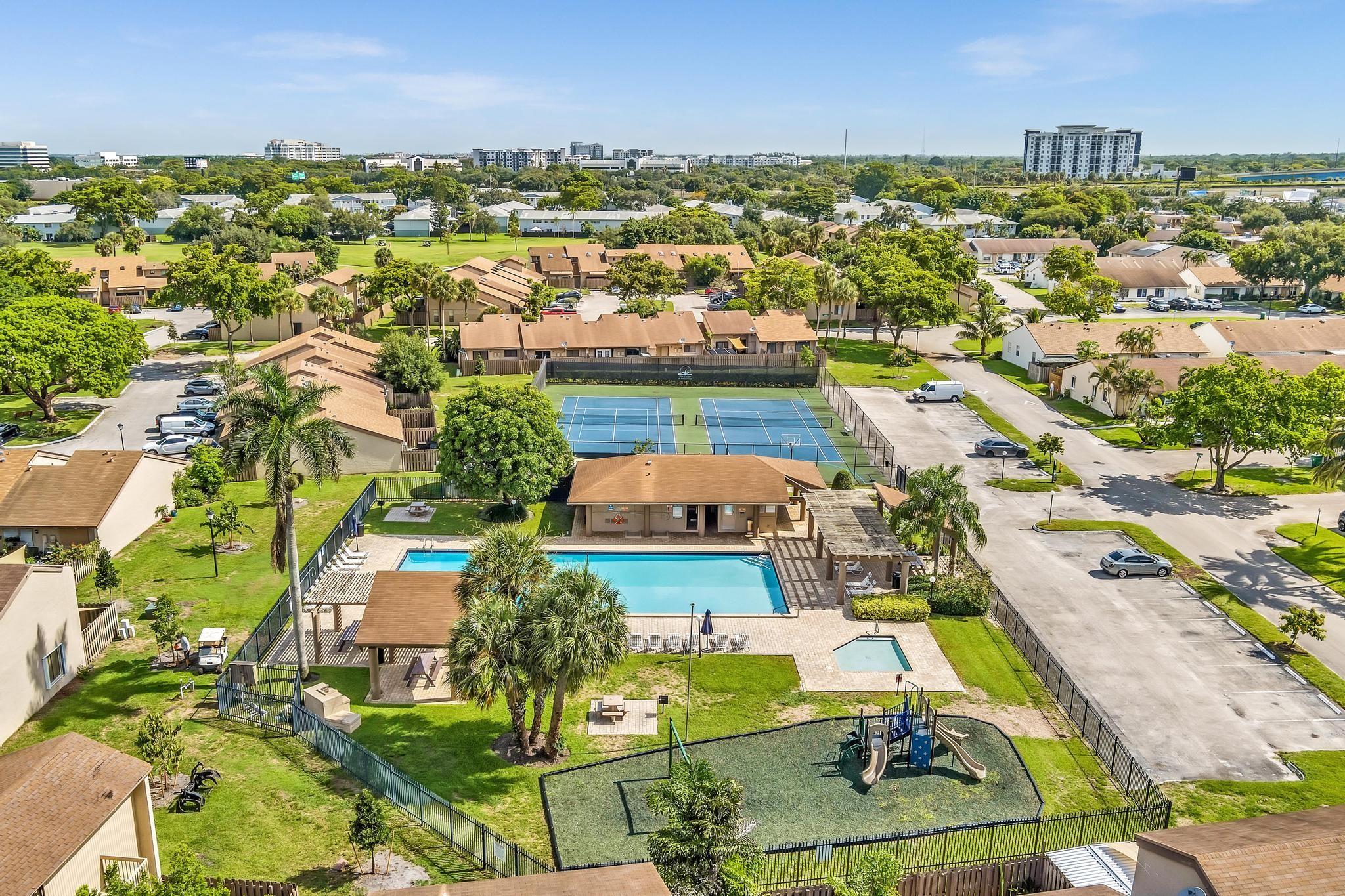Two story townhouse in the heart of Davie. Two bedrooms w/the potential to convert a cozy den into a 3rd bedroom, this offers flexible living options to suit your needs. 1st floor is perfect for entertaining, modern kitchen w/stainless appliances. Skylights provide natural light for a warm & inviting atmosphere. Upstairs the master suite with an ensuite renovated bath & ample closet space.2nd bedroom located on the 1st floor with easy access to 1st floor full bath. Highlights include 2 private fenced outdoor patio’s, ideal for relaxing or hosting bbq’s. Newer roof & hurricane protected. Community swimming pool, fitness center, a playground, tennis, basketball, pickle ball&is close to top-rated schools, shopping, dining and major highways providing easy access to everything.