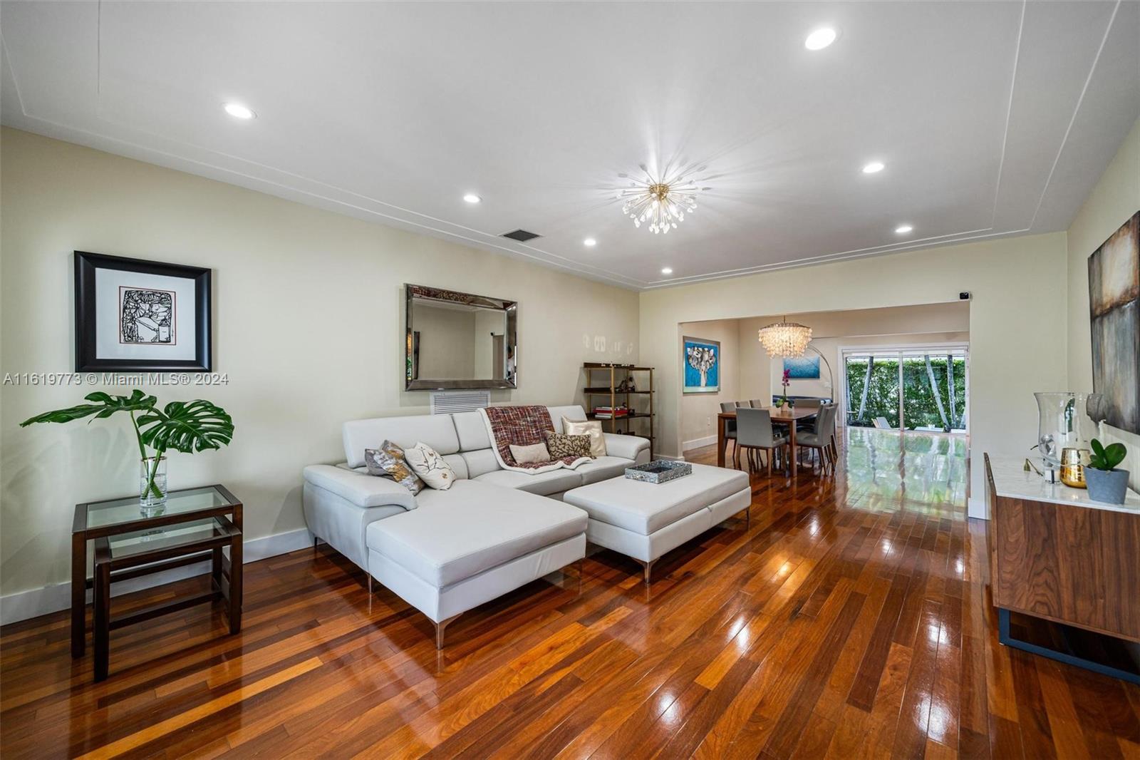 Turn key fully renovated 3/2 + two car garage Coral Gables home with amazing modern wood flooring throughout. The open concept design and flow-through space make it ideal for comfortable entertaining. Updates include impact windows and doors, beautiful picture window at the entrance. It also boasts a welcoming front porch, Spanish tile roof, tray ceilings, charming archways, remodeled bathrooms and kitchen. The kitchen features lovely subway tile, light wood cabinetry on granite countertops, and stainless steel appliances. The living and Florida rooms are spacious with large windows that allow ample natural light and garden views. Additionally, there is an huge 2-car garage and a nice sized backyard with Chicago Bricks, offering space to build a pool if desired.
