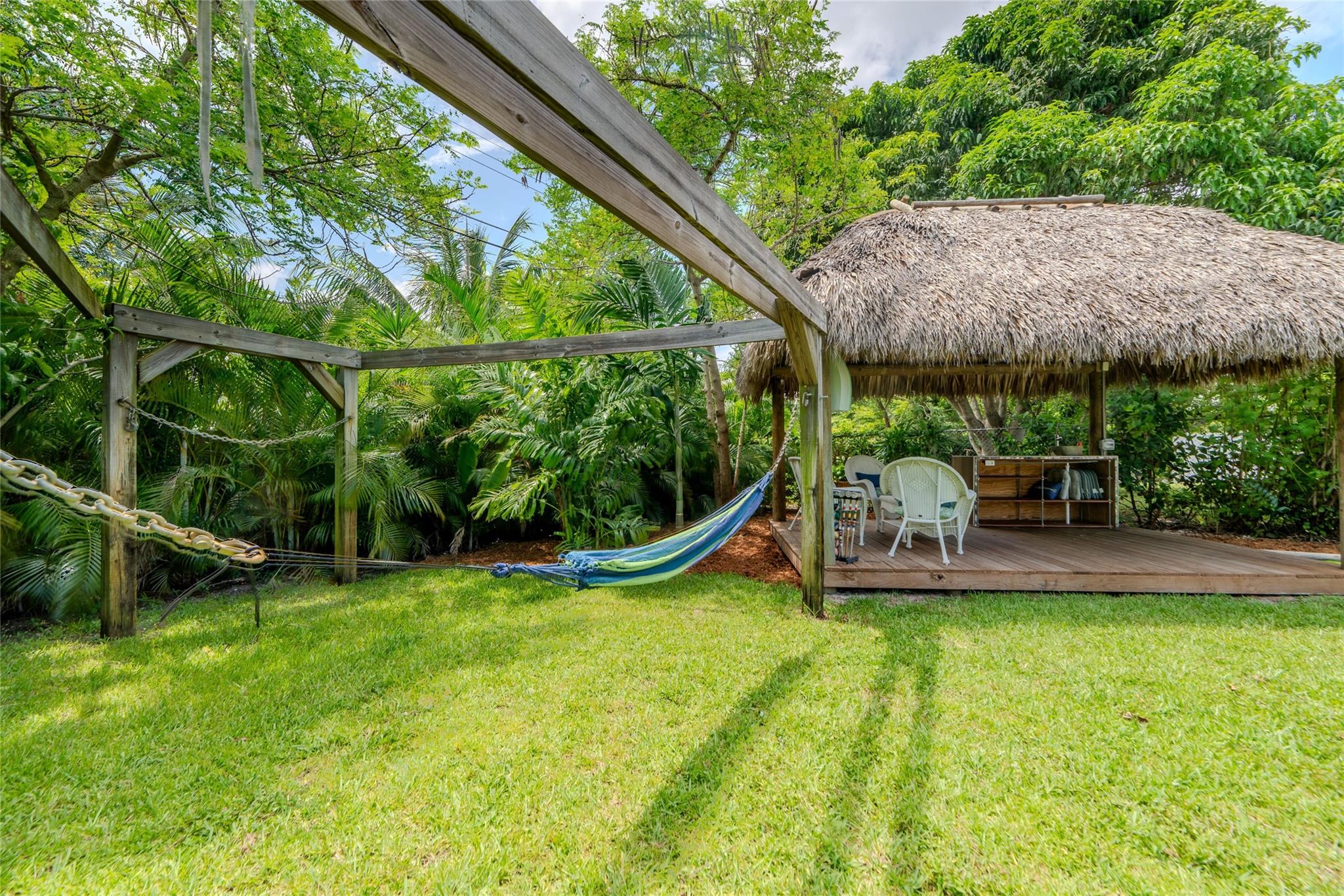Motivated Sellers! Charming, updated home offers so many features. Newer kitchen cabinetry with upgraded appliances and additional pantry units. Bathrooms have been updated. Laundry area with newer washer and dryer. Impact windows in Florida room and all exterior doors are impact doors, with newer PGT windows in remainder of home. Amazing large backyard with Tiki Hut and private outdoor shower. Well irrigation system and is on a timer. All PVC plumbing under the home. Original terrazzo floors have been polished in living areas, and vinyl plank flooring in Florida room. Close to upscale dining, shopping and beautiful Florida beaches.