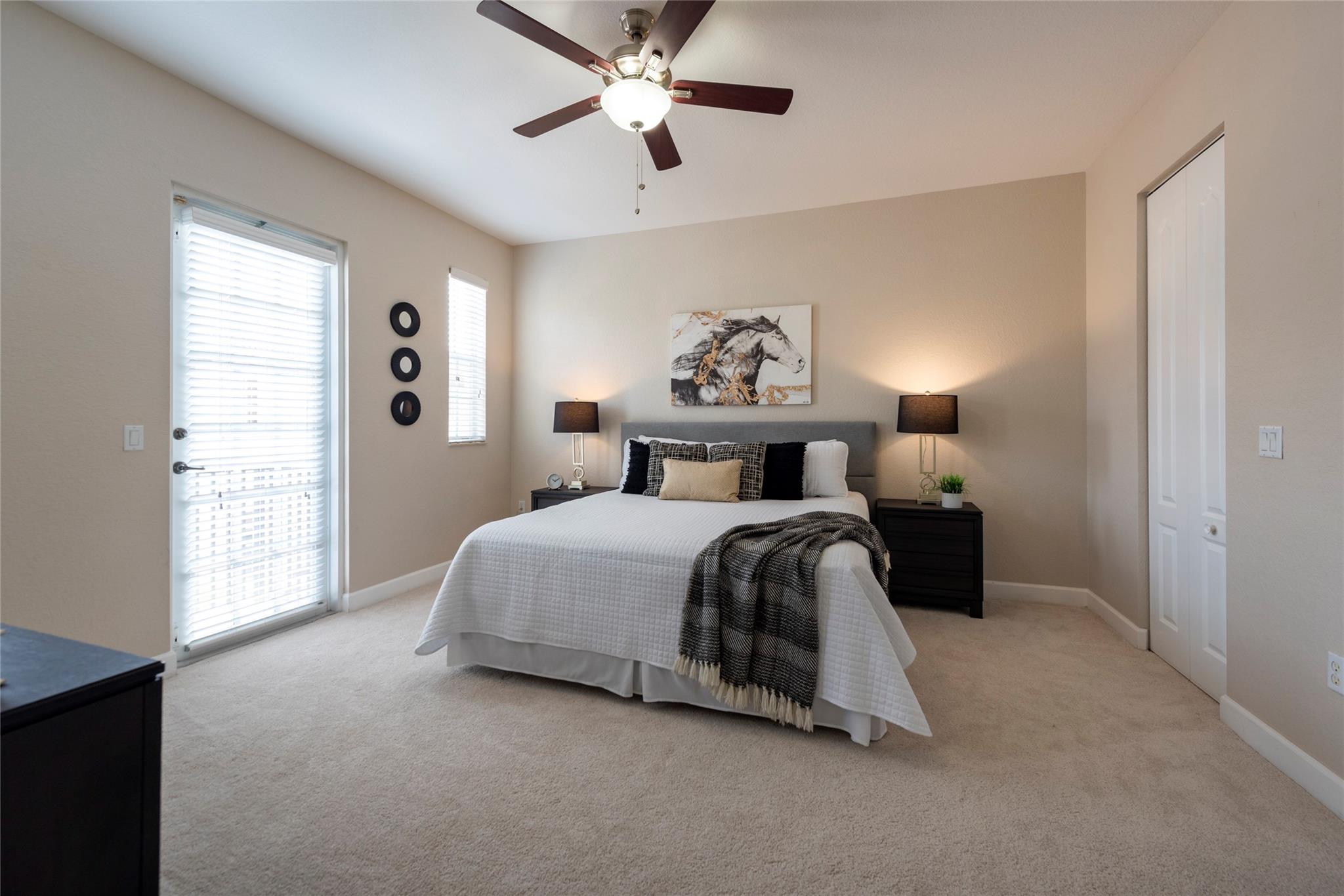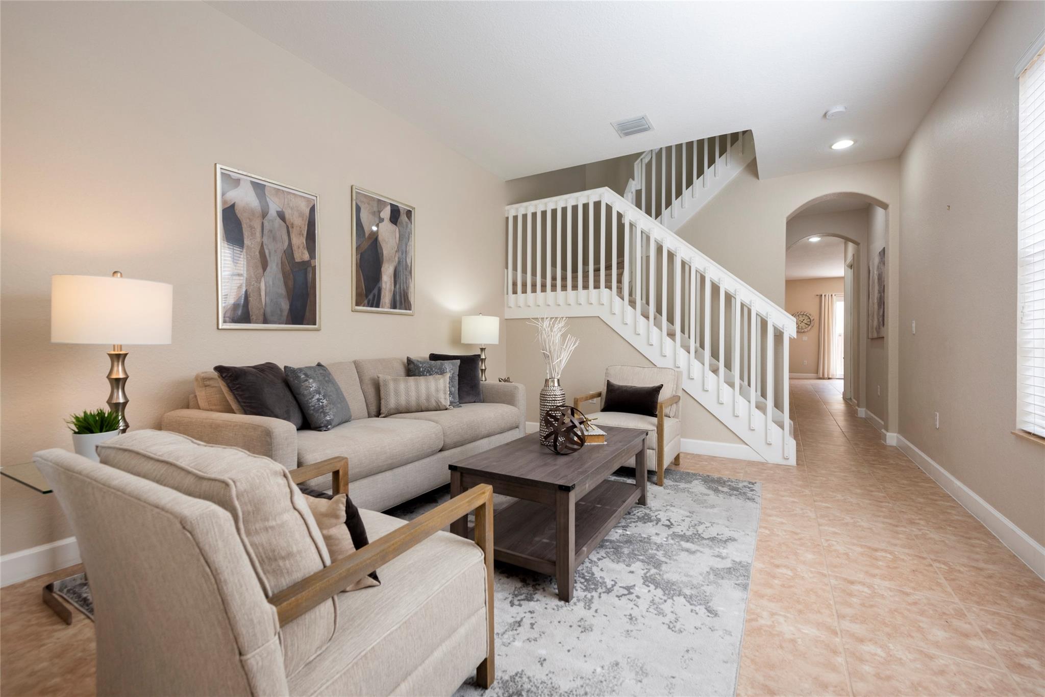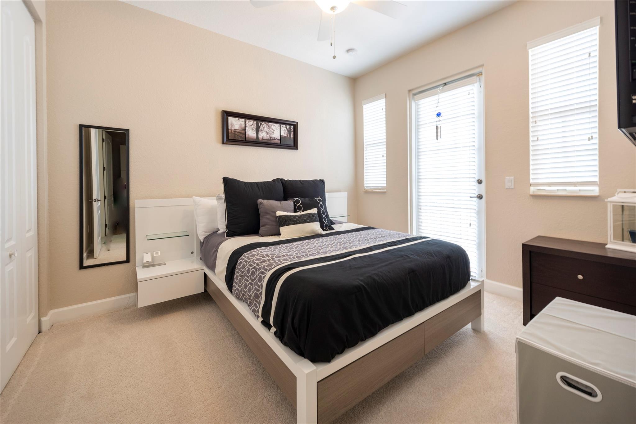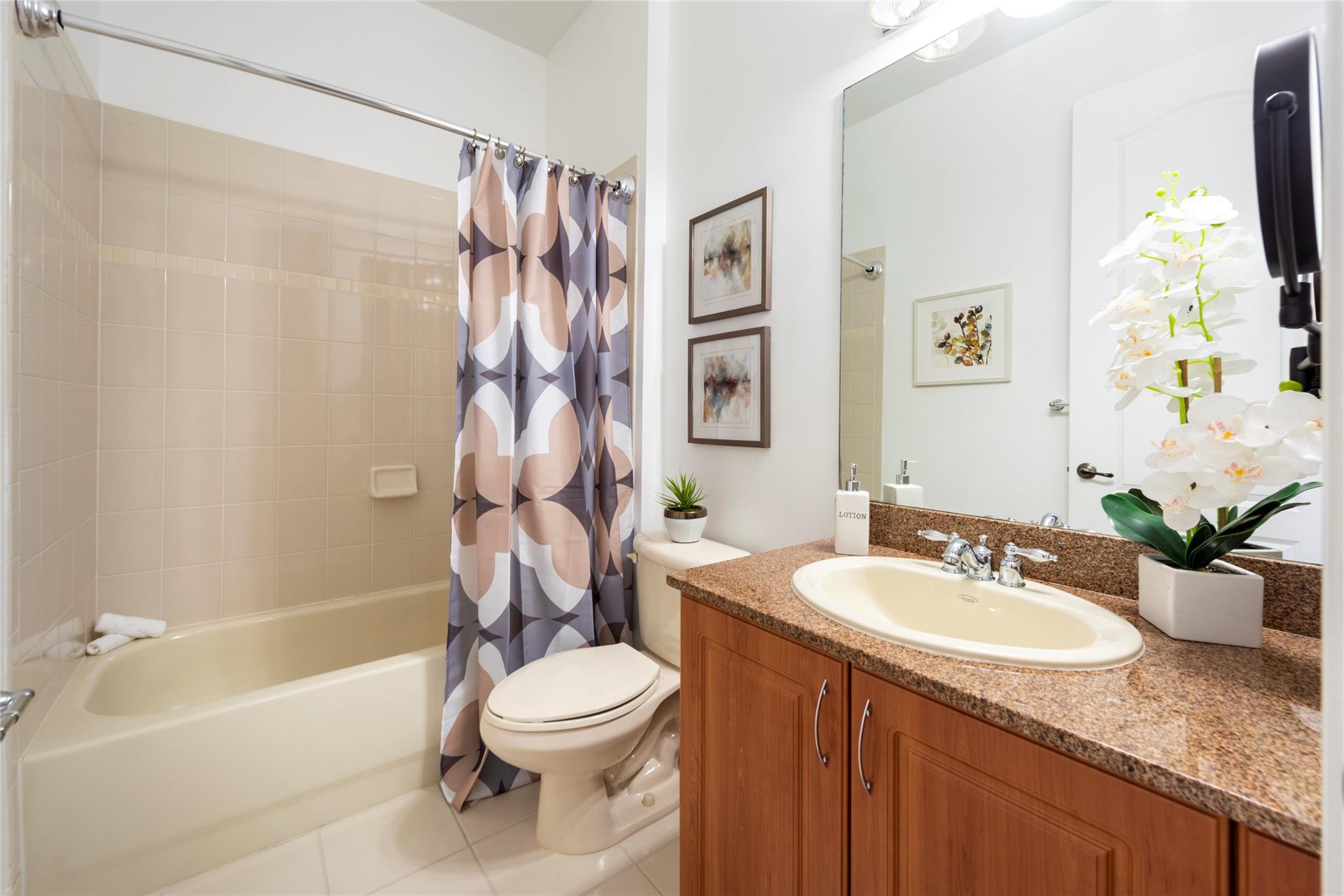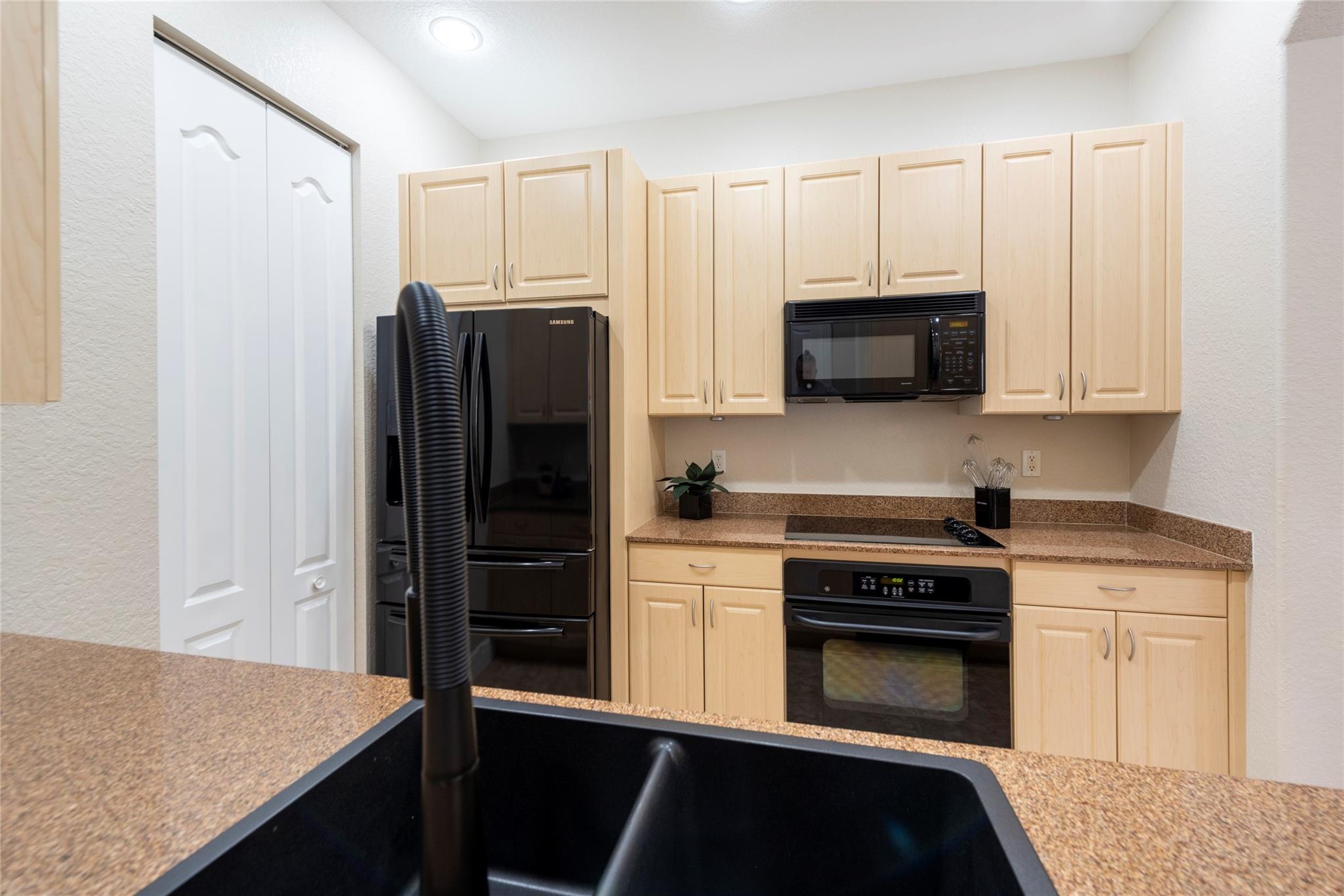 TRUE PERFECTION!! This Exquisite 3-Bed, 2.5 Bath, Laundry Room, 1-Car Garage, paver Driveway. Townhome is substantially Remodeled. Halo Touch Smart Lock Key or Keyless Entry. Granite Countertops in Kitchen with Modern Black Appliances and Fixtures. Entirely Remodeled Primary Ensuite bathroom is Absolutely Stunning with Quartz Counter tops, 24X24 porcelain floor Tiles, Dual Sinks, Touch and Sensor Pivot lights, TV with remote, Neptune Air Tub 43 Active-air micro jets, 5'x3' Shower with Rain Shower, 4 massage shower Jets, and much more! Washer and Dryer Upstairs near all bedrooms. All Bedroom balconies have Impact Doors. Huge Fenced enclosed back Patio with Tumbled marble. Community Features Gorgeous Pool, a Playground for family Fun! The HOA includes High Speed Internet + Alarm System