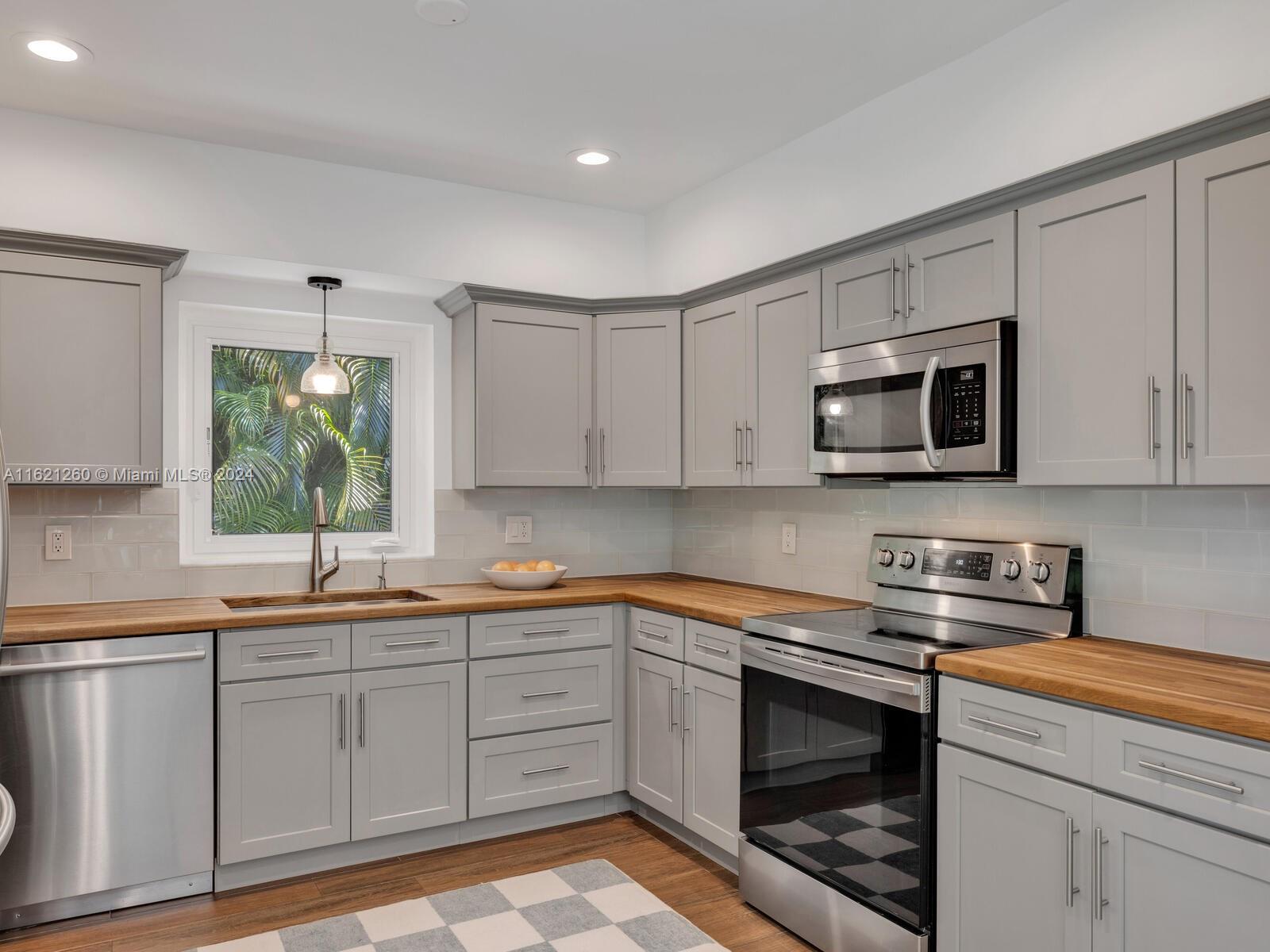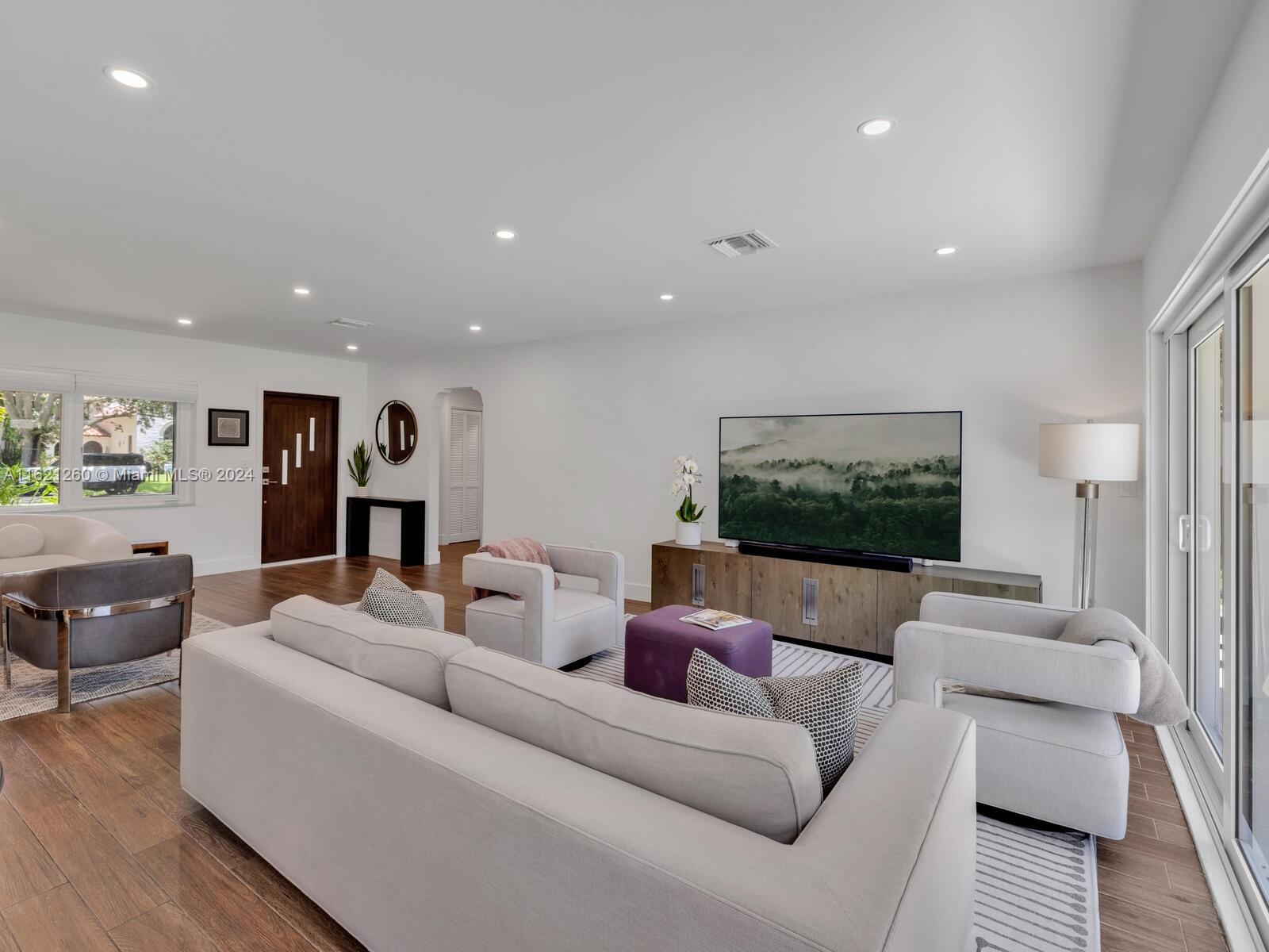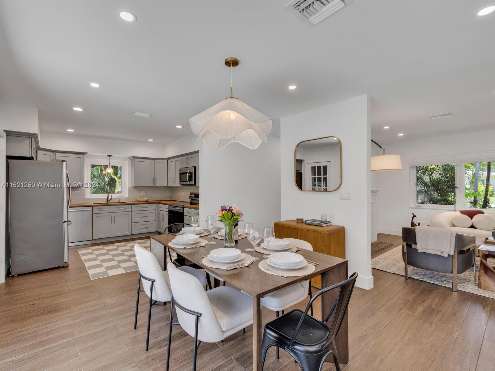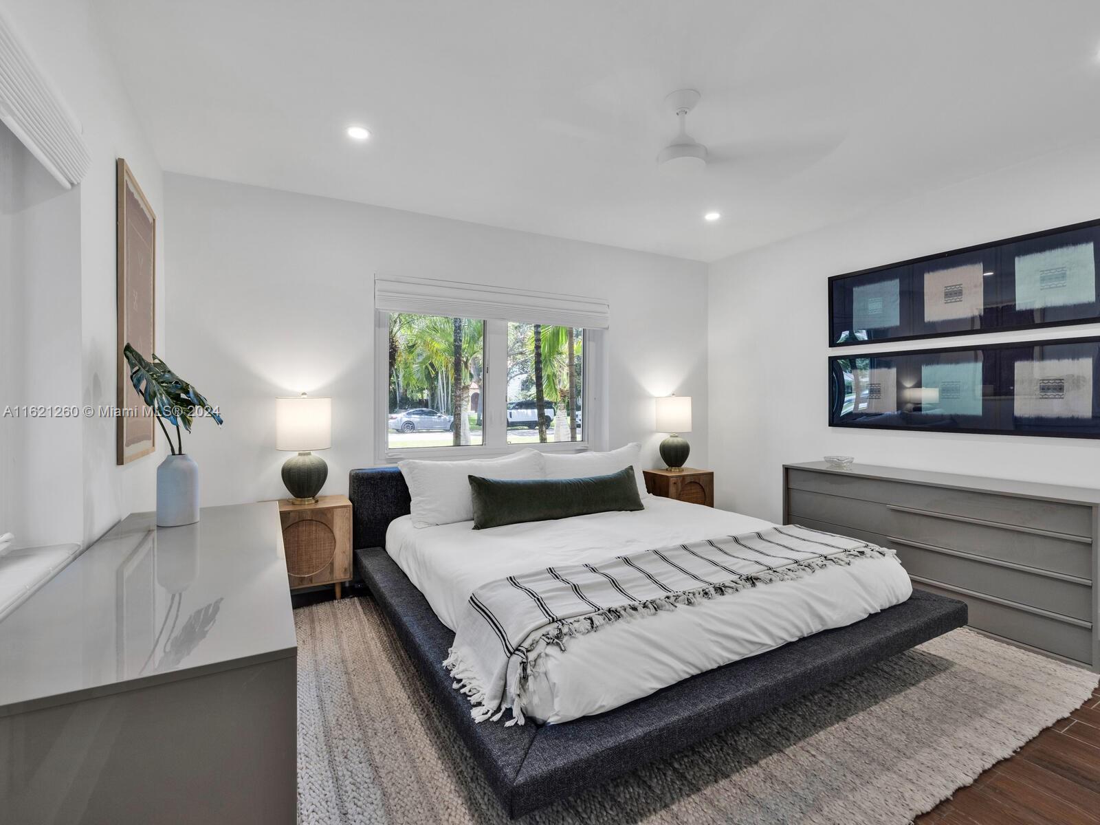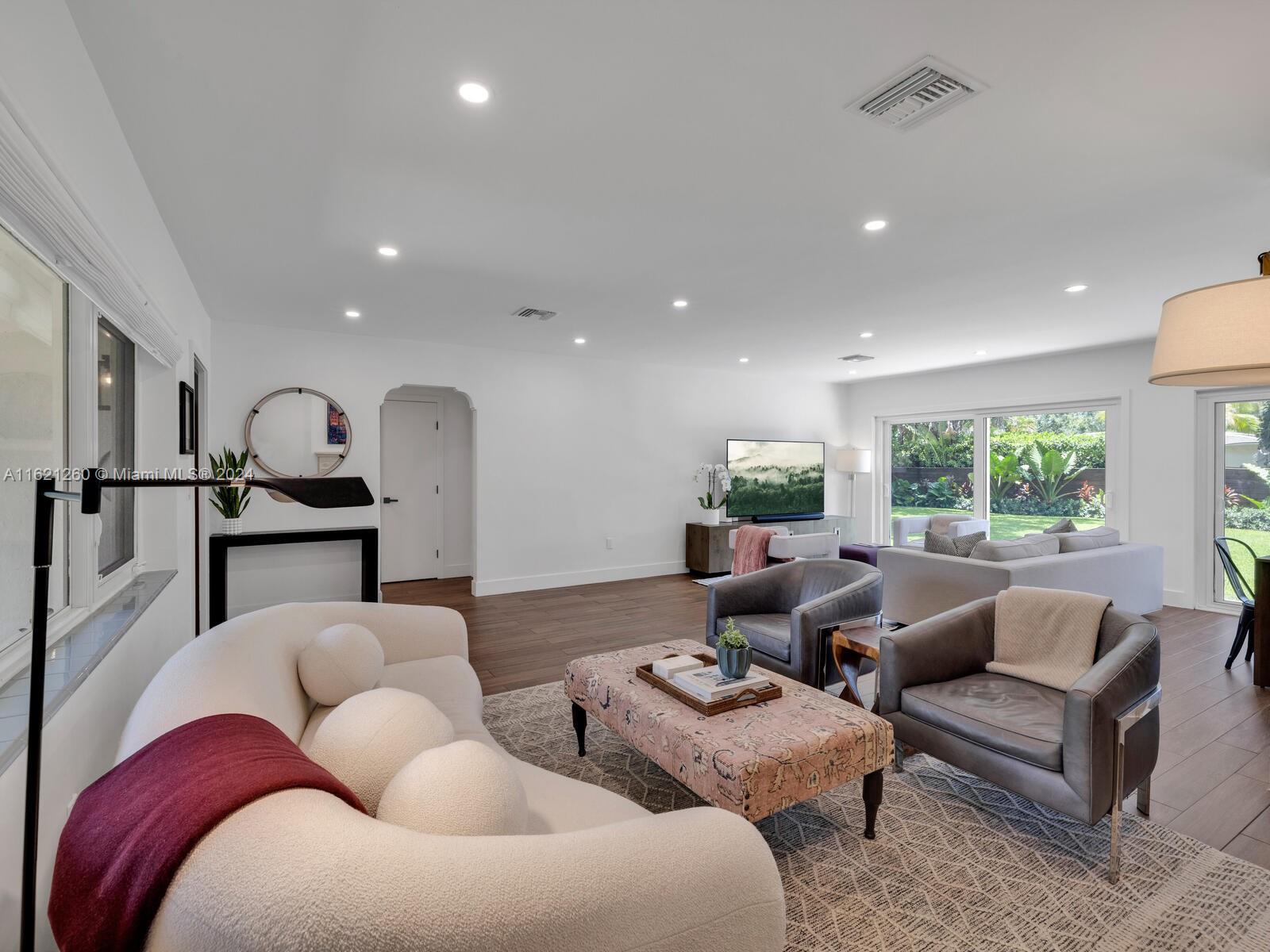 Welcome to Palm Breeze Retreat! You’ll feel right at home as gentle tropical breezes pass through the lush palm trees at this impeccably updated mid-century modern estate home on a huge 12,800 SF lot in one of Miami Shores’ most desirable enclaves. Enter into gorgeous open-flow multiple living spaces, dining and open gourmet butcher block countertop kitchen with stainless steel appliances—all opening to the newly-fenced rear gardens. Great features: impact windows-doors; updated designer baths; Hunter Douglas window treatments; vintage fireplace; porcelain plank floors; air-conditioned garage; and room for a pool and expansion. All in a non-flood zone, a few blocks to downtown Shores shops and restaurants. One visit to this “must-see” tranquil retreat and you’ll agree: this is the one!