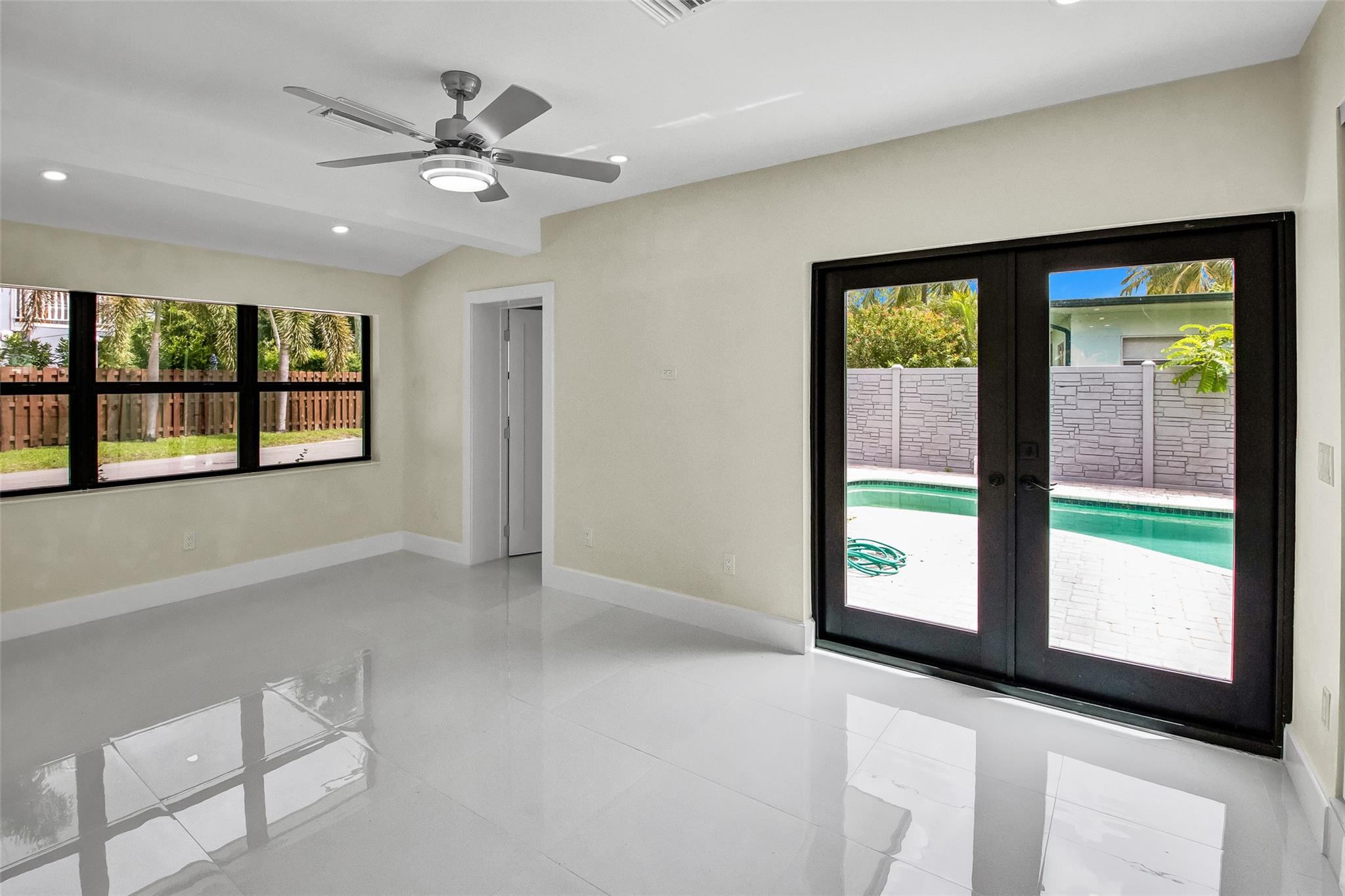 Welcome to your dream home! Nestled in a charming neighborhood only steps to the drive. This home has been fully renovated including: PVC plumbing, AC, electric, impact windows, new roof, new pool equipment and patio pavers, landscaping, & all interior cosmetic renovations. Completed within the last year! Fully Permitted. Home includes electric car charging port near the parking spaces. Open concept living area, with ample windows allowing tons of natural light! 2 Master bedrooms including en suite bathrooms, with custom built in closets. NO EXPENSE SPARED!!