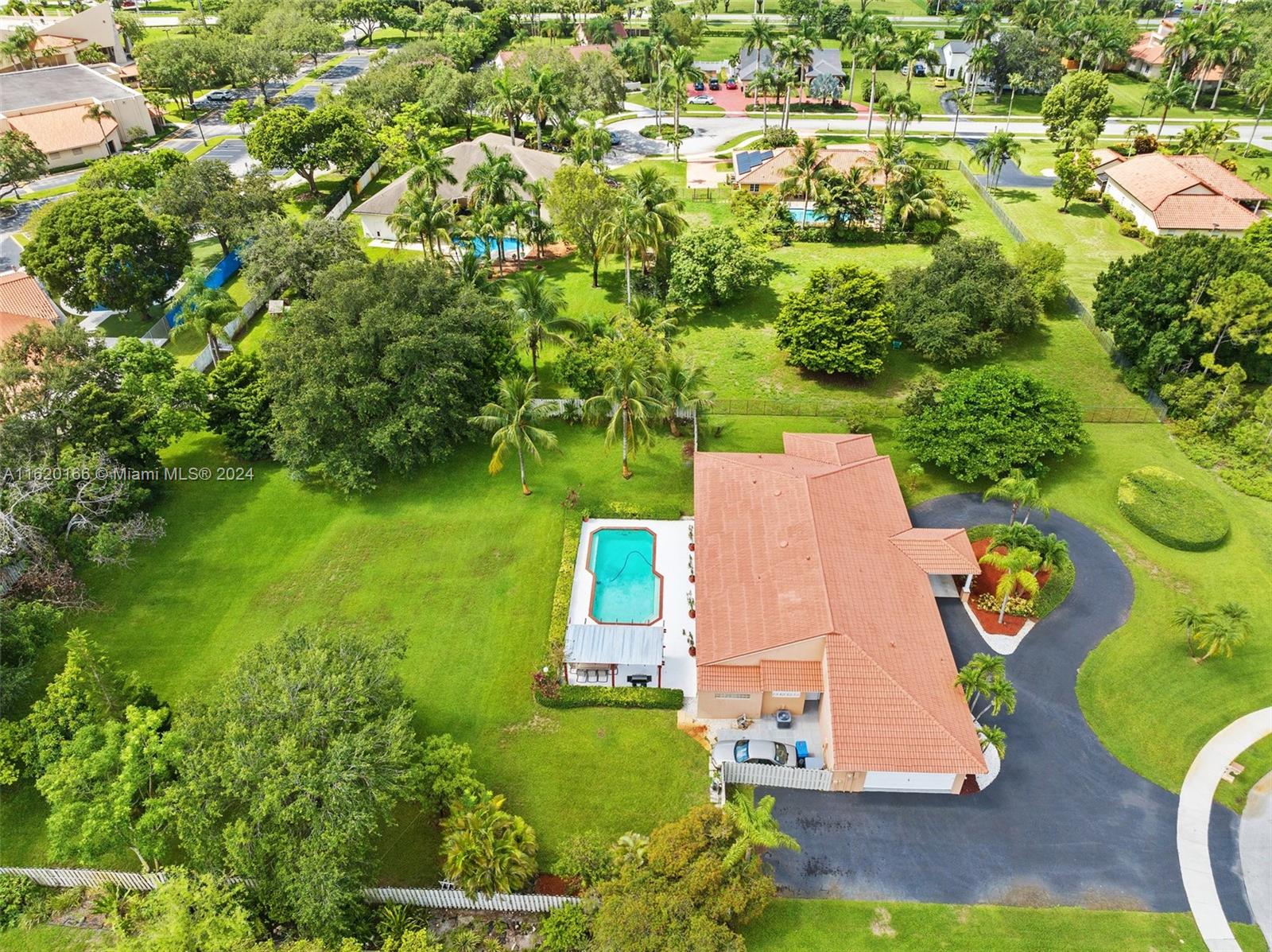 Discover this rare gem nestled in a peaceful cul-de-sac in the desirable acre homes of Shenandoah community. This 4-bedroom, 2.5-bath home offers a perfect blend of comfort, privacy, & outdoor living. The primary suite w/ample space provides a private retreat & an en-suite bathroom leading out to the pool area. Some unique features include the large well equipped open kitchen, connection between two of the bedrooms which can easily be transformed back into separate private rooms, & 2nd bathroom also a cabana bath. Outside to enjoy includes spacious covered patio, outdoor bar, sparkling pool, & a wood pergola all provide a serene spot for relaxation & outdoor dining. Located close to excellent schools, parks, and amenities. Don't miss this opportunity to own a piece of paradise in Davie.