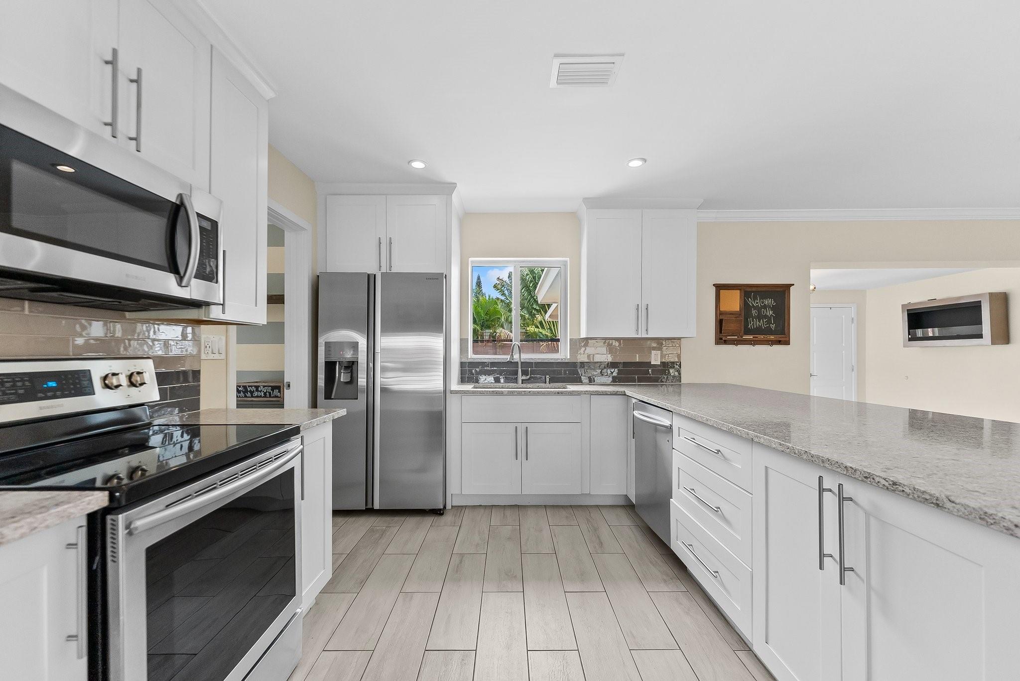 Step inside this 2-bedroom, 2-bathroom residence and discover a spacious, light-filled interior with impact windows and door throughout. The open layout seamlessly integrates the living, dining, and kitchen areas, creating an inviting space for relaxation and entertainment. Outdoors, a private sanctuary awaits, complete with an oversized jacuzzi, a rejuvenating saltwater pool with a new pump, and a newly installed fence offering ultimate privacy. The lush landscaping is meticulously maintained by the well water-fed irrigation system, adding to the allure of this turnkey home. Located in the coveted Coral Ridge Isles, this residence enjoys an excellent location with easy access to the best that Fort Lauderdale has to offer.