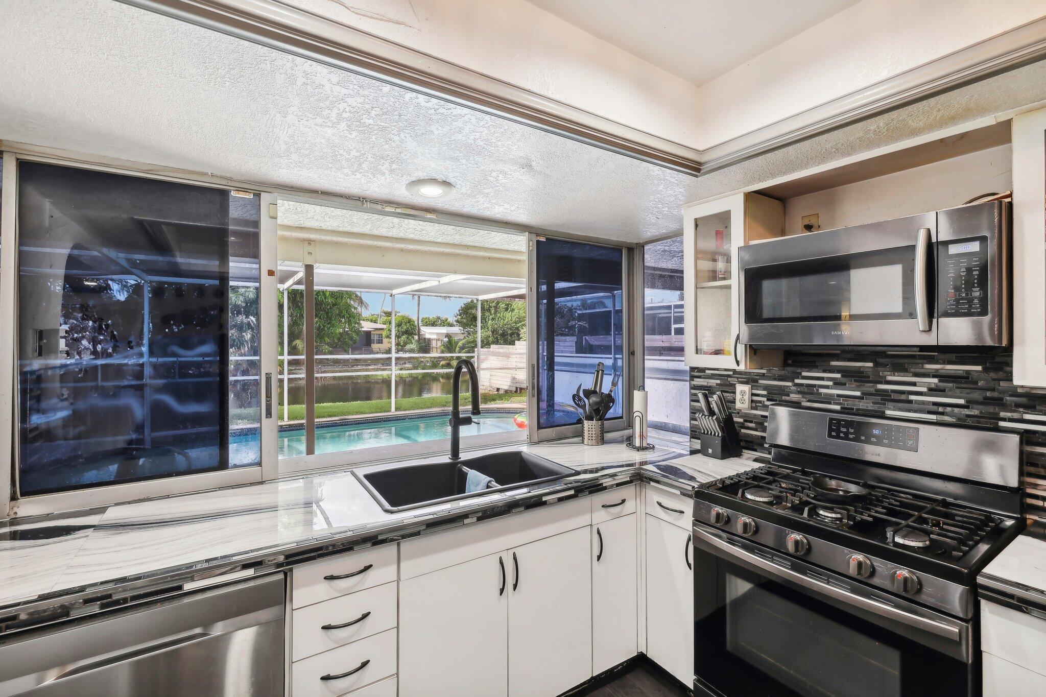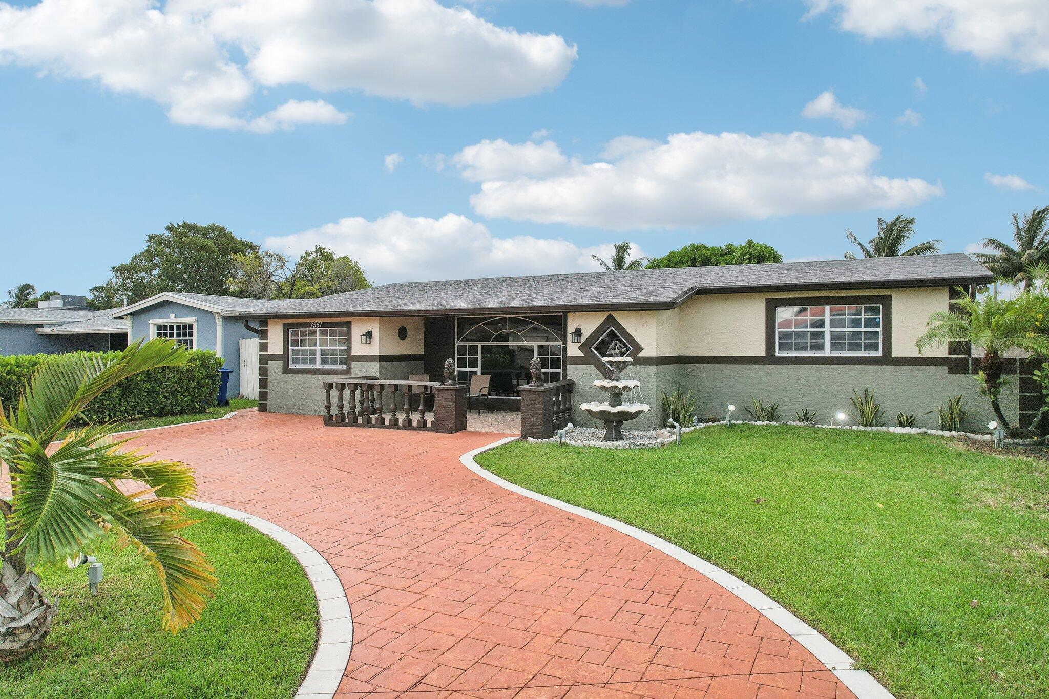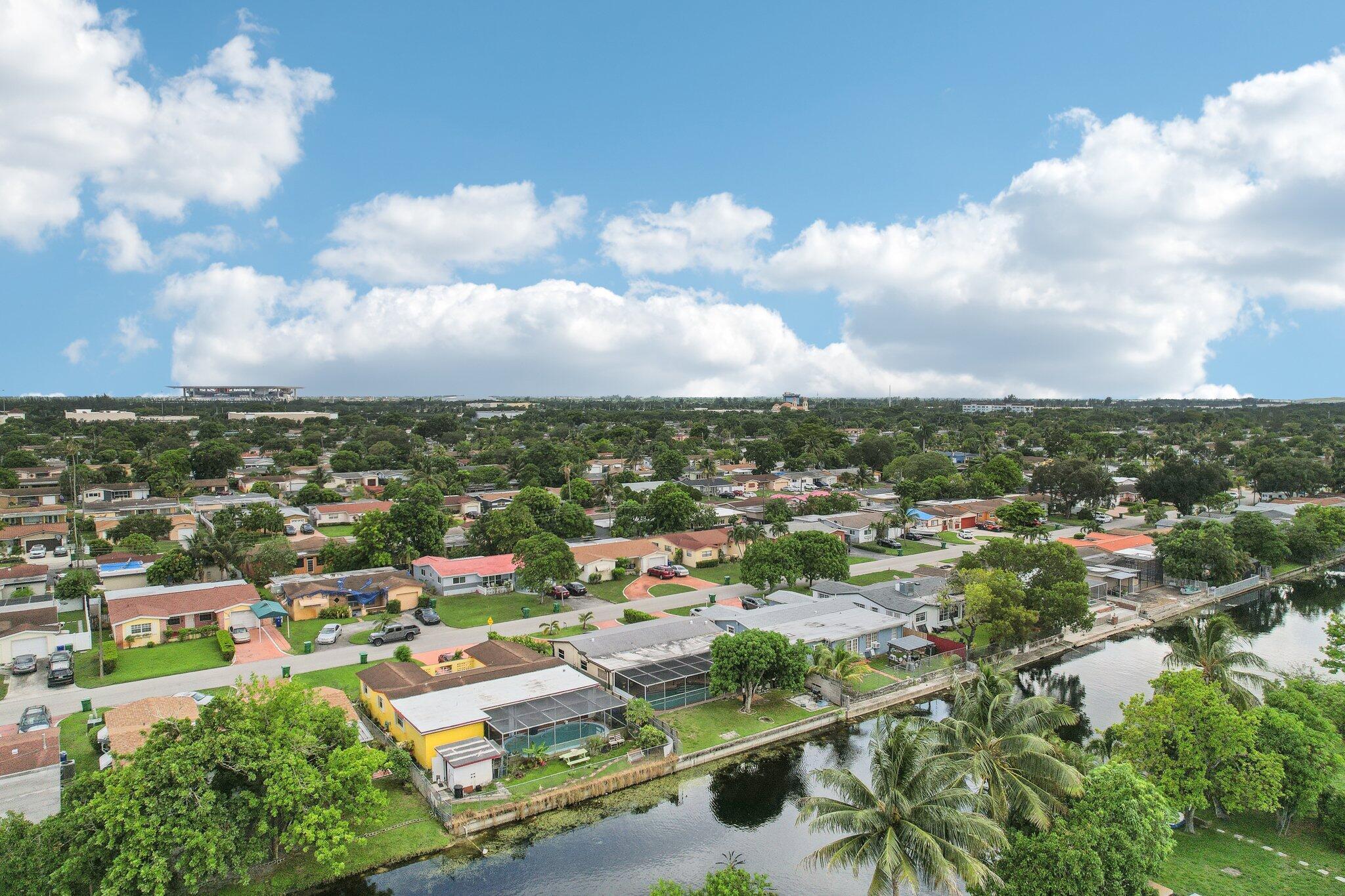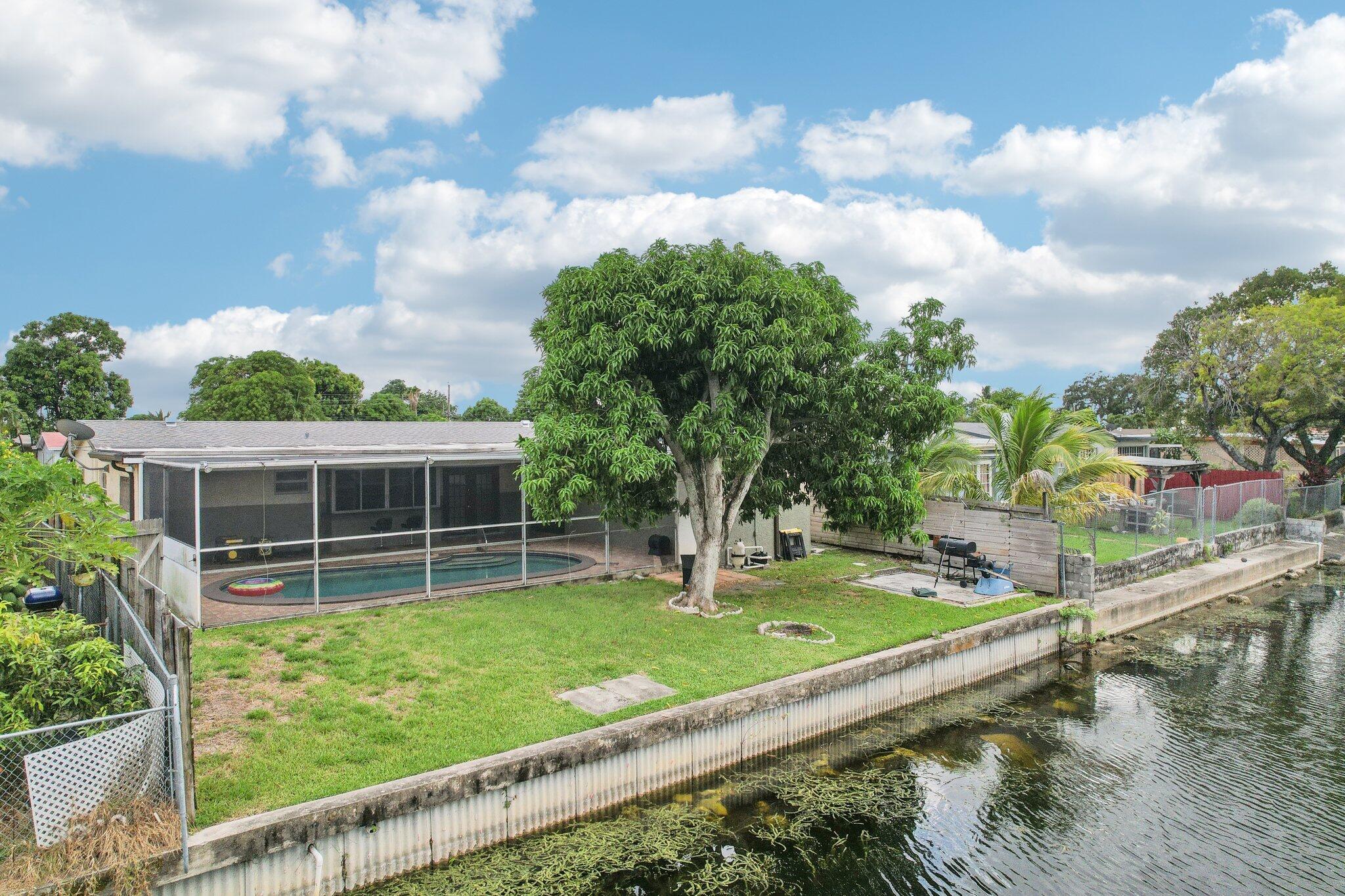 Great investment opportunity with no HOA fees, ideal for both primary residence and investment purposes. Upgraded and spacious 3-bedroom, 2-bathroom, additional office/bedroom home boasting all-tile flooring throughout. A striking large circular driveway with a fountain sets an impressive first impression. Inside, the renovated kitchen is a delight, featuring a window that opens to the expansive screened-in pool patio area with water/canal view. The split floor plan features a spacious master bedroom with a walk-in closet and a master bathroom complete with a double sink. Recently transformed with proper permits, the garage now serves as a family room area, that may be converted into an efficiency. Close to the Hard Rock Stadium, Hard Rock Hotel and Casino, and Turnpike. Sold ''As is'' .