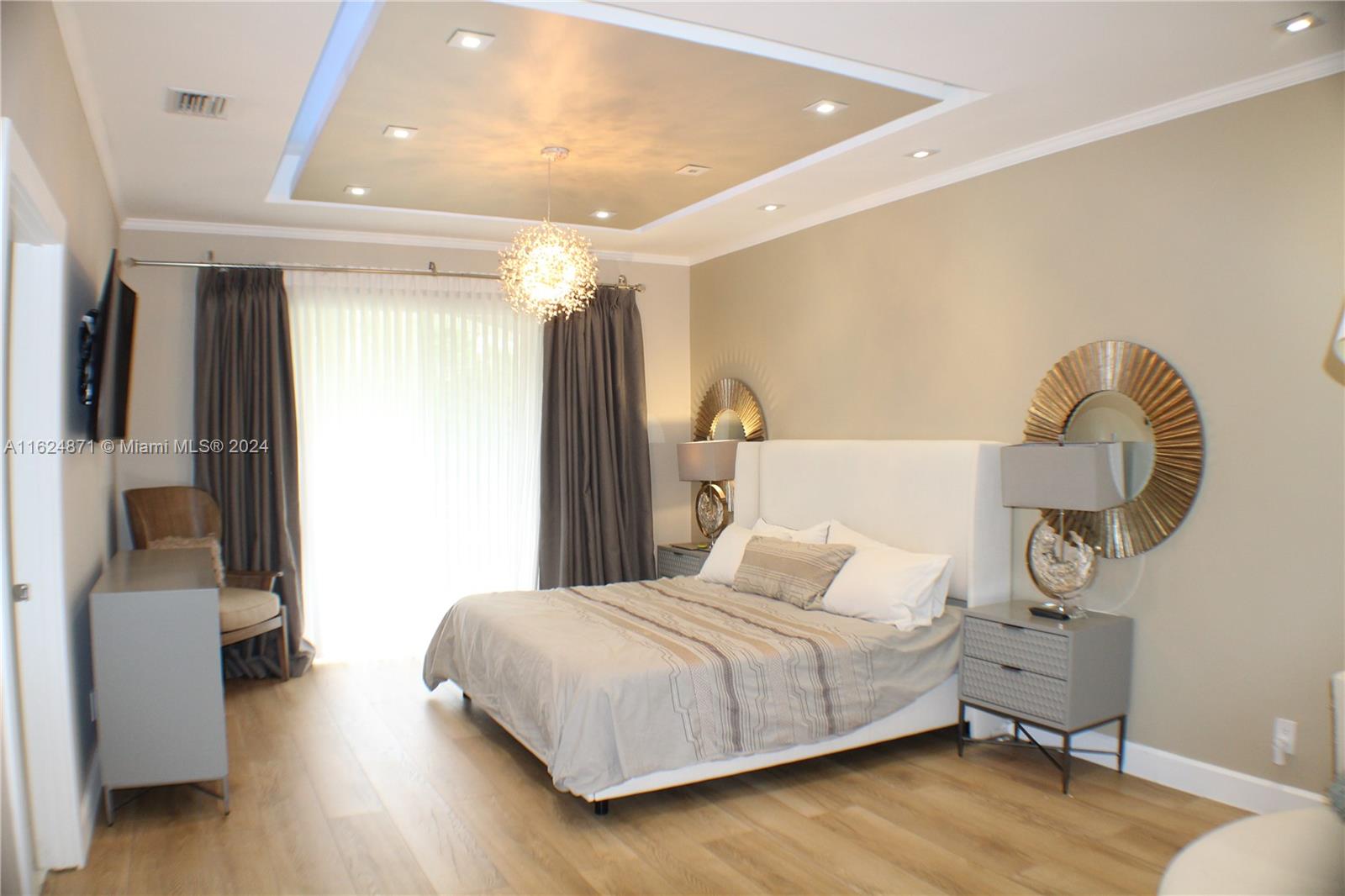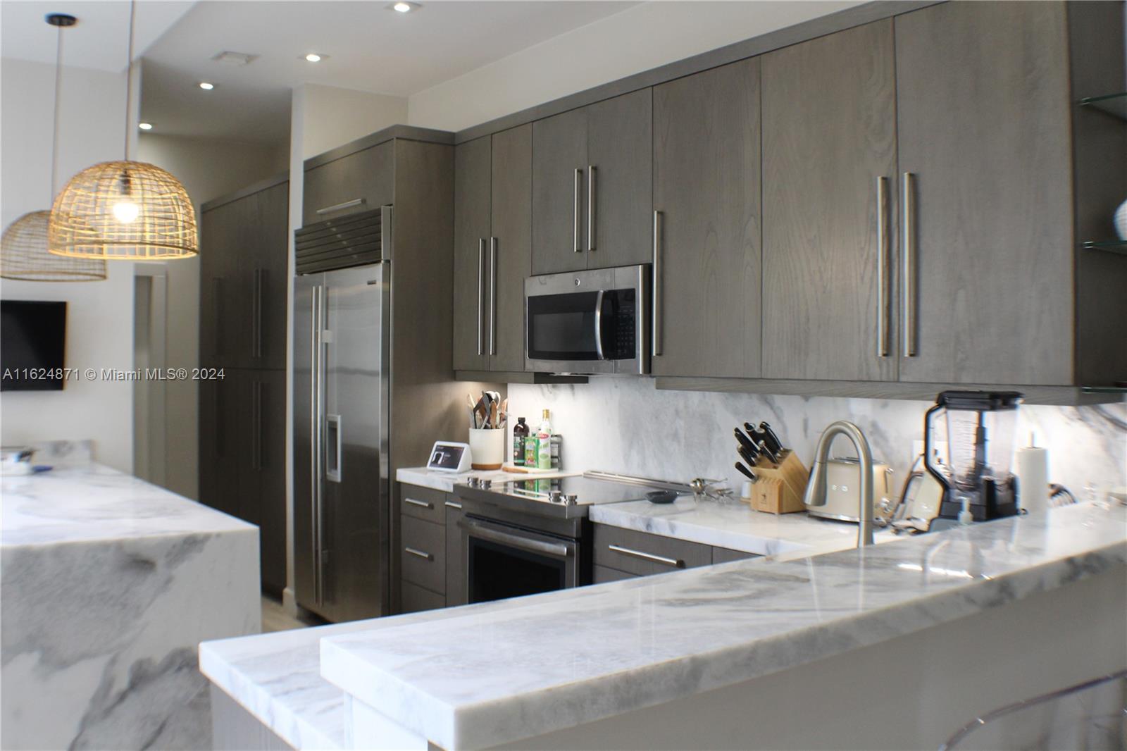 This meticulously designed, remodeled residence combines modern luxury with practicality, offering an ideal living space for discerning homeowners. Upon entry you are greeted by voluminous ceilings that create an airy, spacious atmosphere throughout the home. The gourmet kitchen is a chef's dream, featuring high-end SS appliances, sleek cabinetry, and striking 3 cm countertops of luxurious marble. The open layout seamlessly creates a perfect setting for entertaining guests or enjoying quality time w/family. 1 of the bedrooms is conveniently & accessibly located on the ground fl. Upstairs, the primary suite is a private retreat complete w/a sitting area, tray ceiling w/accent lighting, walk-in closet & en suite w/dual sinks, luxurious soaking tub, & separate shower. Resort style amenities.