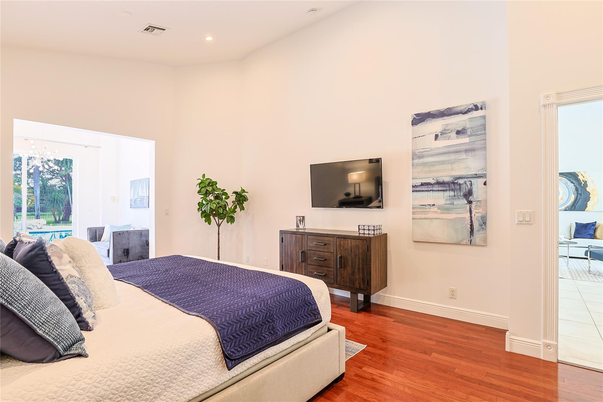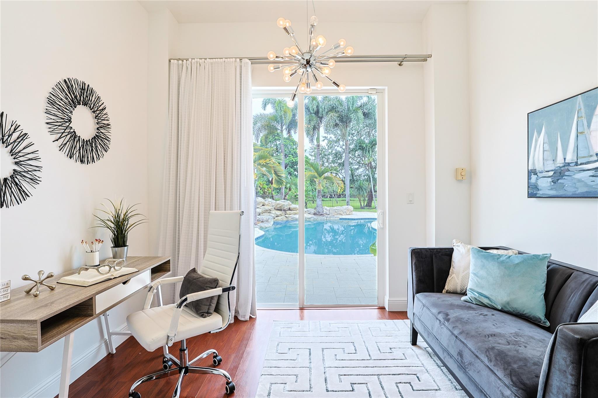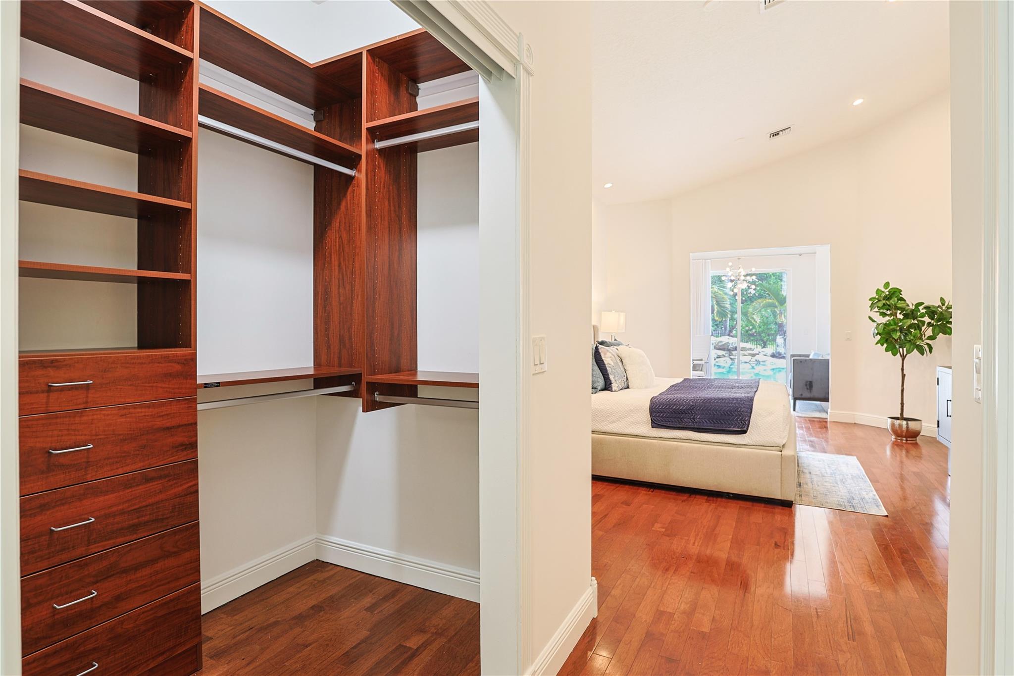 Expansive open floor plan on builder's acre, free from HOA restrictions. Freshly painted inside. 2021 updates include new roof, gutters, water heater, main A/C unit, & exterior paint. Impact glass throughout! Solar panels heat both pool & home's hot water. Motorized drapes in living, dining, & family room. The outdoor patio has been enclosed, extending the floor plan for a charming dining area & practical office space off the primary bedroom (permitted). Triple split floor plan. Spacious 4th bedroom features double doors w/ a comfortable sitting area. California Closets. Outside, a vast stone patio surrounds a stunning freeform pool, leaving plenty of room for your dreams & storage for your boat & RV! 3 car garage & a more than ample driveway. Near parks, shopping, dining, & entertainment.