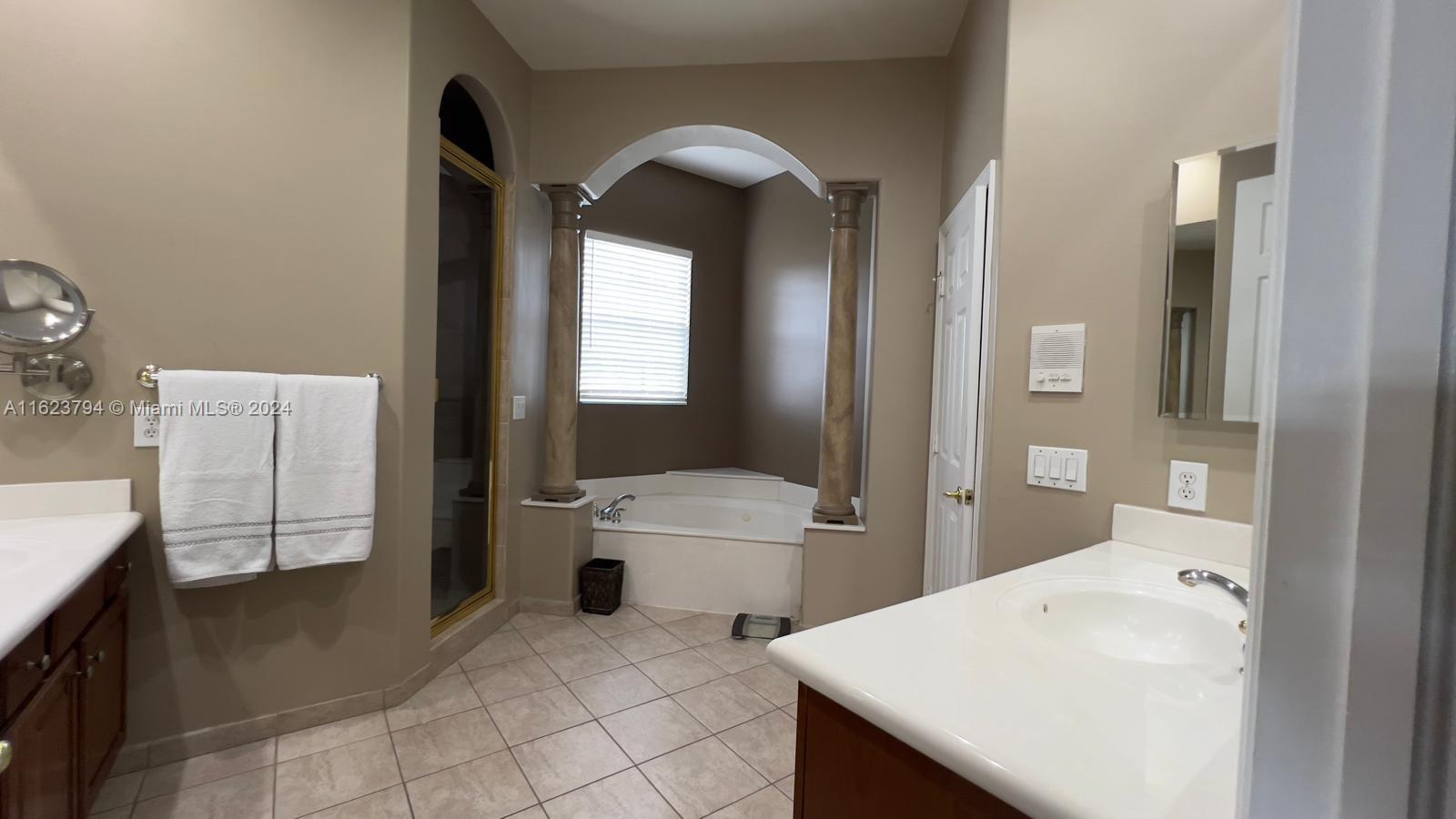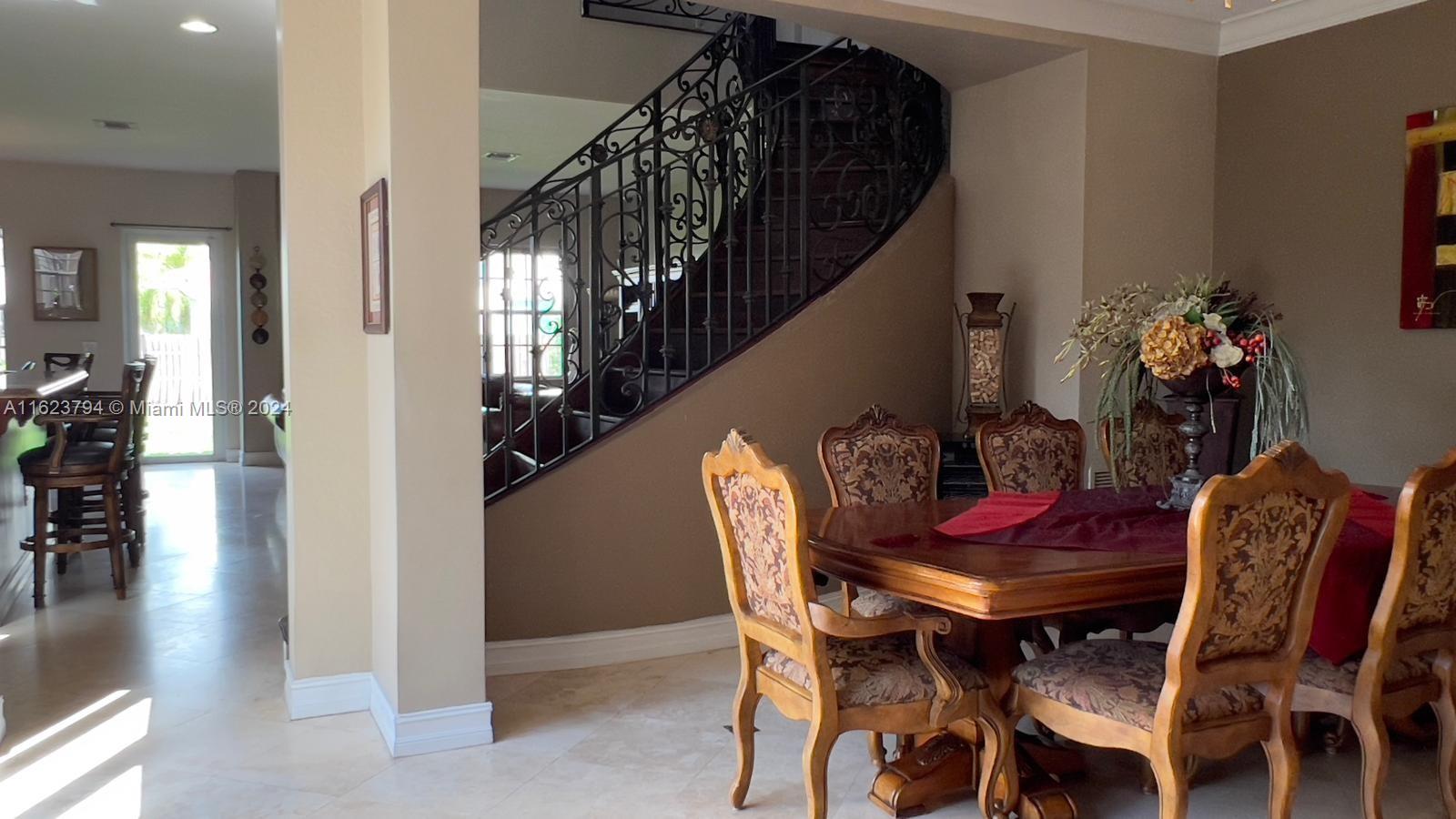 Doral Isles nestled in the dynamic new City of Doral. This home boasts 5 beautiful spacious bedrooms, 4 ½ baths, and multiple multi-use rooms. 3,695 Sq Ft on an oversized 11,643 Sq Ft Lot. A suite is located downstairs adjacent to the large kitchen, dinette nook and family area which spreads out into an open concept design. Also located on the first floor is a separate formal living room with an adjacent private outdoor patio.This home also enjoys a separate dining room. A staircase in decorative antique ironwork and cherry wood stained stair steps, winds itself upward through the center of the home opening up to the second level. Here you find a centralized loft area plus a unique octagon shaped office, 4 additional bedrooms, 3 full bathrooms and a separate laundry room.