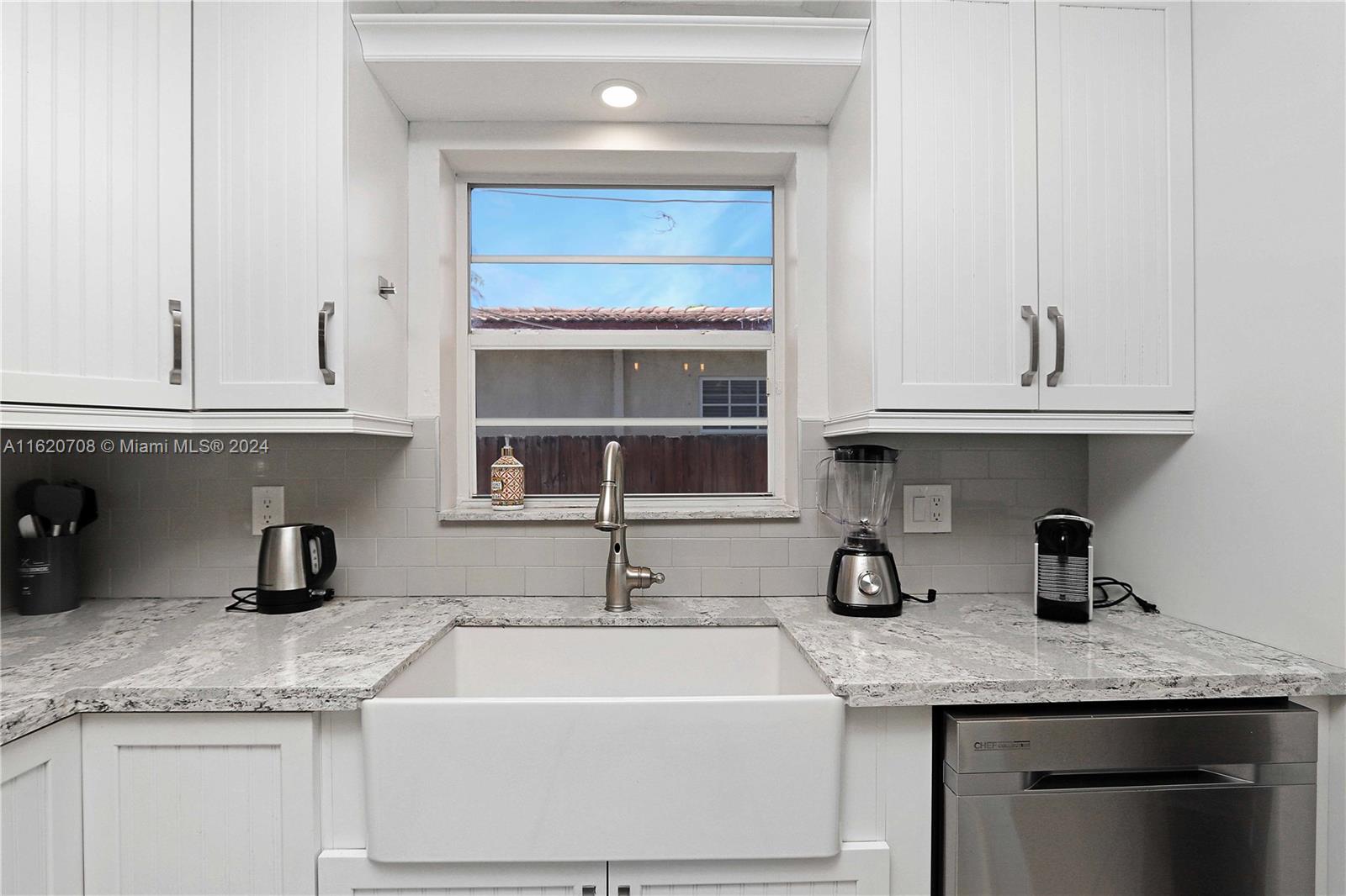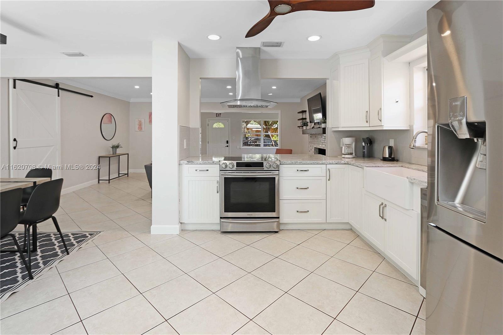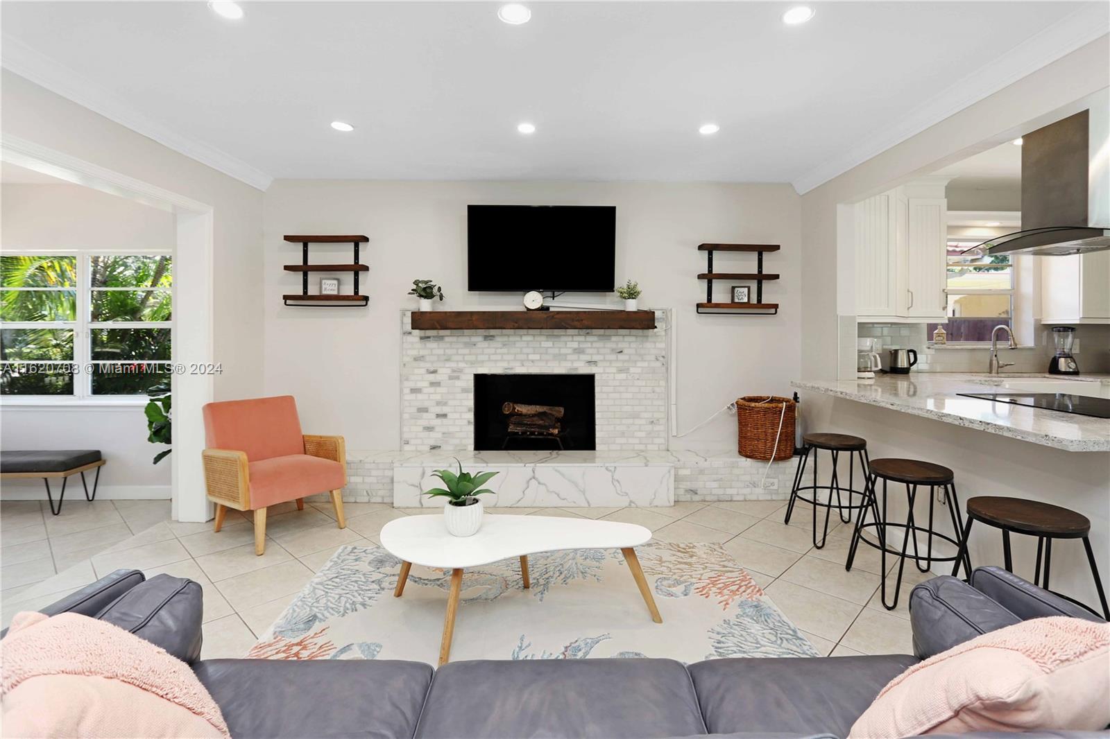 Charming 3 Bedroom, 2 Bath residence located on an idyllic tree lined street. Featuring a circular drive and front walkway paved in Chicago brick. An updated kitchen opening to the living area, features quartz countertops, white cabinetry, farmer sink, subway tiled backsplash, SS appliances & garbage disposal. Tile flooring throughout, marble tile wood burning fireplace, crown molding in the living room, farm doors on two bedrooms adding character to an already delightful home. Tropical landscaping, pavers surround the pool with privacy fence for a quiet retreat with rear access from alleyway. Addt'l efficient tankless water heater. Located within close proximity to Publix, Jefferson/West Lake Parks, Hollywood Beach and a short distance to Fort Lauderdale Airport.